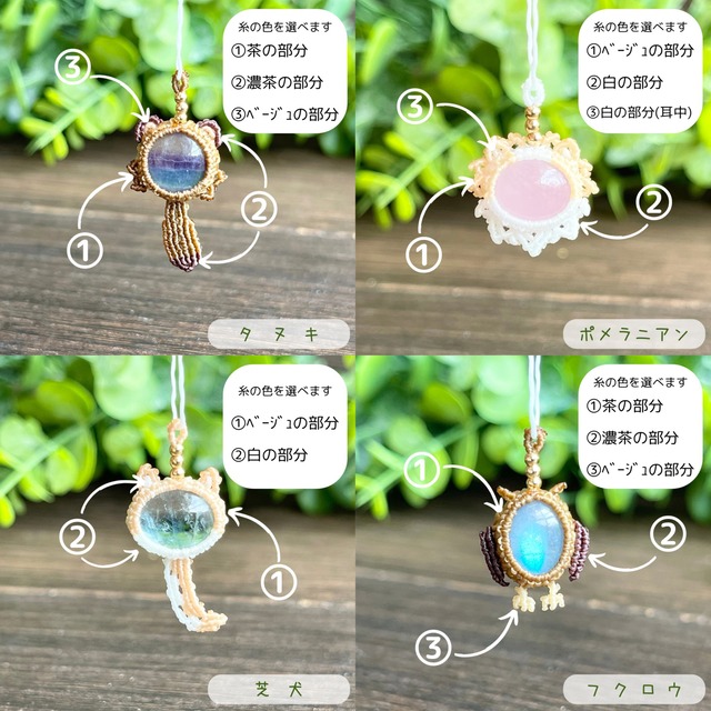 〜〜生きものモチーフセミオーダーの流れ〜〜 ⑴お好きな天然石を選ぶ(石の形によって作れる生きものが違います) ⑵商品オプションから「希望の生きものモチーフ」を選択 ⑶商品画像から希望の生きものモチーフを探し ⑷書かれている番号の通りに糸の色を決める ①〜③まである場合は3色決められます(同じ色も可) (糸の色サンプルは商品画像に載せています) ⑸希望のアクセサリー種類を選択する *~*~*~*~*~*~*~*~*~*~*~*~*~*~*~*~*~* ◆お値段は天然石代+オーダーメイド代(¥4,500)が含まれています ◆デザインによって追加料金が発生するものがあります ◆アクセサリー種類は以下から選べます チャーム/ネックレス(+¥700)/ピアス/イヤリング ◆糸の色みはなるべく近づけておりますがご覧になる液晶によって色の誤差が多少あります ◆ご注文を受けてから長めにみて1〜2週間以内に発送いたします その他ご要望や質問はショップの「質問する」や、公式LINEなどからお気軽にお聞きください! (この石でこの生きものはできますか?この部分の色は変えられますか?など) ————————————————————— 〈配送料と梱包について〉 ・宅急便コンパクト(¥500)はショップ名の入った箱で梱包 ・クリックポスト(¥200)はOPPでの簡易包装 【詳細】https://usasisadah.theshop.jp/blog/2021/09/07/140155