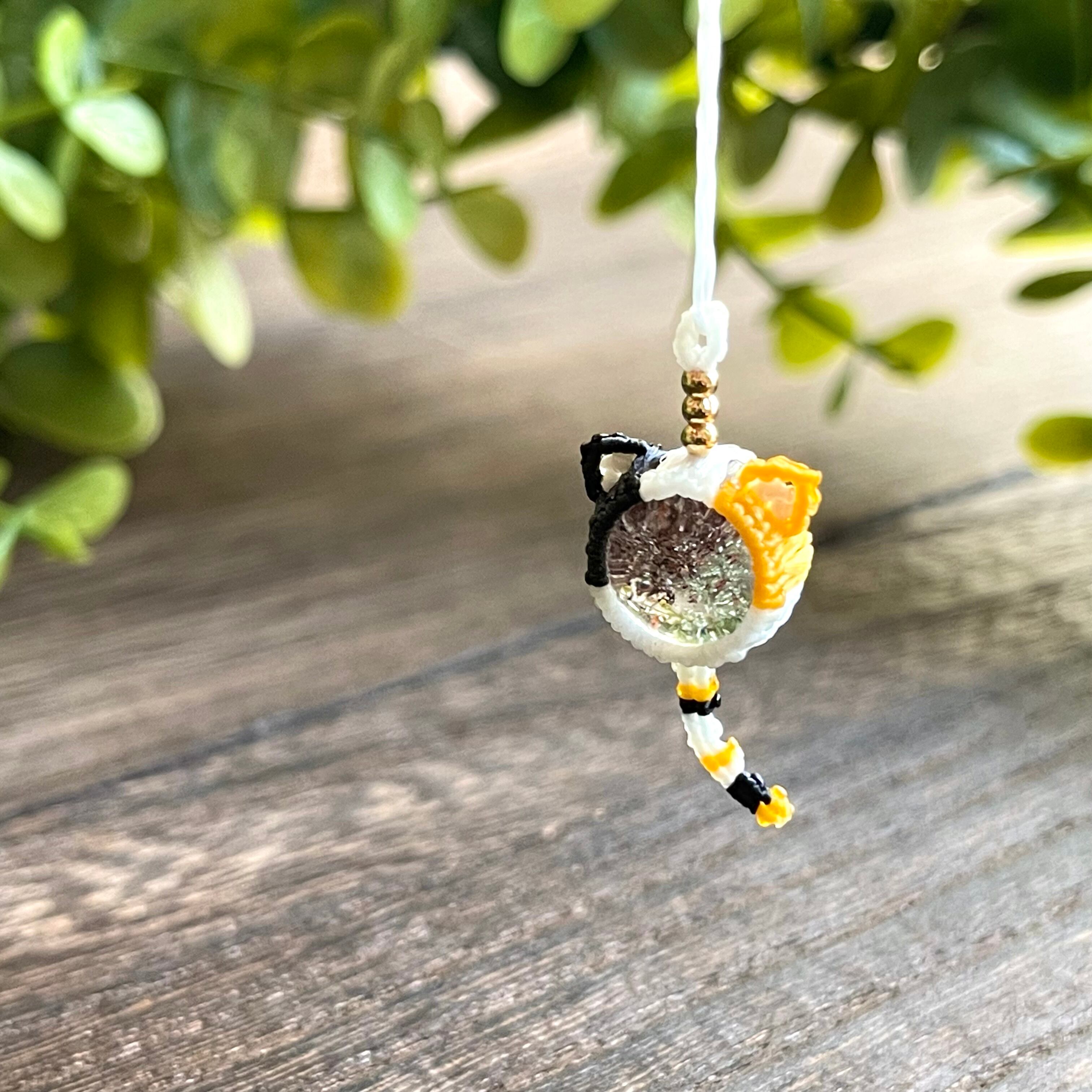 ガーデンクォーツ[三毛猫]マクラメアクセサリー〈チャーム、ネックレス、ピアス、イヤリング〉