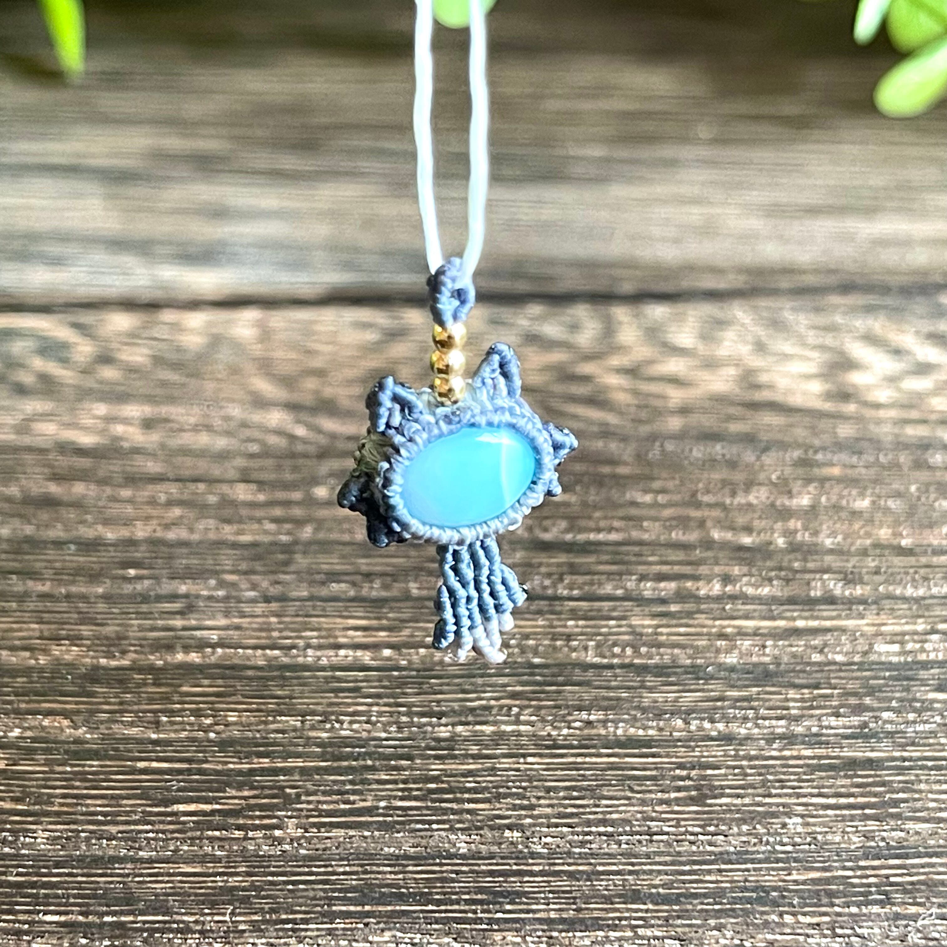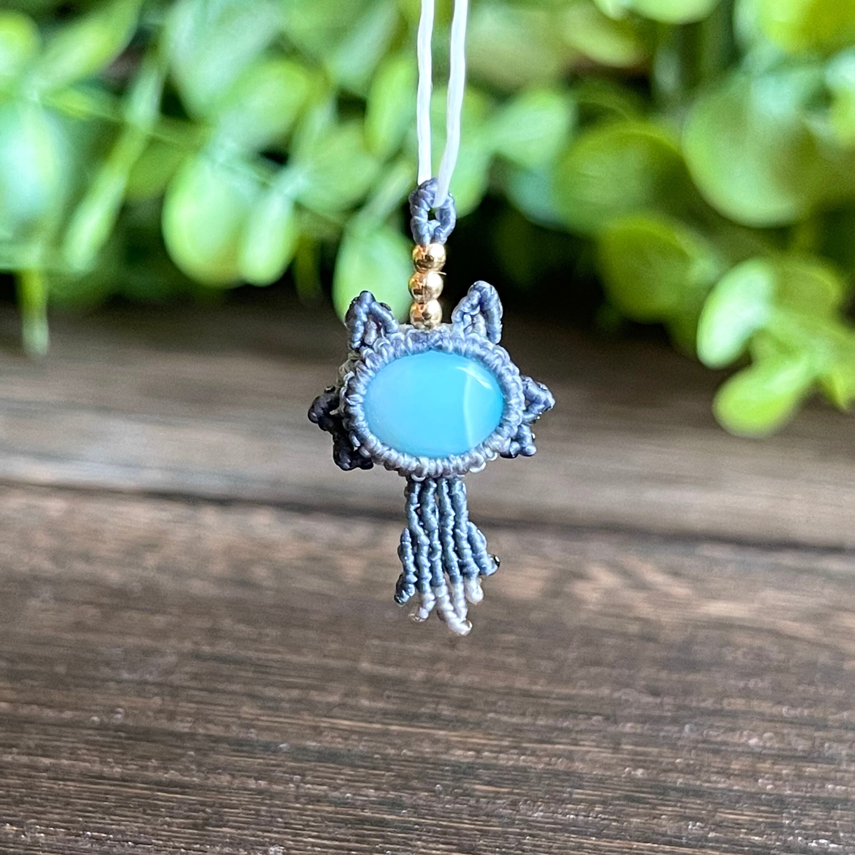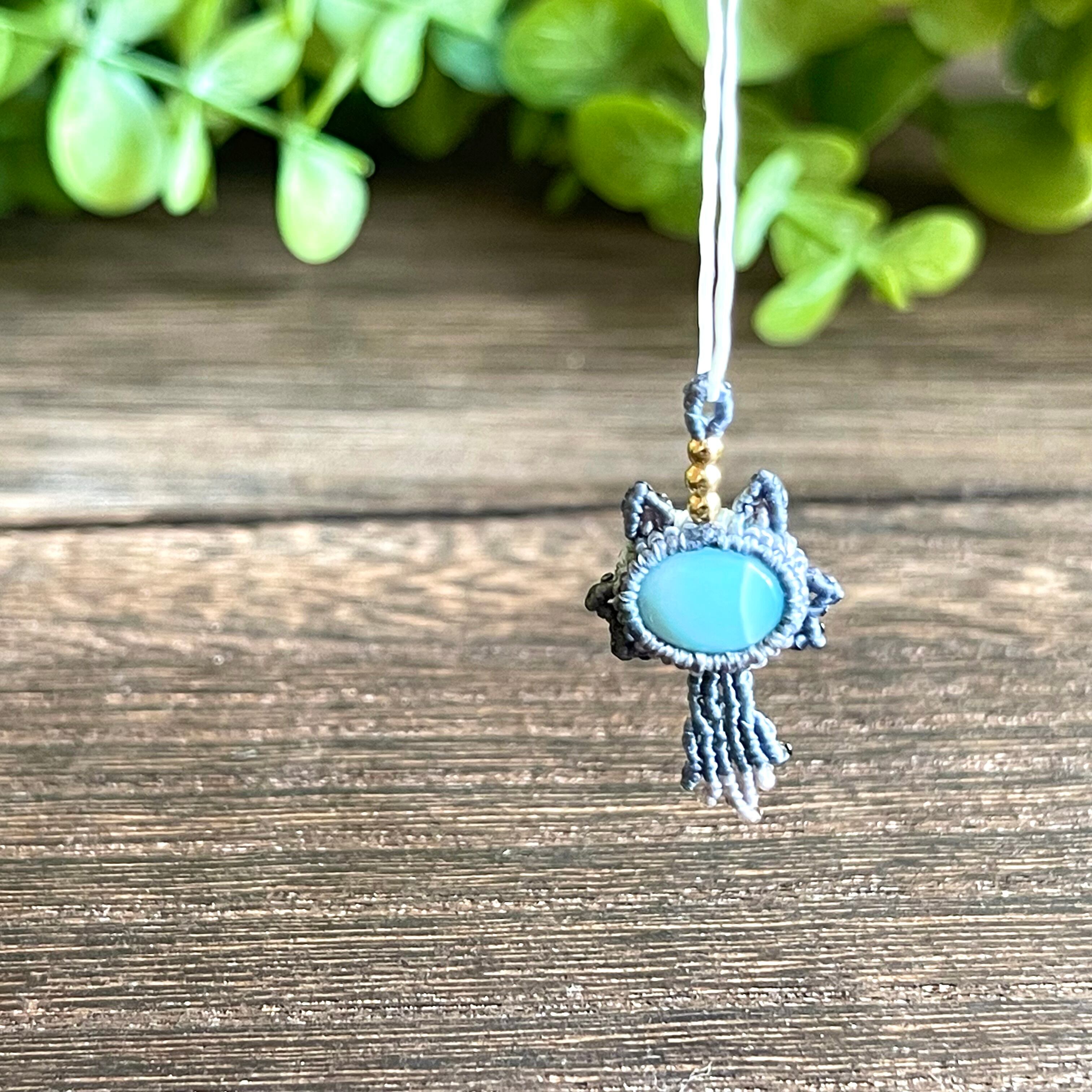 ラリマー[オオカミ]マクラメアクセサリー〈チャーム、ネックレス、ピアス、イヤリング〉