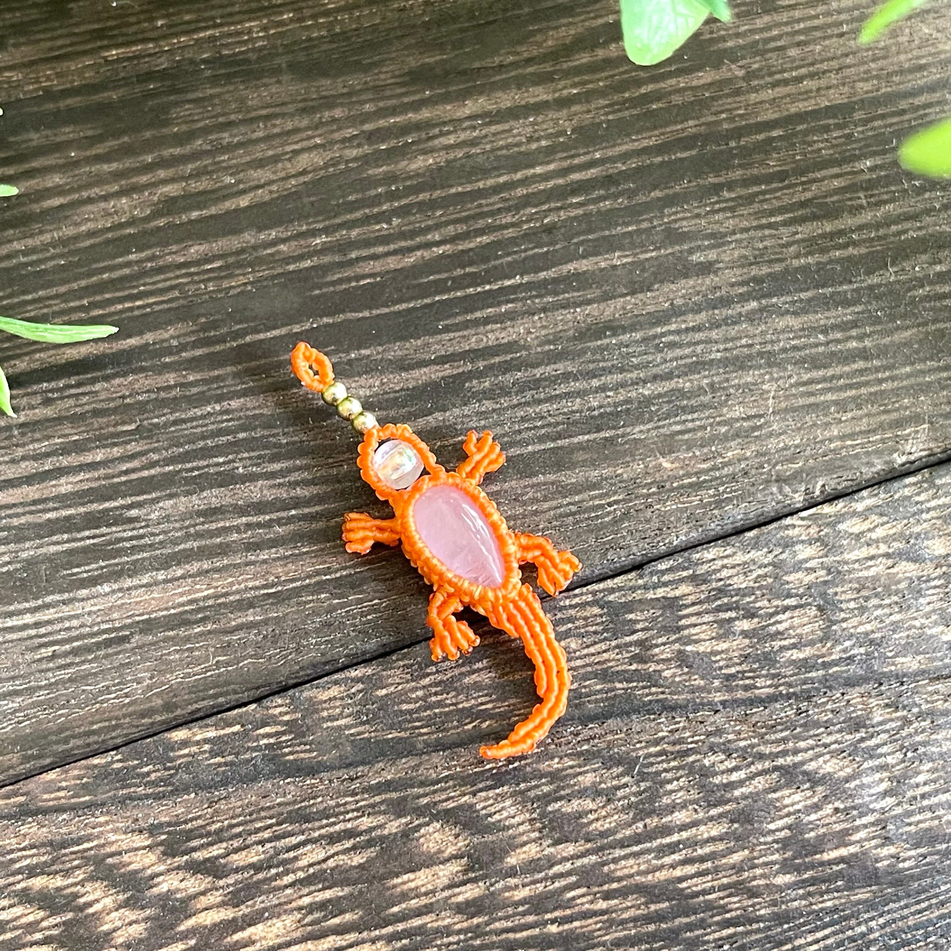 クンツァイト[トカゲ/ヤモリ/イモリ]マクラメアクセサリー〈チャーム、ネックレス、ピアス、イヤリング〉