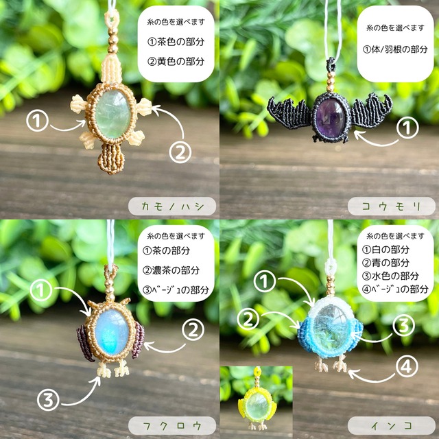 〜〜生きものモチーフセミオーダーの流れ〜〜 ⑴お好きな天然石を選ぶ(石の形によって作れる生きものが違います) ⑵商品オプションから「希望の生きものモチーフ」を選択 ⑶商品画像から希望の生きものモチーフを探し ⑷書かれている番号の通りに糸の色を決める ①〜③まである場合は3色決められます(同じ色も可) (糸の色サンプルは商品画像に載せています) ⑸希望のアクセサリー種類を選択する *~*~*~*~*~*~*~*~*~*~*~*~*~*~*~*~*~* ◆お値段は天然石代+オーダーメイド代(¥4,500)が含まれています ◆デザインによって追加料金が発生するものがあります ◆アクセサリー種類は以下から選べます チャーム/ネックレス(+¥700)/ピアス/イヤリング ◆糸の色みはなるべく近づけておりますがご覧になる液晶によって色の誤差が多少あります ◆ご注文を受けてから長めにみて1〜2週間以内に発送いたします その他ご要望や質問はショップの「質問する」や、公式LINEなどからお気軽にお聞きください! (この石でこの生きものはできますか?この部分の色は変えられますか?など) ————————————————————— 〈配送料と梱包について〉 ・宅急便コンパクト(¥500)はショップ名の入った箱で梱包 ・ゆうパケットポストmini(¥200)はOPPでの簡易包装 【詳細】https://usasisadah.theshop.jp/blog/2021/09/07/140155