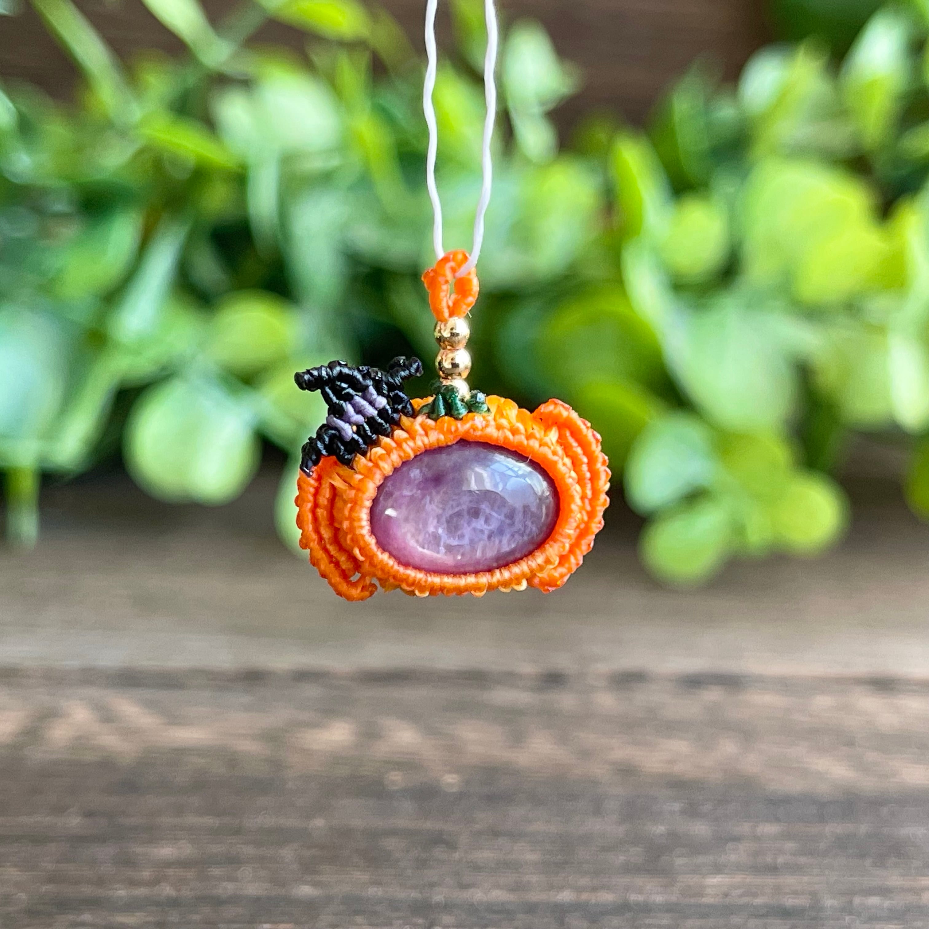 【限定】レピドライト[ハロウィンカボチャ]マクラメアクセサリー〈チャーム、ネックレス、ピアス、イヤリング〉
