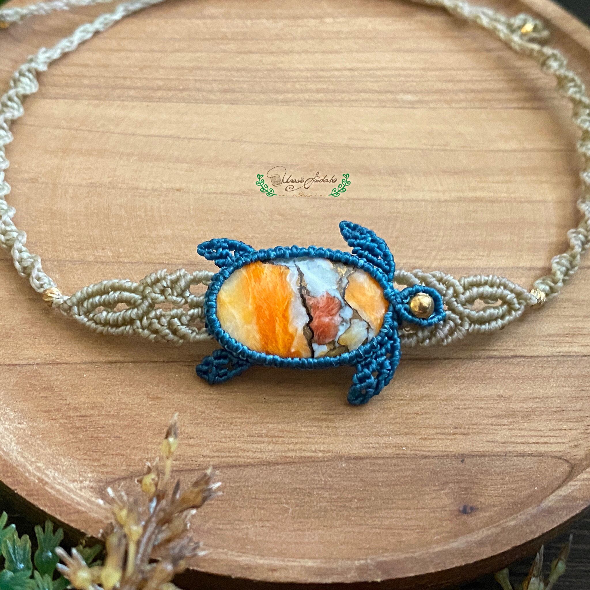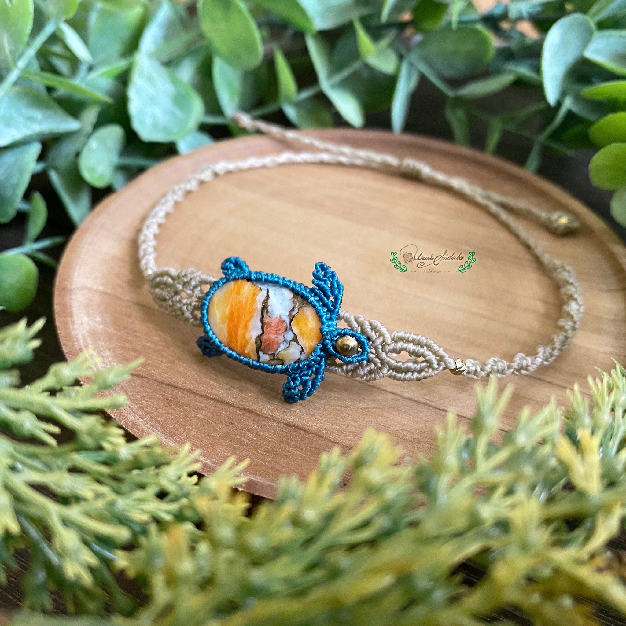 幸運の生き物とされる亀をモチーフにブレスレットにしました。