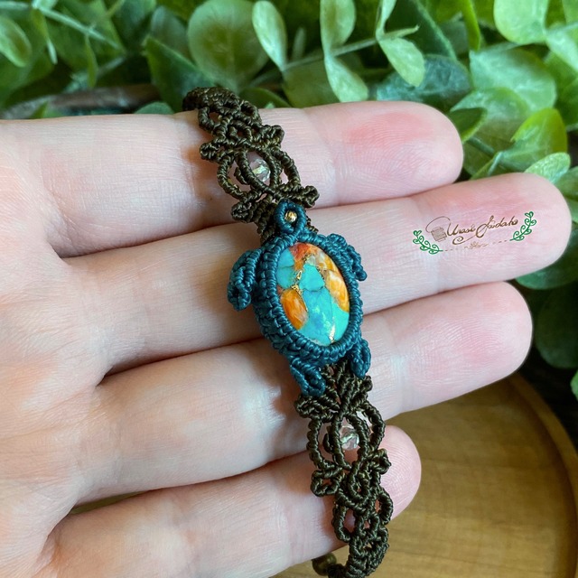 幸運の生き物とされる亀をモチーフにブレスレットにしました♪