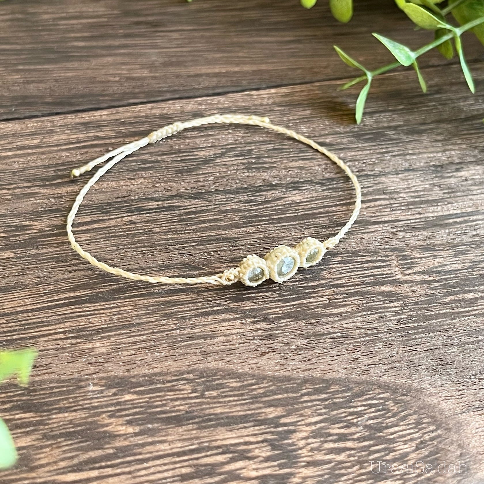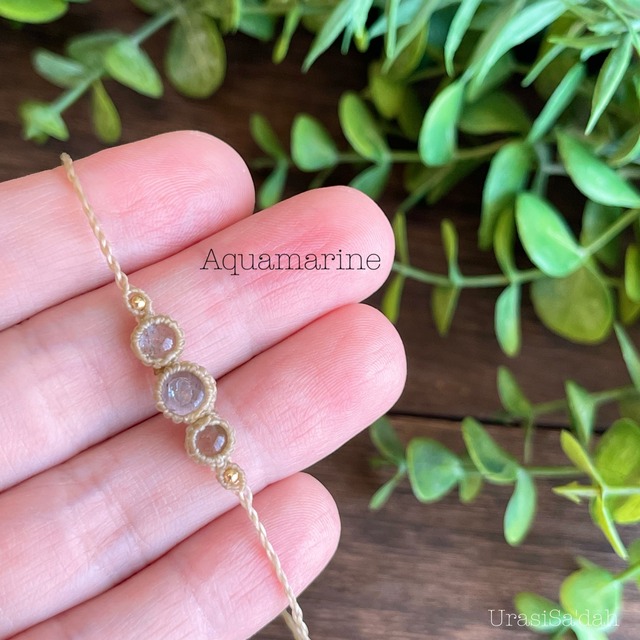 アクアマリン マクラメブレスレット(細め/重ね付け)