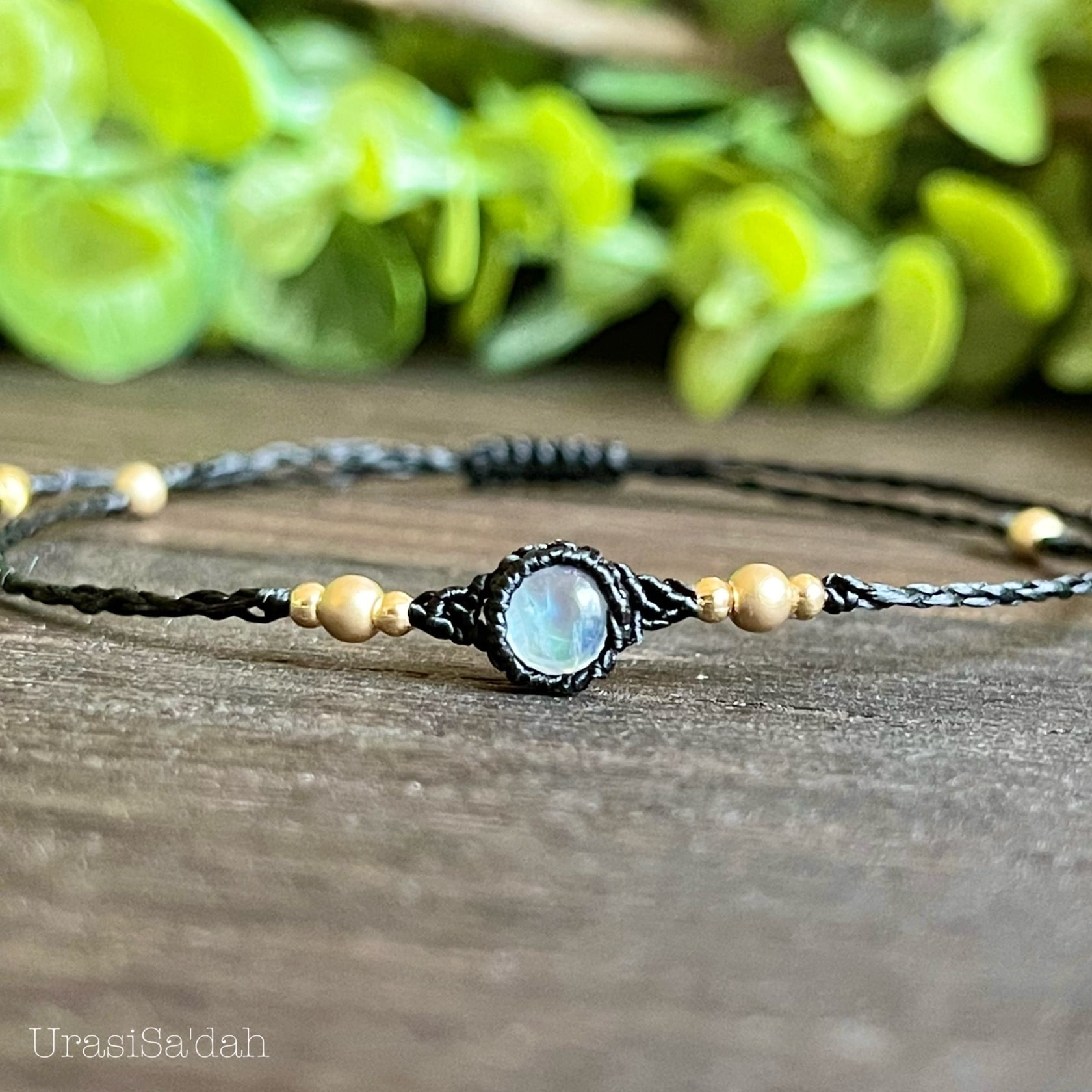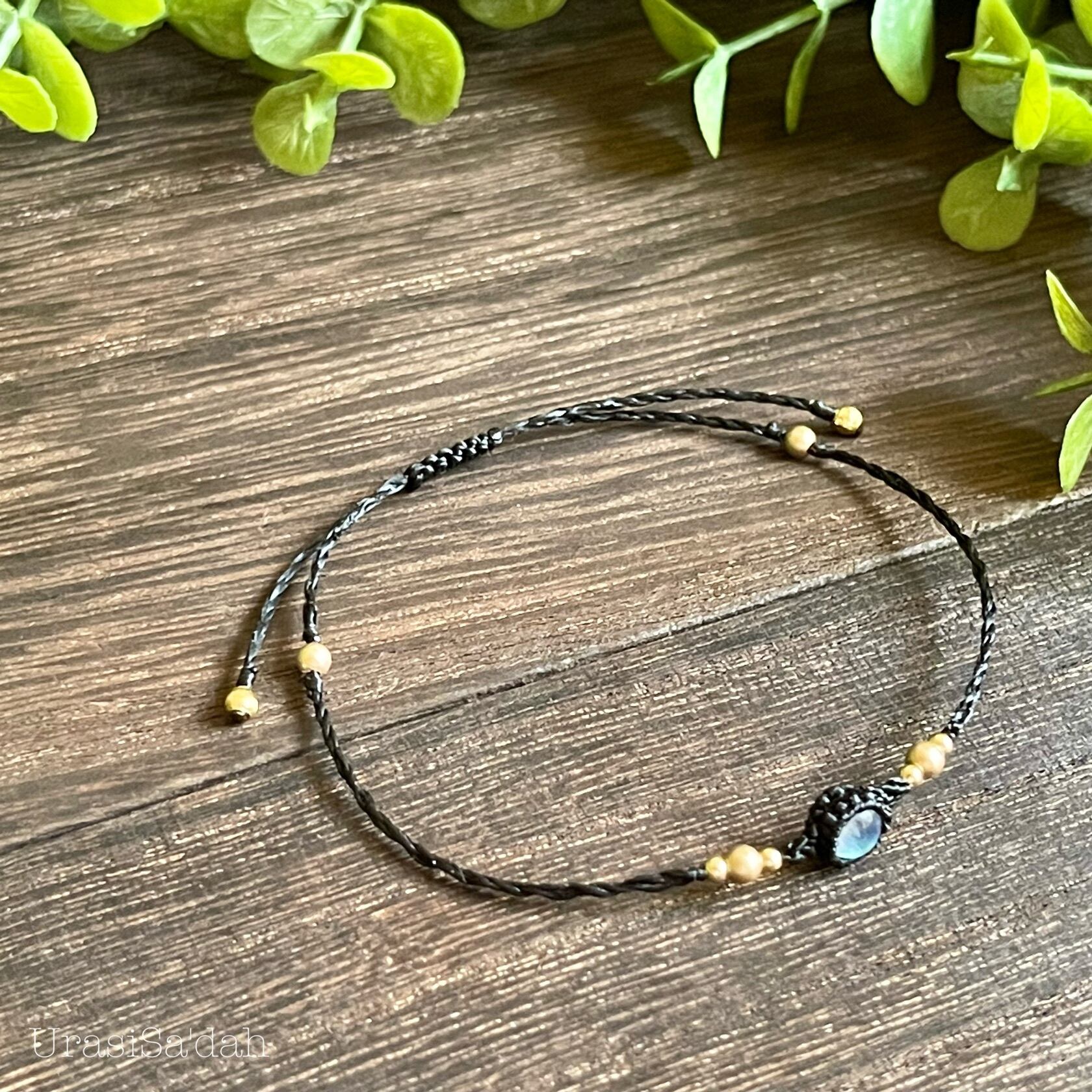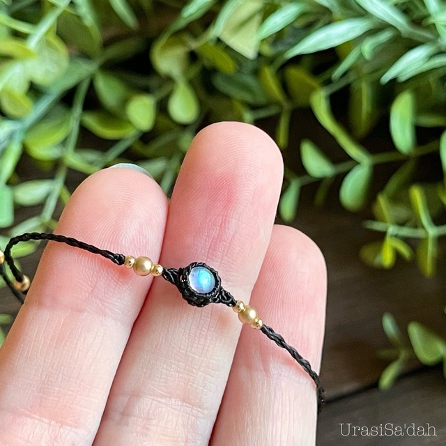レインボームーンストーン マクラメブレスレット【細め/重ね付け】