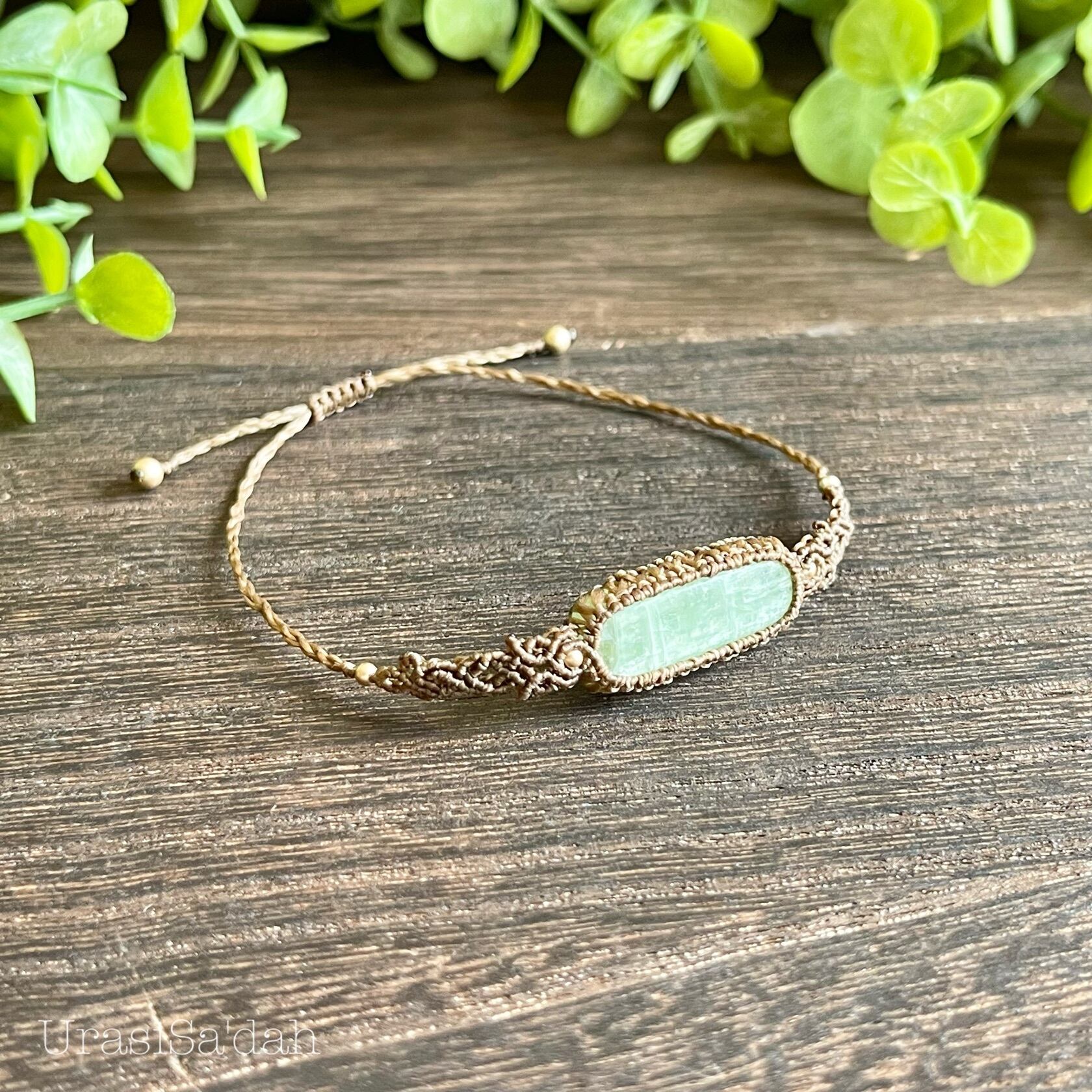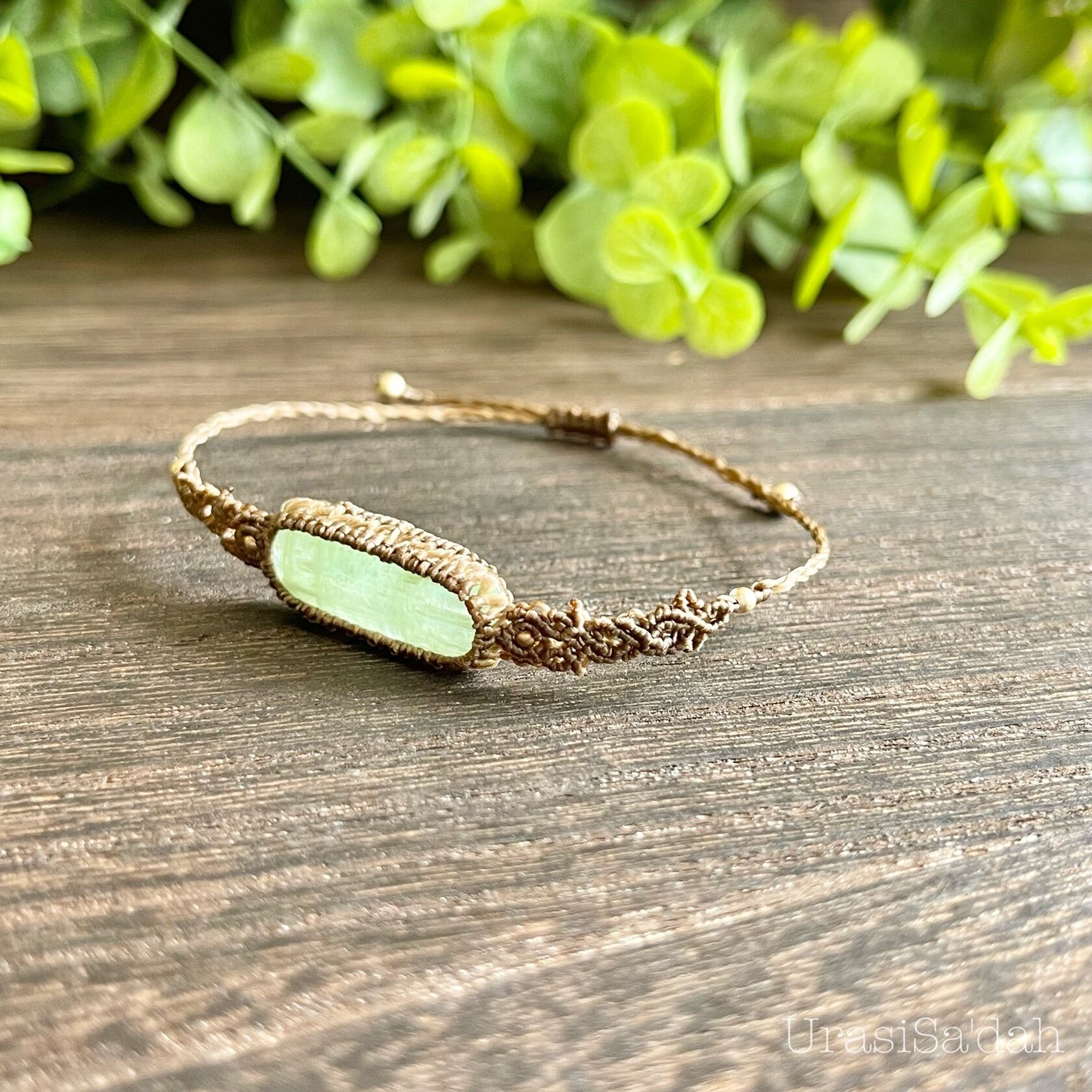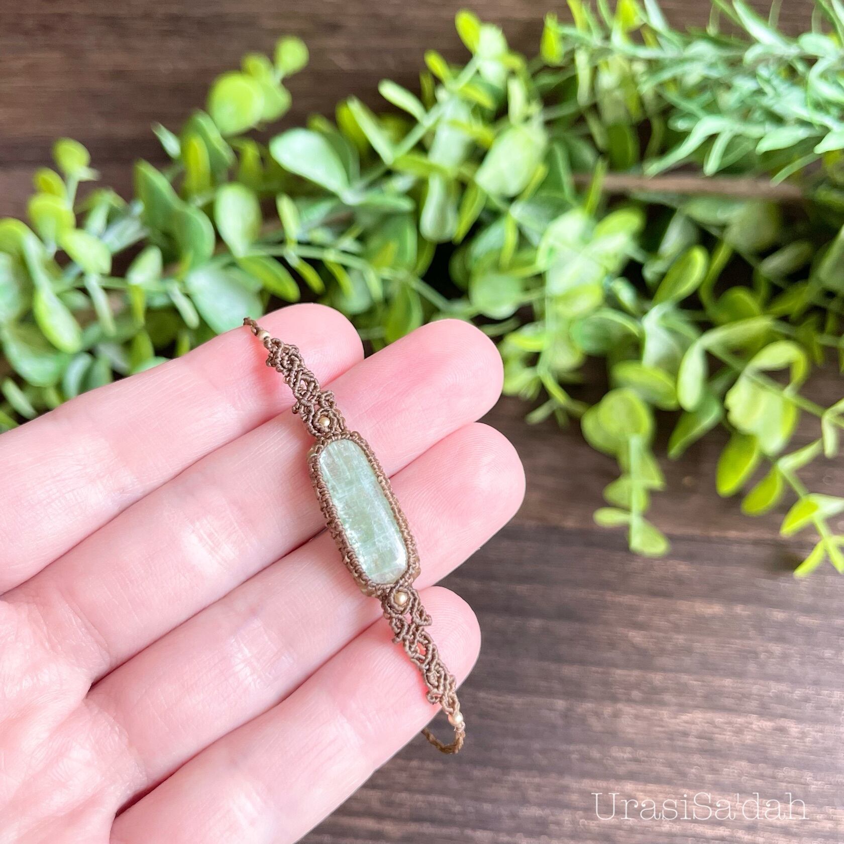 グリーンカイヤナイト(細めマクラメブレスレット/天然石アクセサリー)