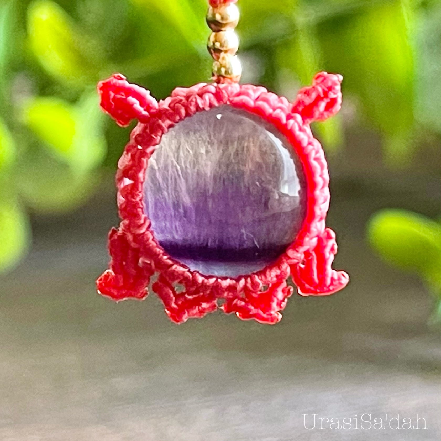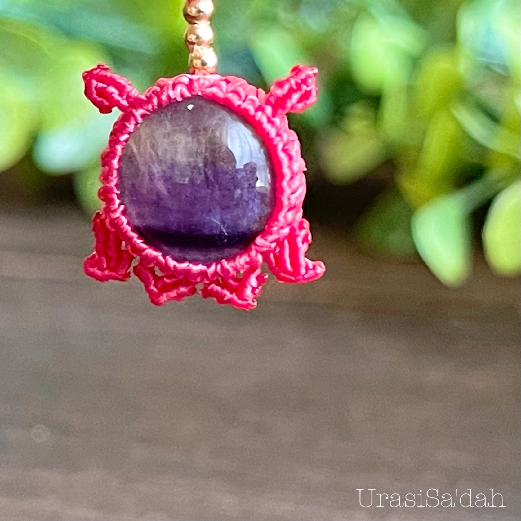フローライト[メンダコ]マクラメアクセサリー〈チャーム、ネックレス、ピアス、イヤリング〉
