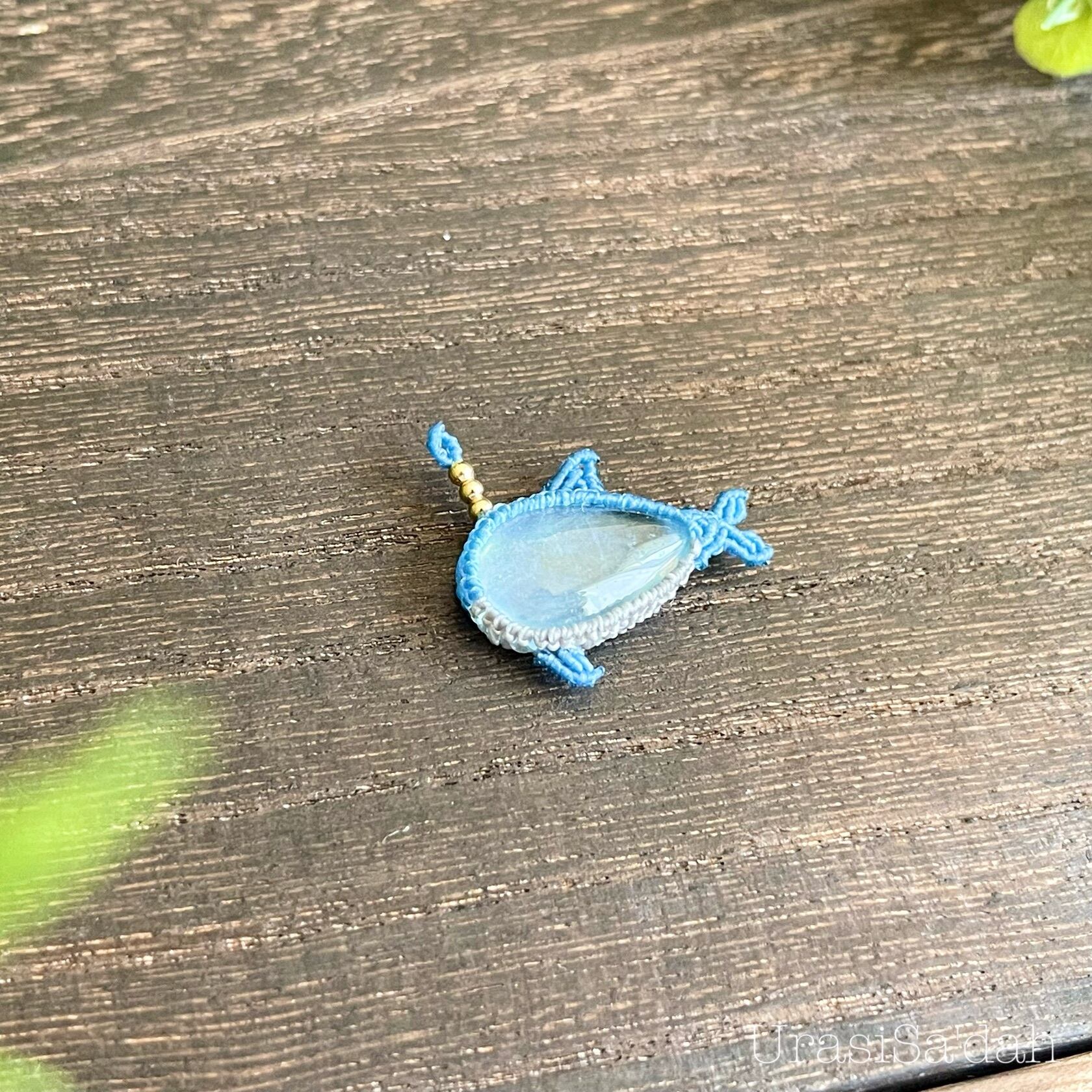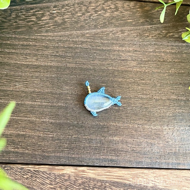 アクアマリン[サメ]マクラメアクセサリー〈チャーム、ネックレス、ピアス、イヤリング〉