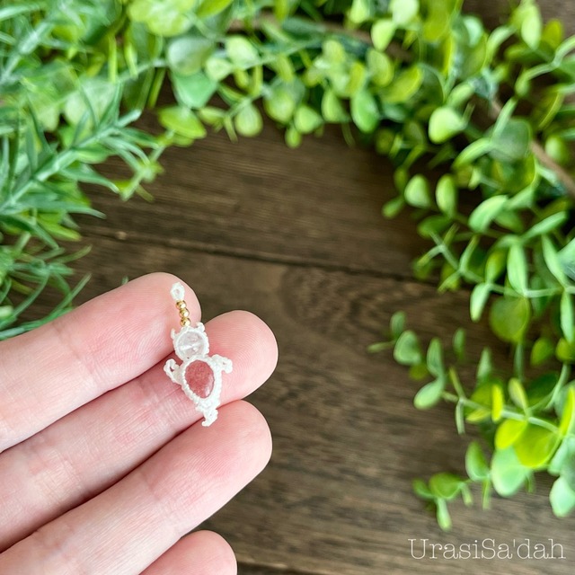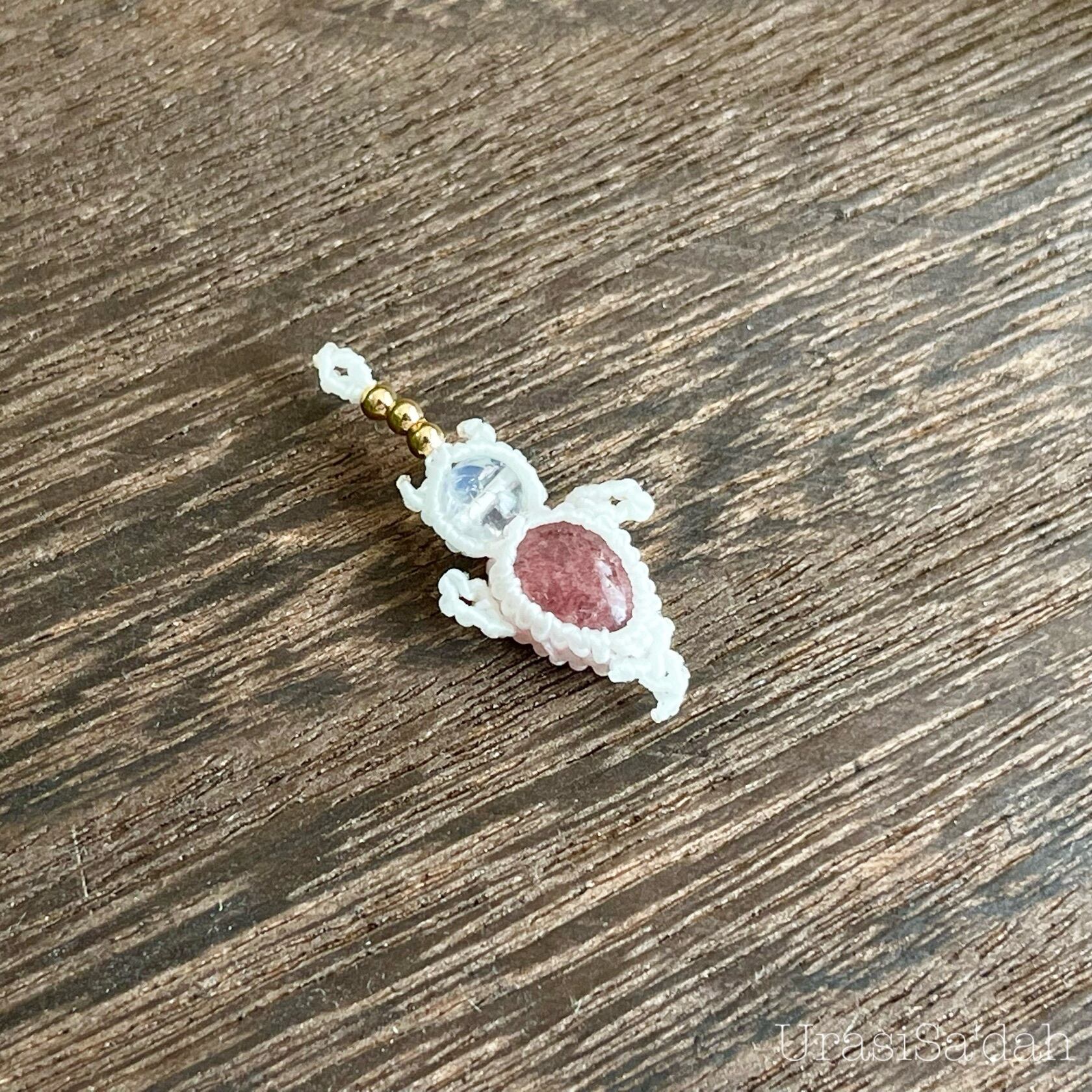 ストロベリークォーツ[クリオネ]マクラメアクセサリー〈チャーム、ネックレス、ピアス、イヤリング〉