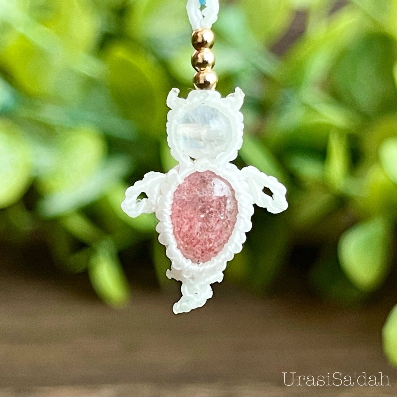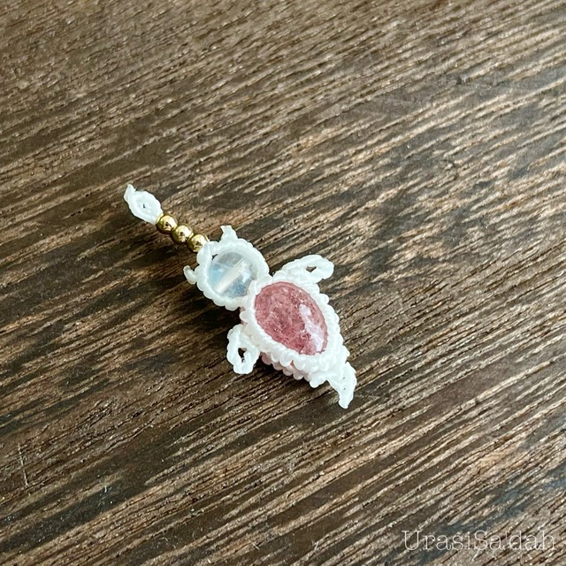 ストロベリークォーツ[クリオネ]マクラメアクセサリー〈チャーム、ネックレス、ピアス、イヤリング〉