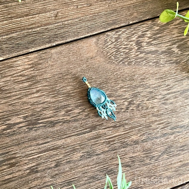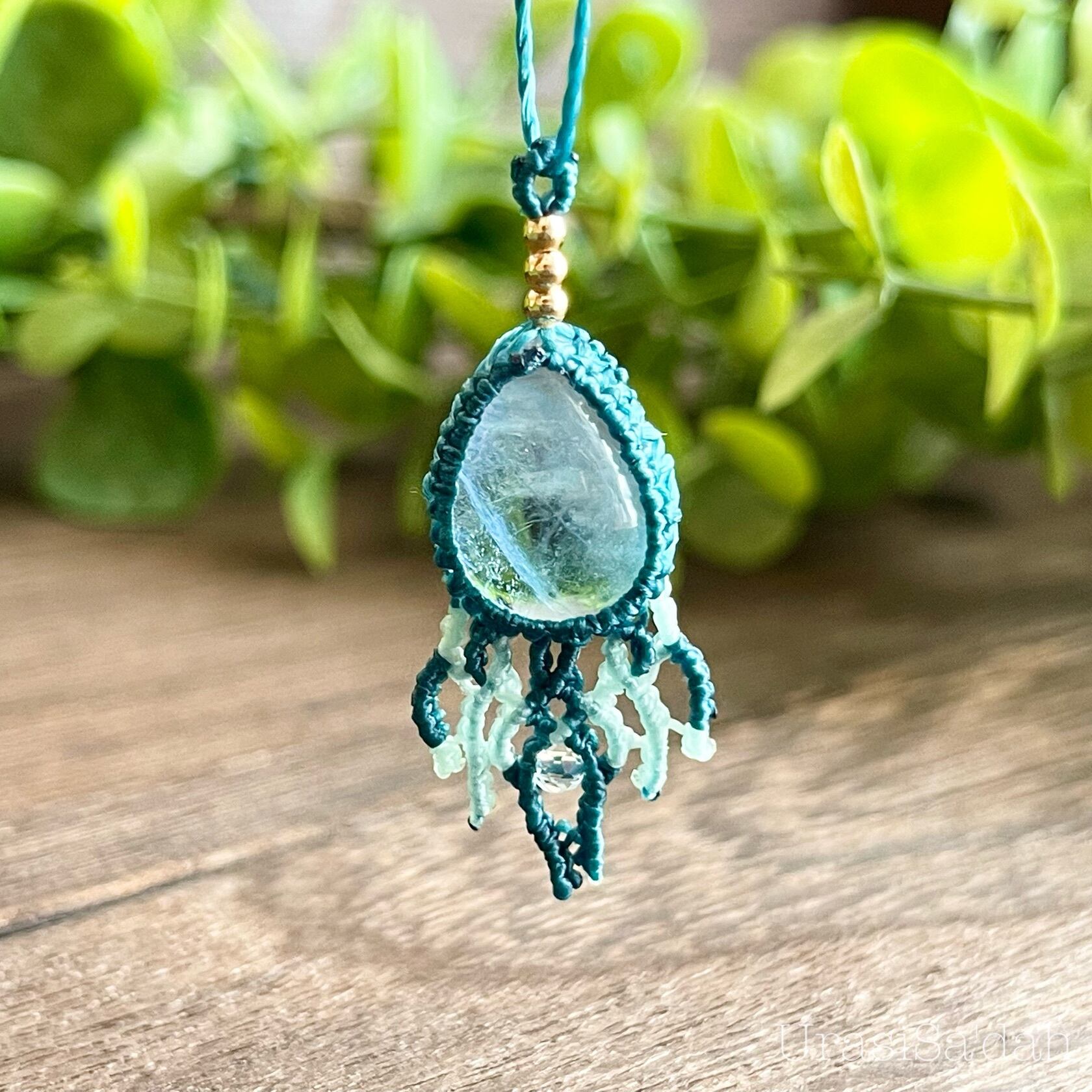 アクアマリン[クラゲ]マクラメアクセサリー〈チャーム、ネックレス、ピアス、イヤリング〉