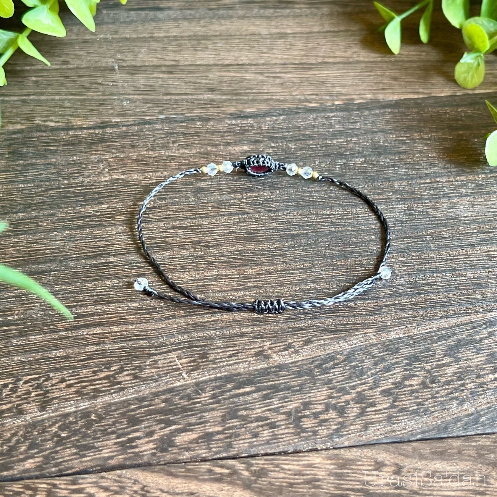 ロードライトガーネット マクラメブレスレット【細め/重ね付け】