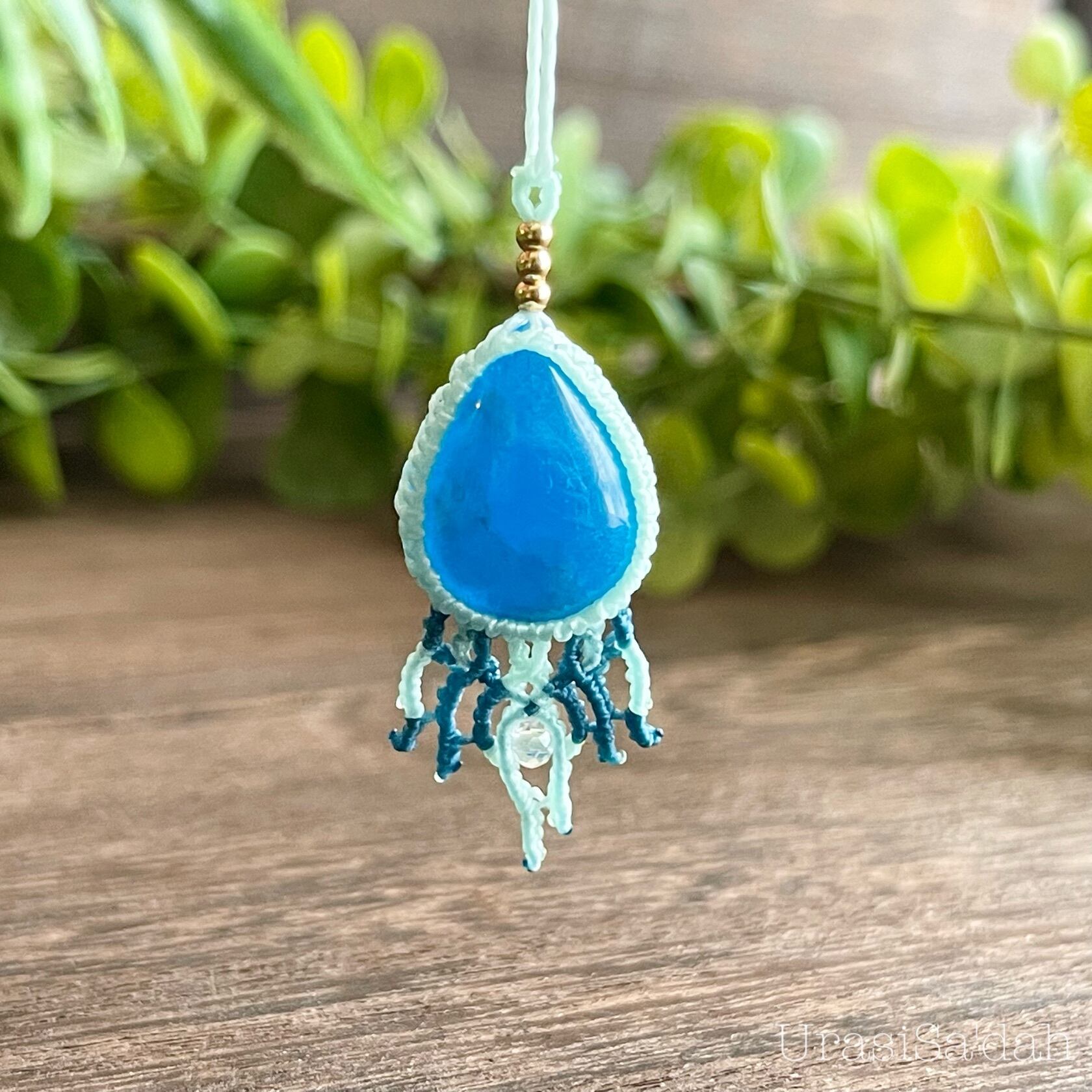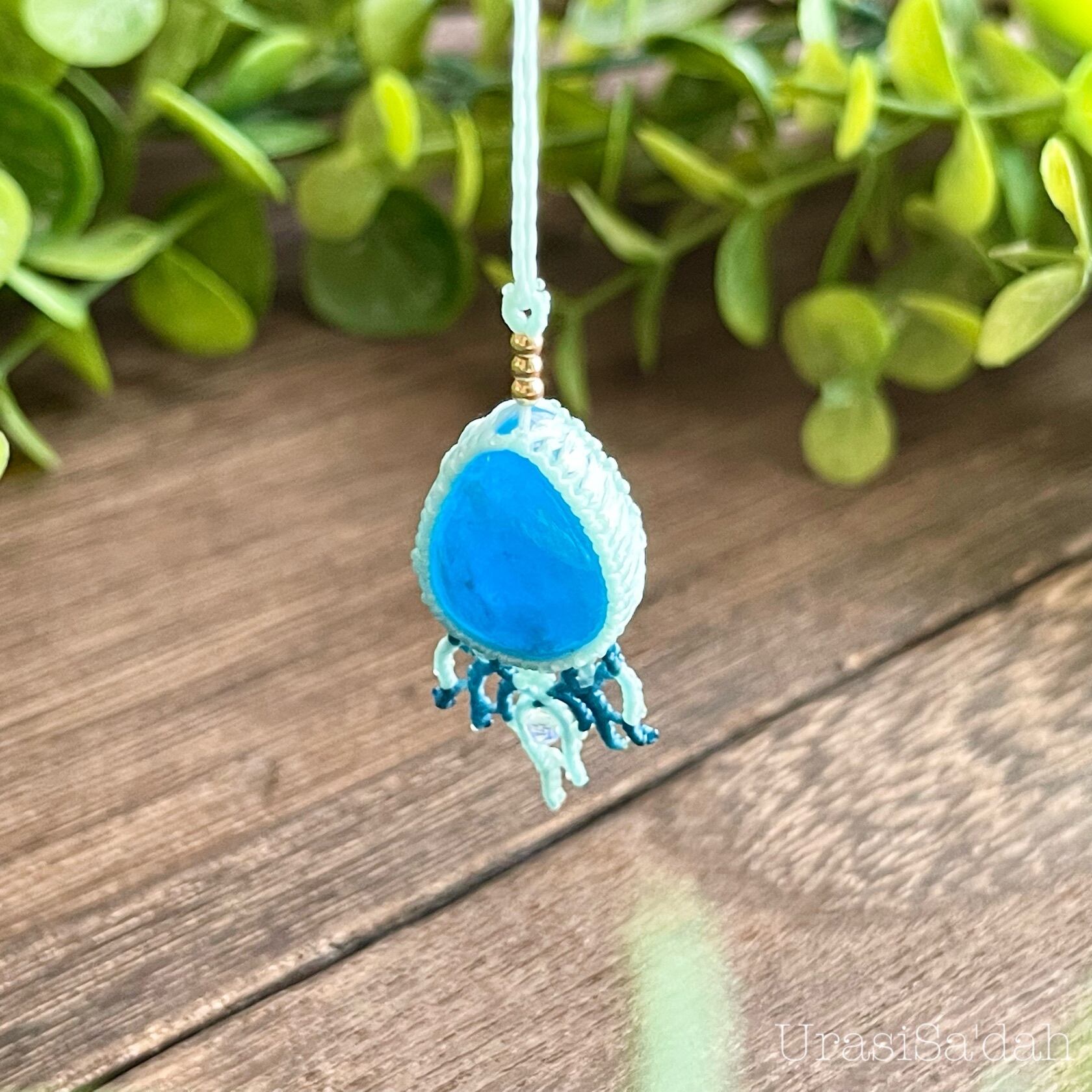 ブルーアパタイト[クラゲ]マクラメアクセサリー〈チャーム、ネックレス、ピアス、イヤリング〉