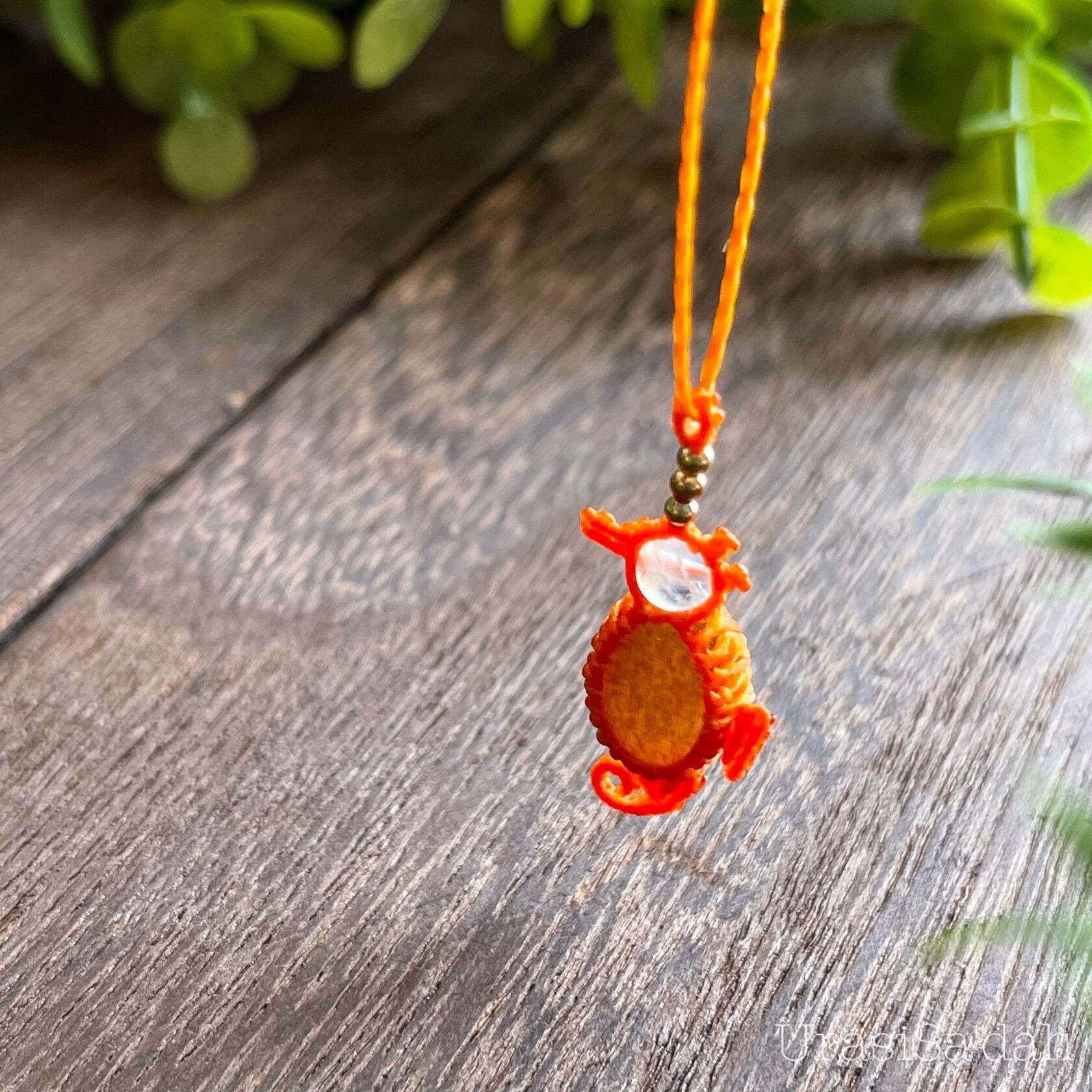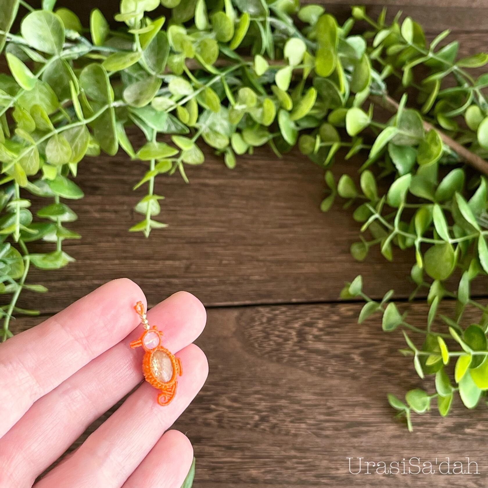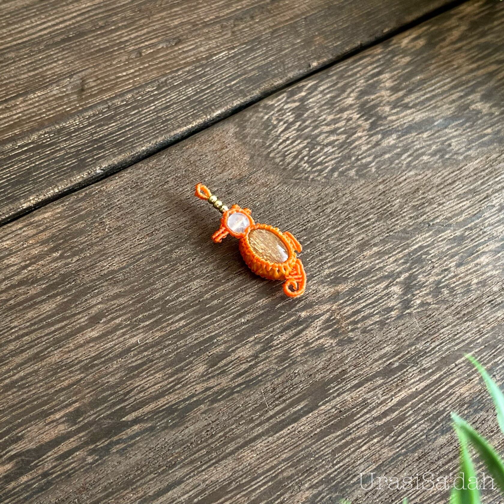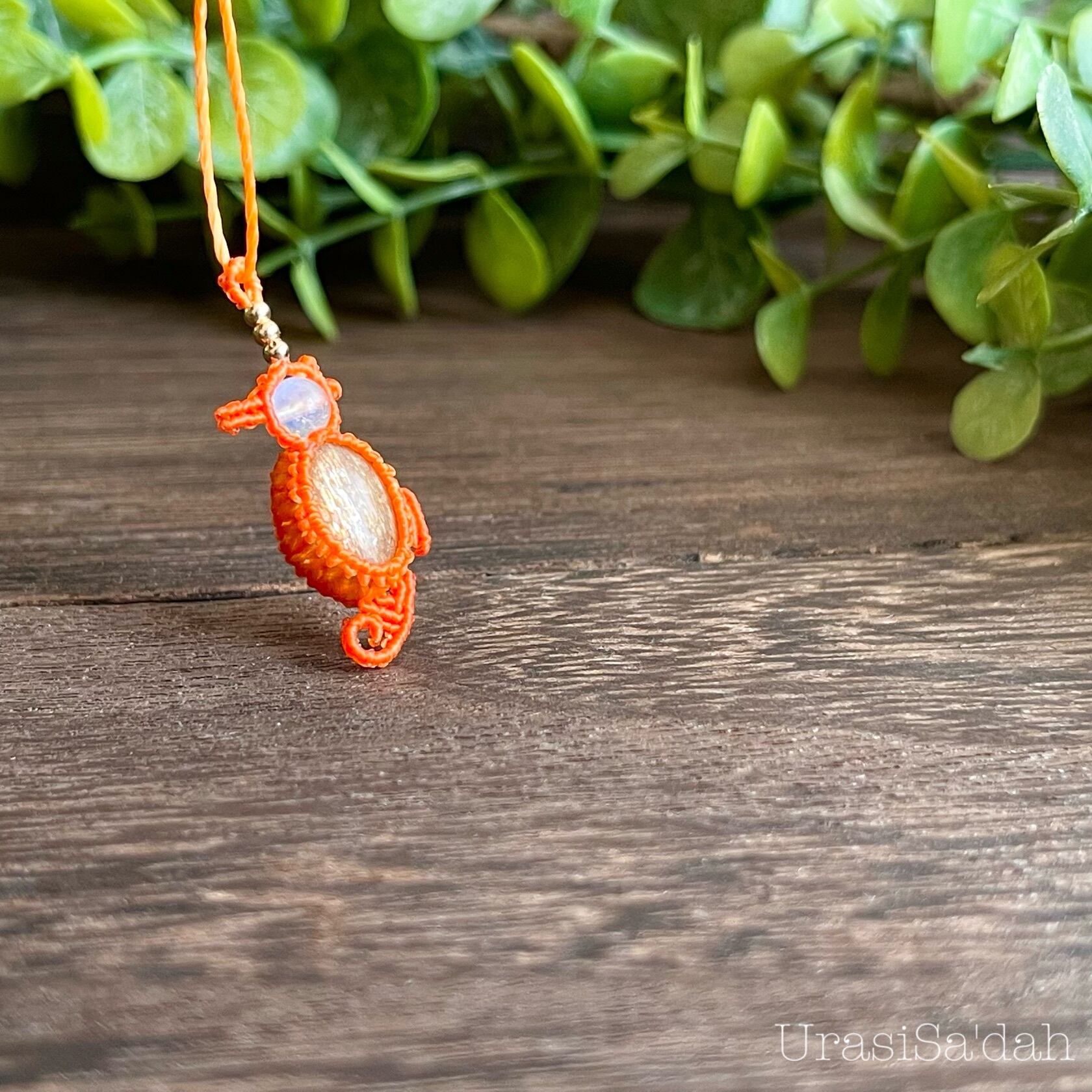 スターサンストーン[タツノオトシゴ]マクラメアクセサリー〈チャーム、ネックレス、ピアス、イヤリング〉