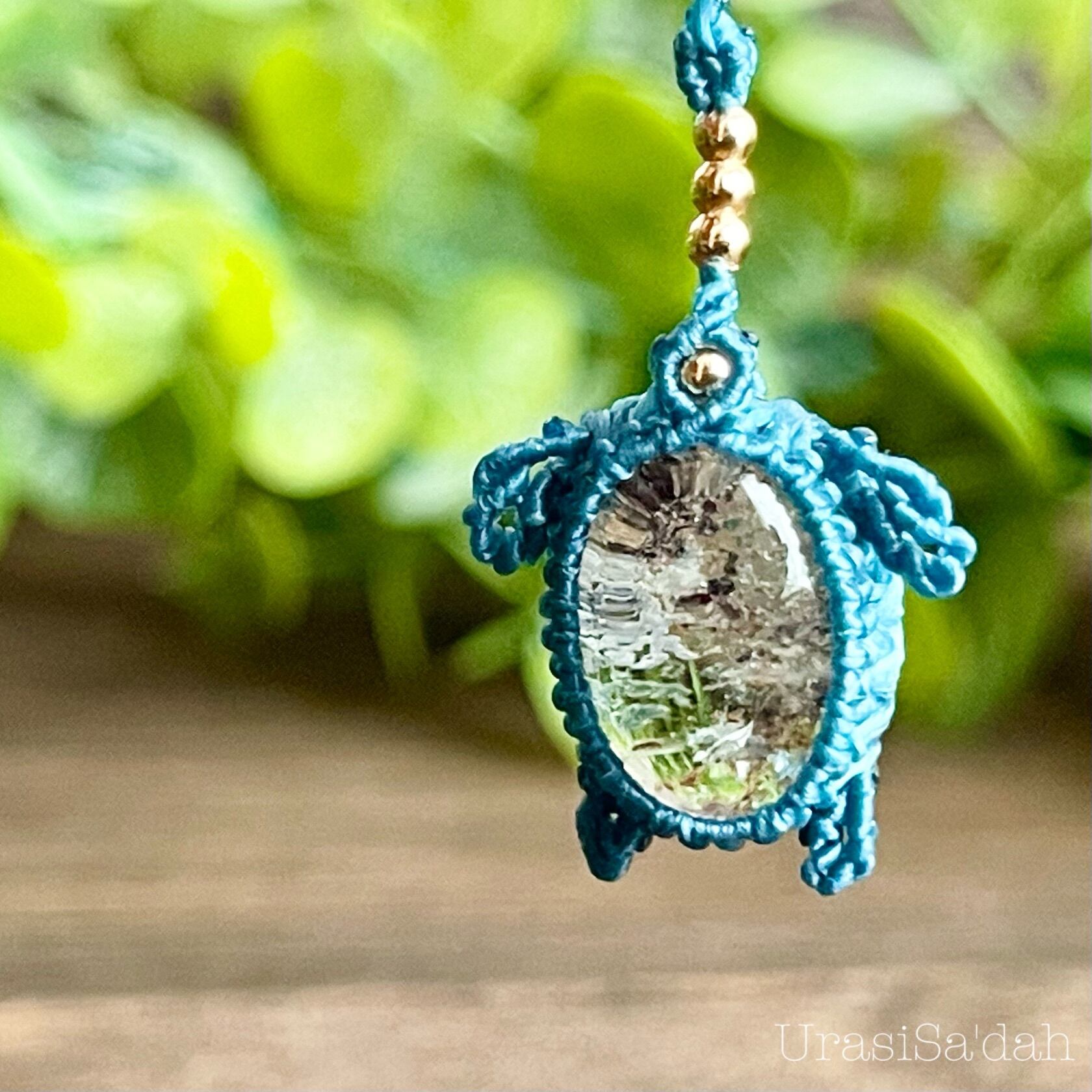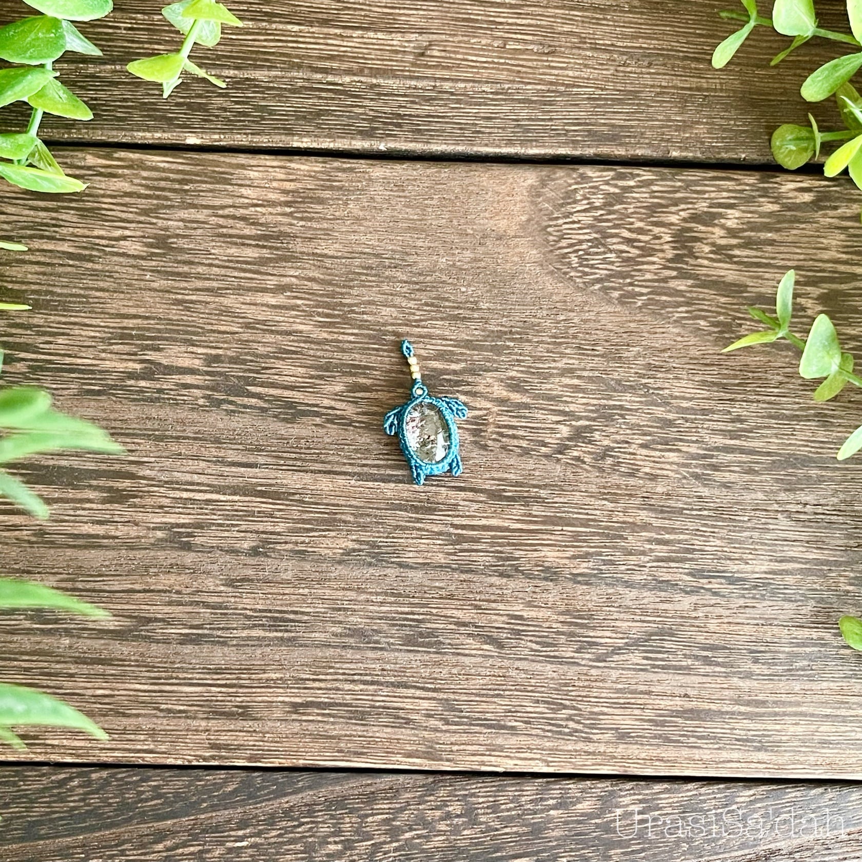 ガーデンクォーツ[カメ]マクラメアクセサリー〈チャーム、ネックレス、ピアス、イヤリング〉