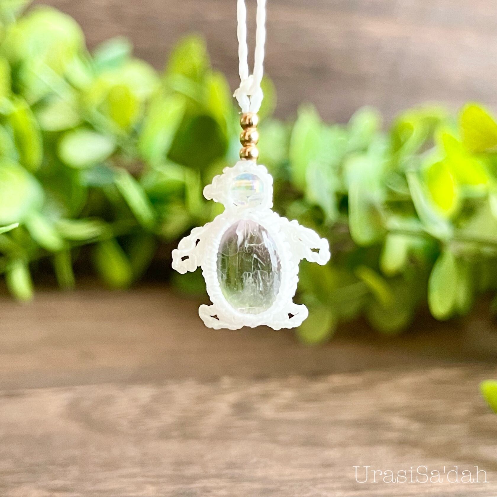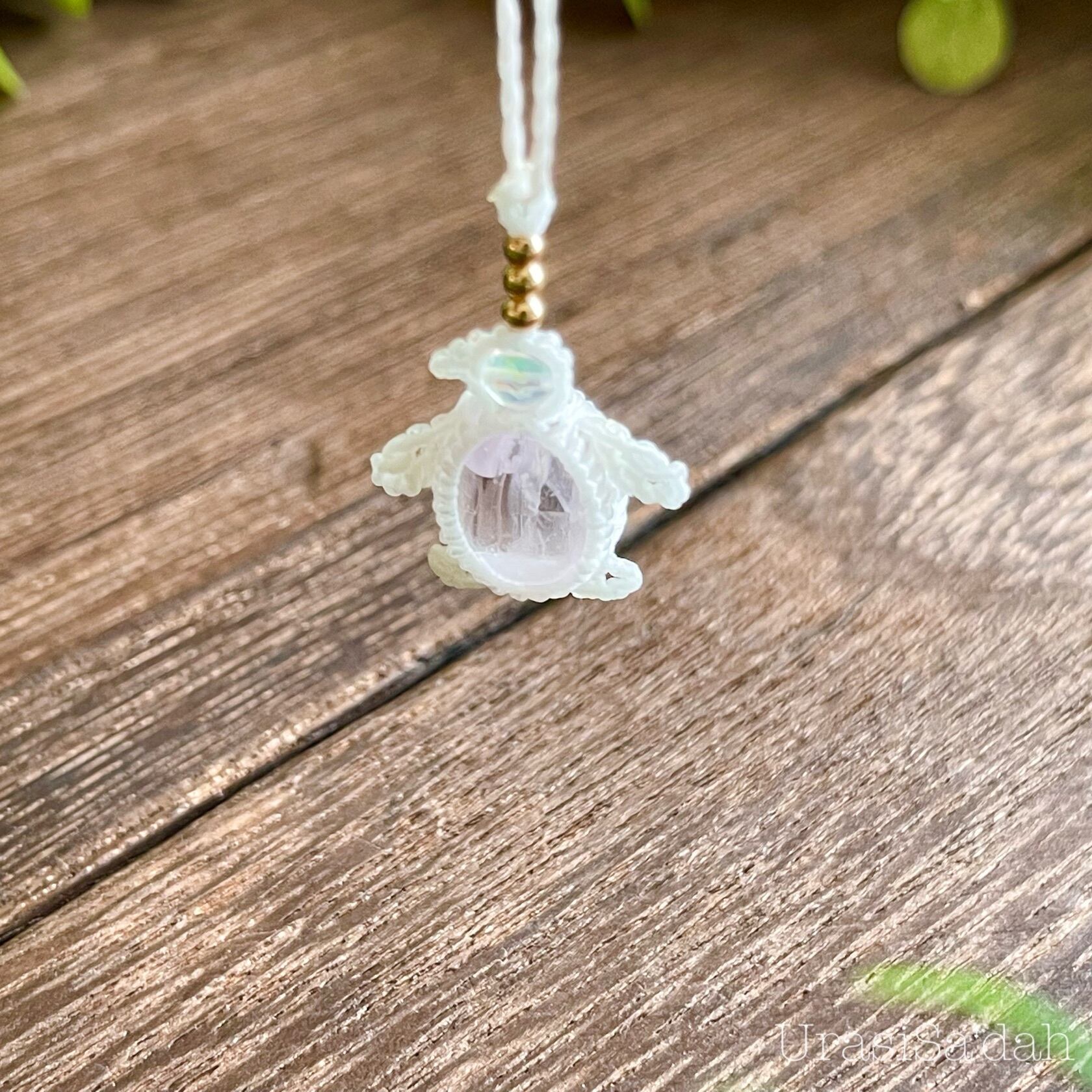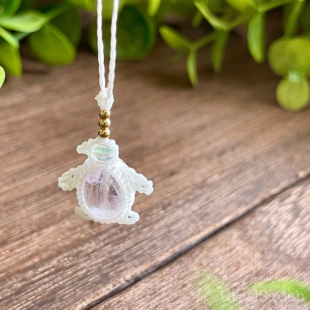 クンツァイト[ペンギン]マクラメアクセサリー〈チャーム、ネックレス、ピアス、イヤリング〉