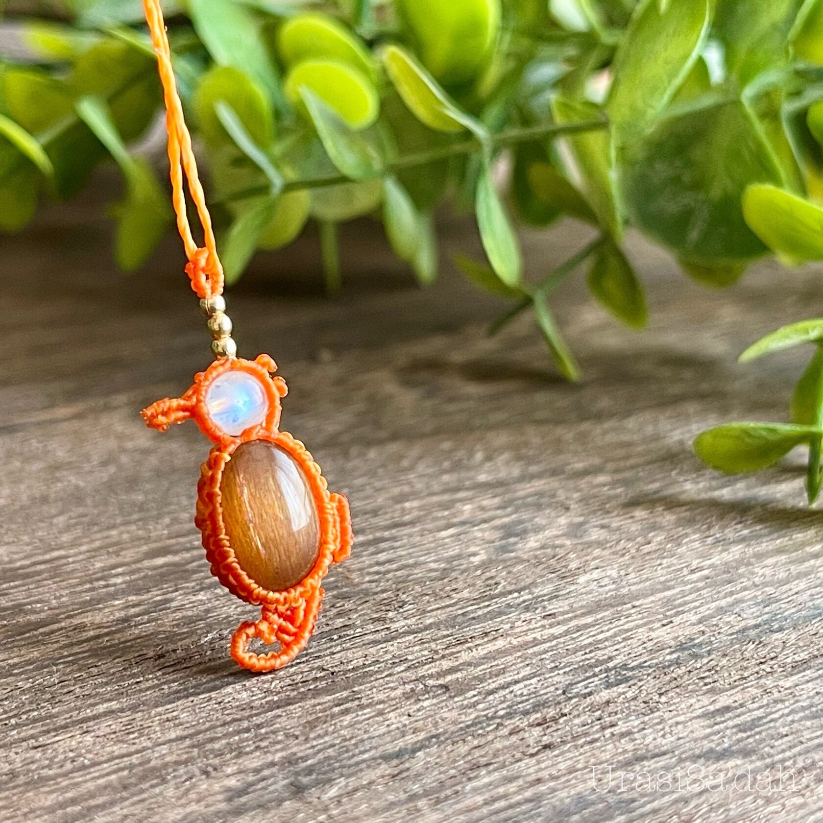 スターサンストーン[タツノオトシゴ]マクラメアクセサリー〈チャーム、ネックレス、ピアス、イヤリング〉