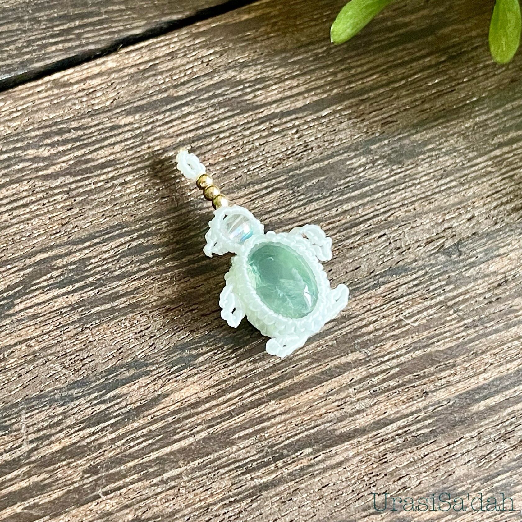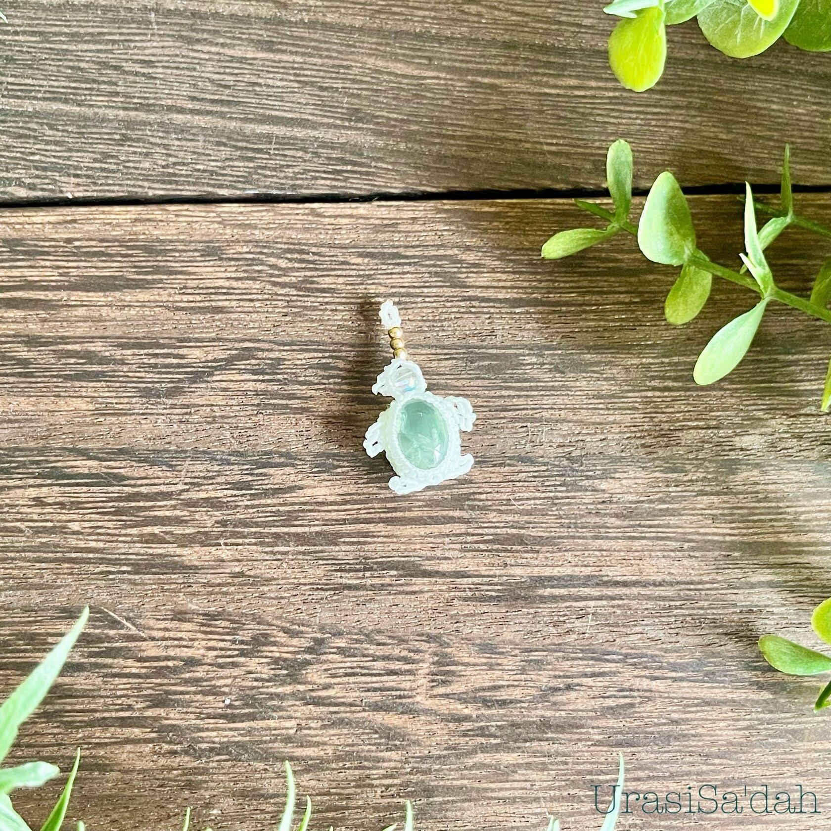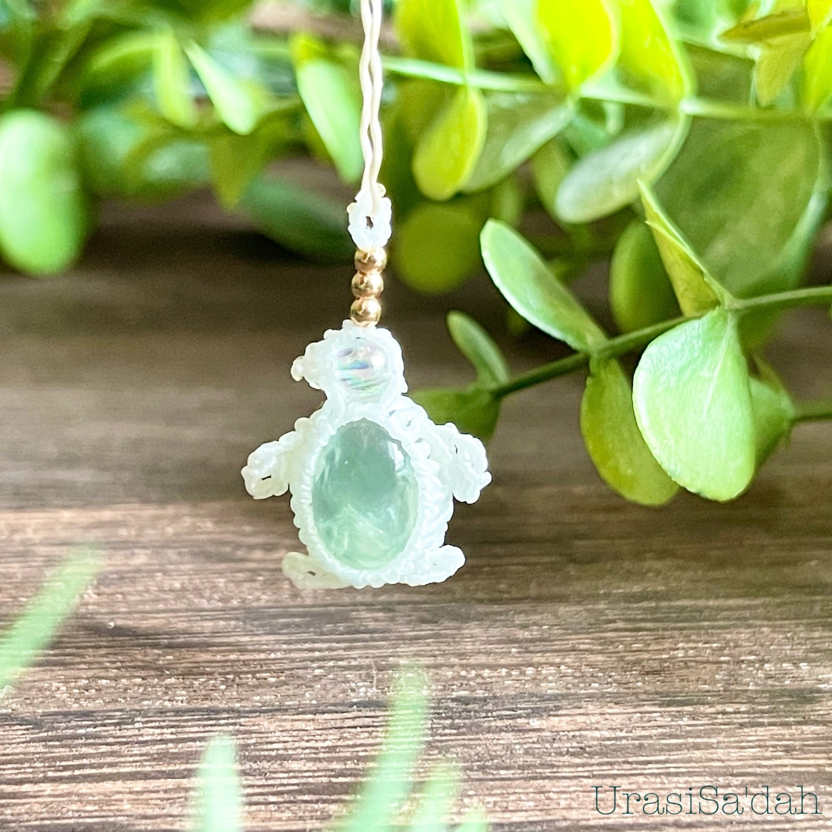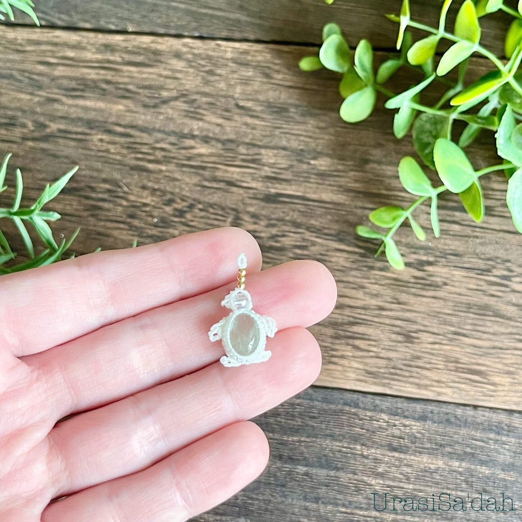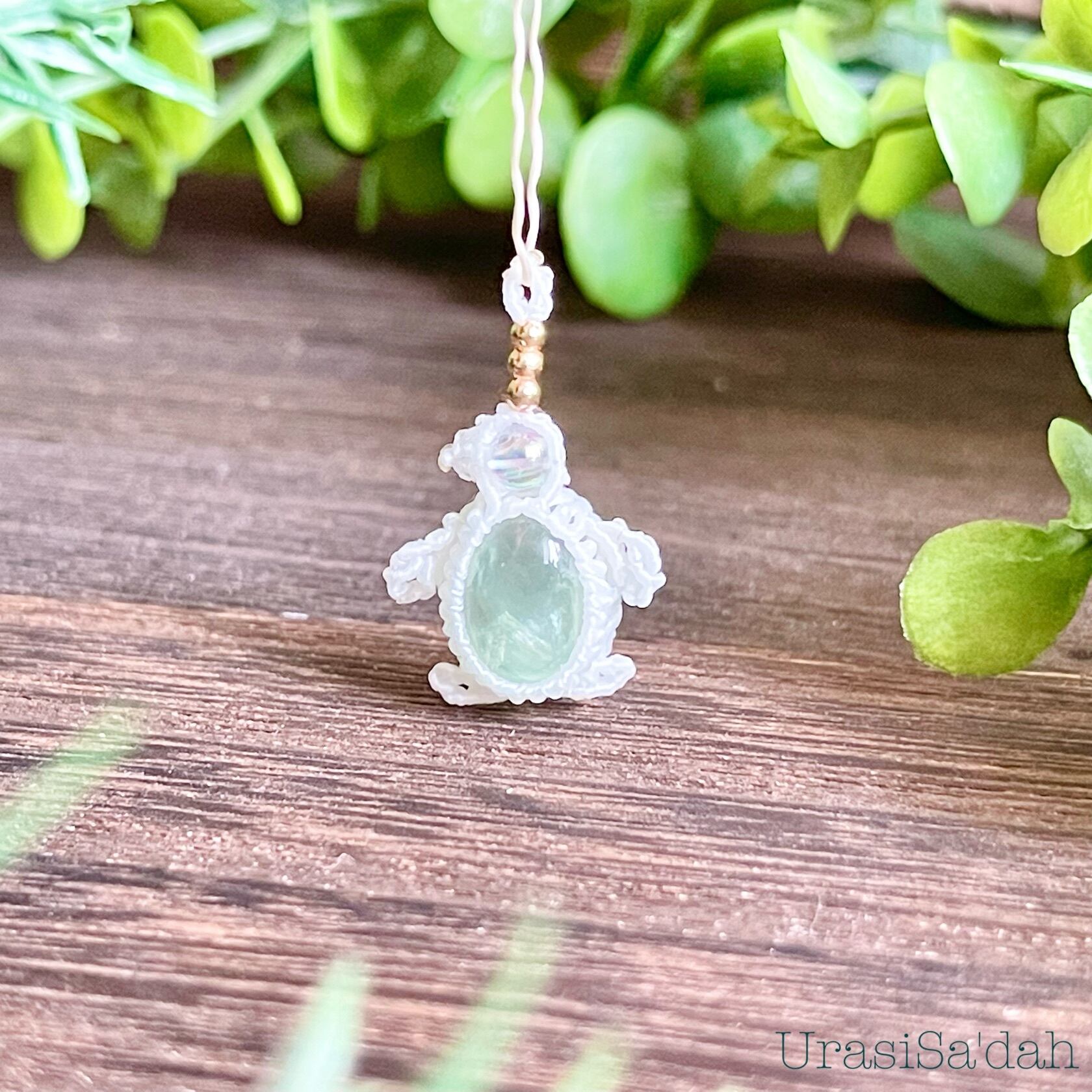 プレナイト[ペンギン]マクラメアクセサリー〈チャーム、ネックレス、ピアス、イヤリング〉