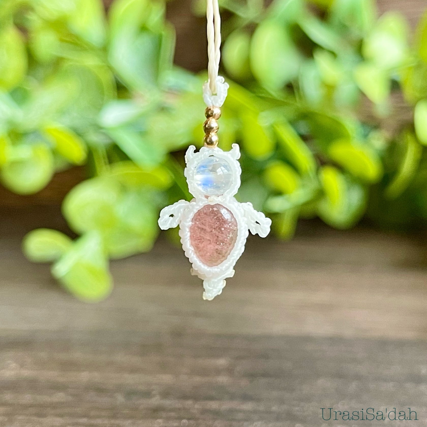 ストロベリークォーツ[クリオネ]マクラメアクセサリー〈チャーム、ネックレス、ピアス、イヤリング〉