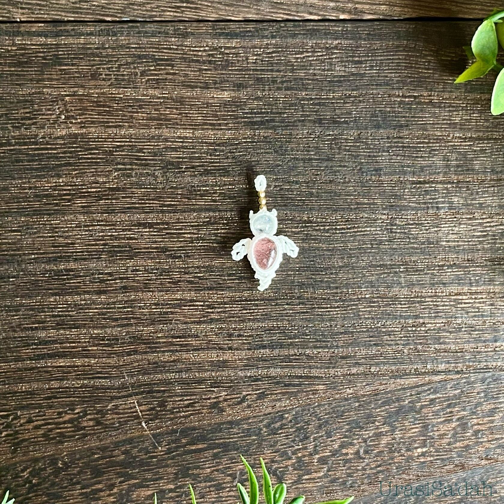 ストロベリークォーツ[クリオネ]マクラメアクセサリー〈チャーム、ネックレス、ピアス、イヤリング〉