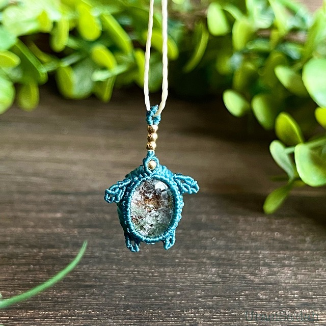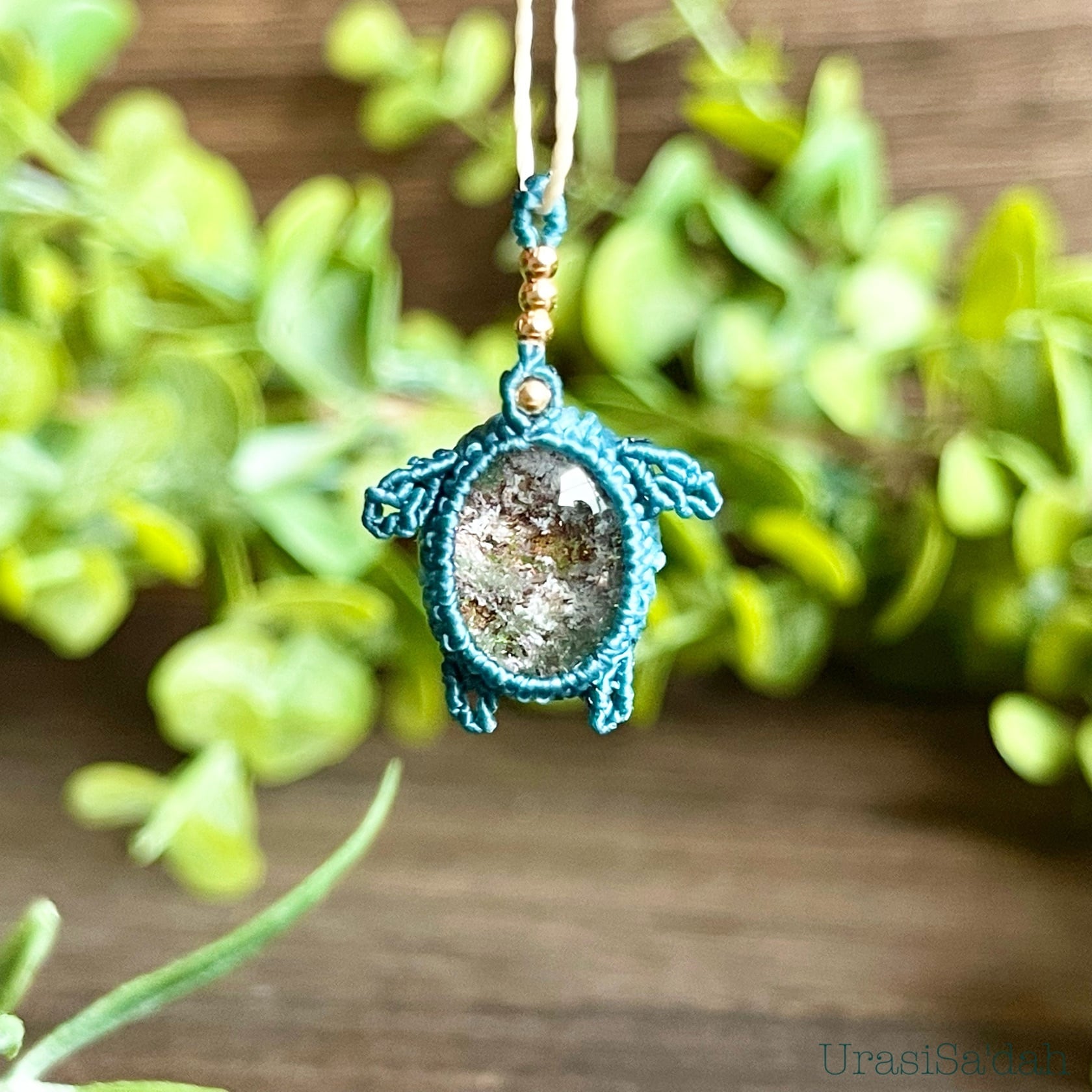 ガーデンクォーツ[カメ]マクラメアクセサリー〈チャーム、ネックレス、ピアス、イヤリング〉