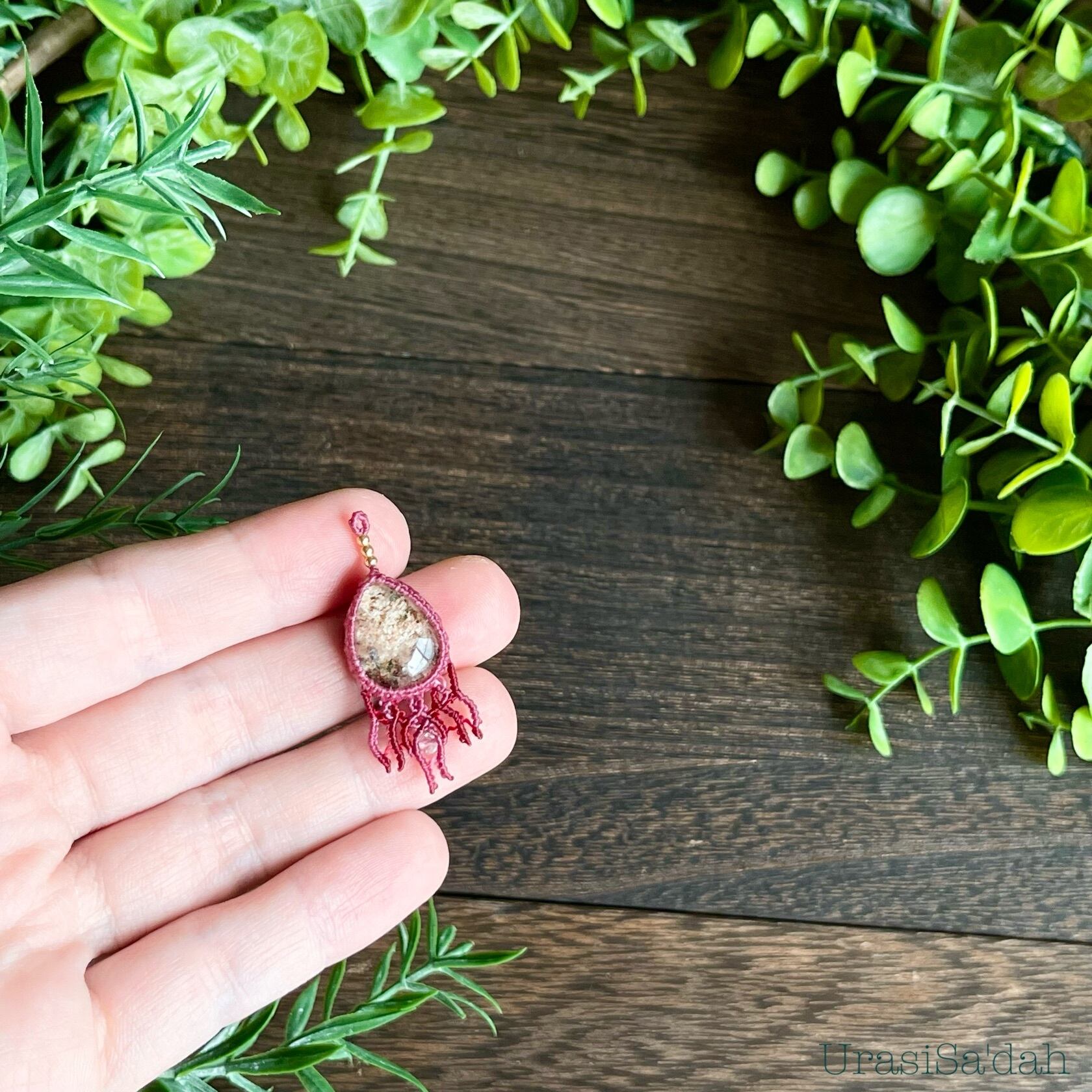 ガーデンクォーツ[クラゲ]マクラメアクセサリー〈チャーム、ネックレス、ピアス、イヤリング〉