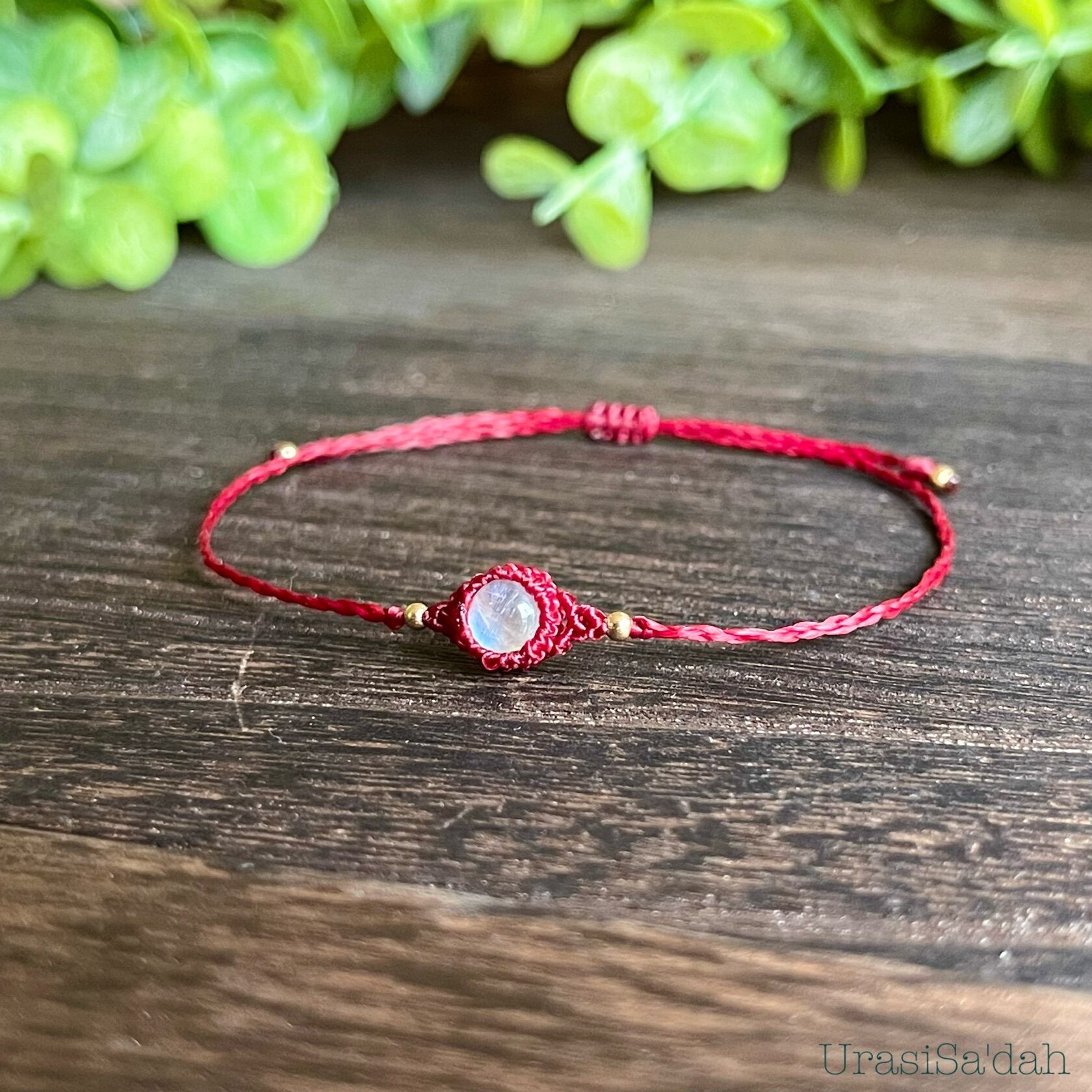 レインボームーンストーン マクラメブレスレット【細め/重ね付け】