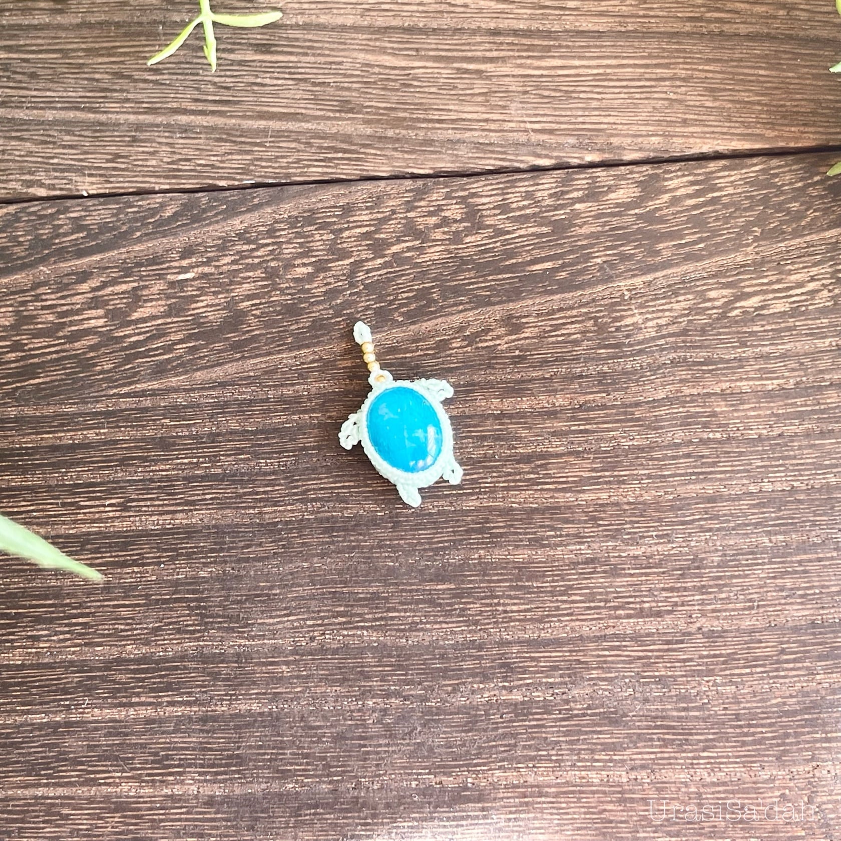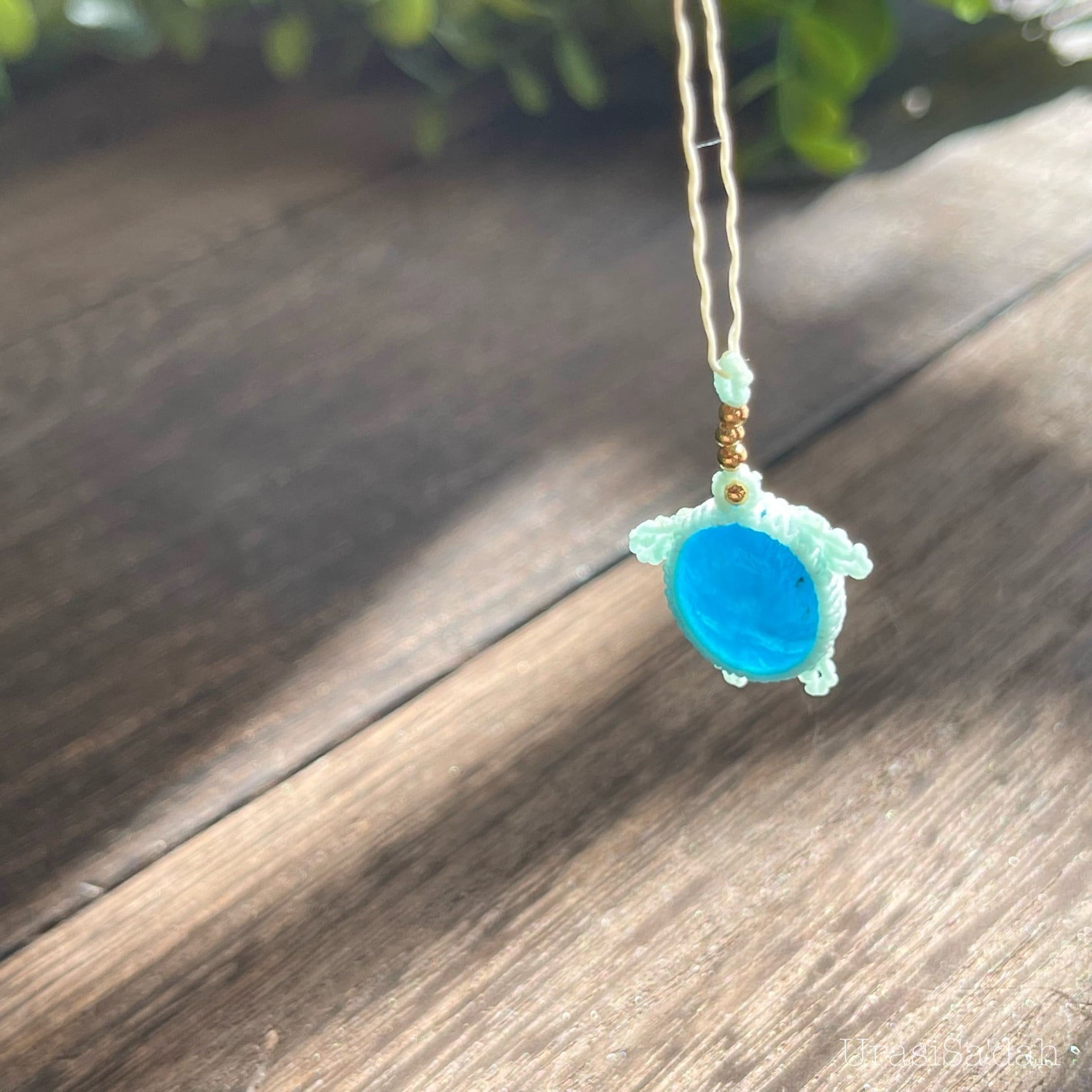 ブルーアパタイト[カメ]マクラメアクセサリー〈チャーム、ネックレス、ピアス、イヤリング〉