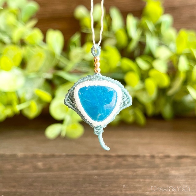ブルーアパタイト[エイ]マクラメアクセサリー〈チャーム、ネックレス、ピアス、イヤリング〉
