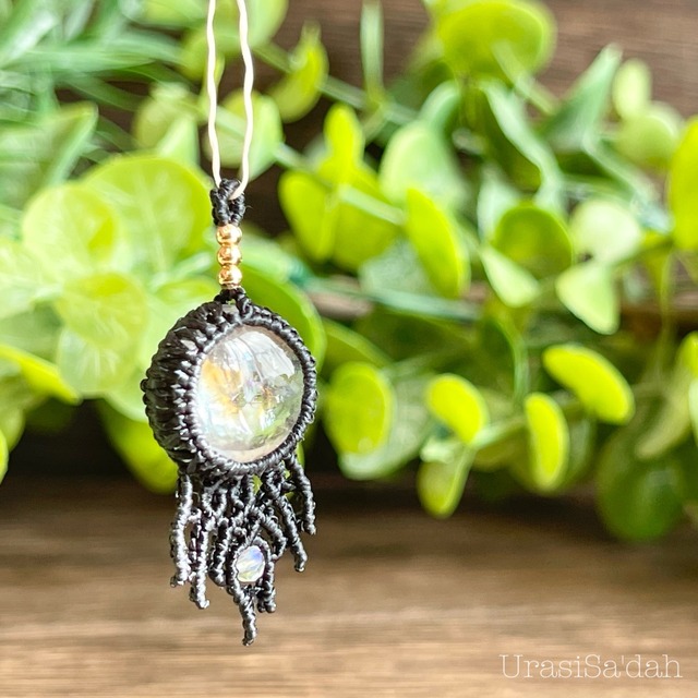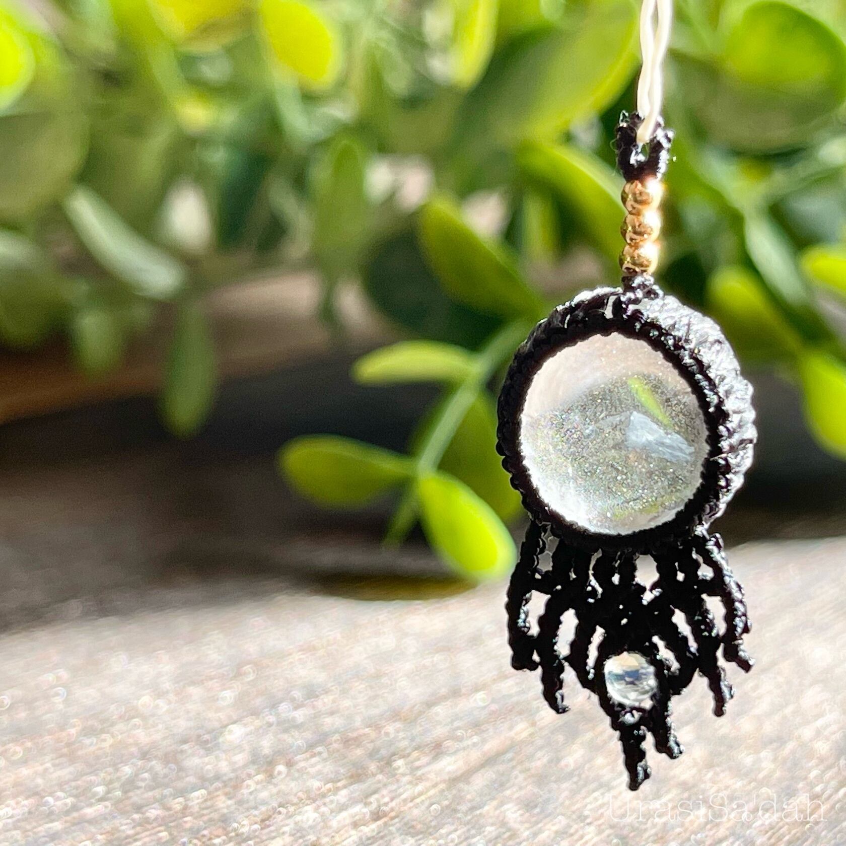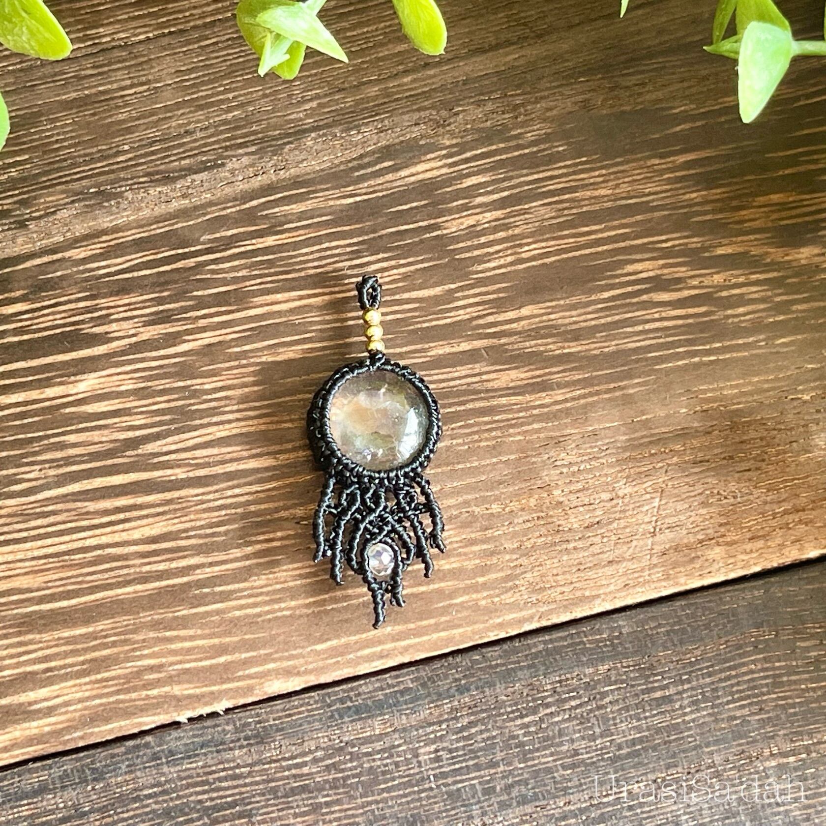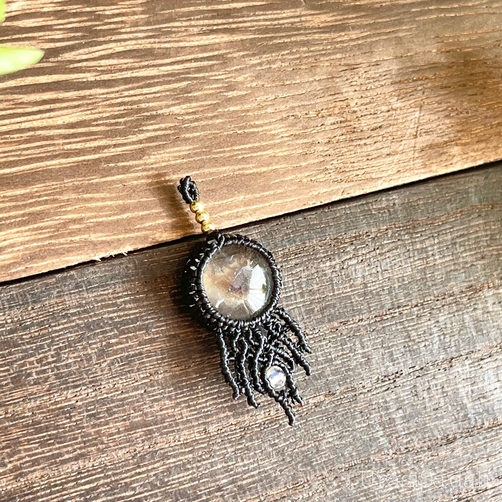 アイリスクォーツ[クラゲ]マクラメアクセサリー〈チャーム、ネックレス、ピアス、イヤリング〉