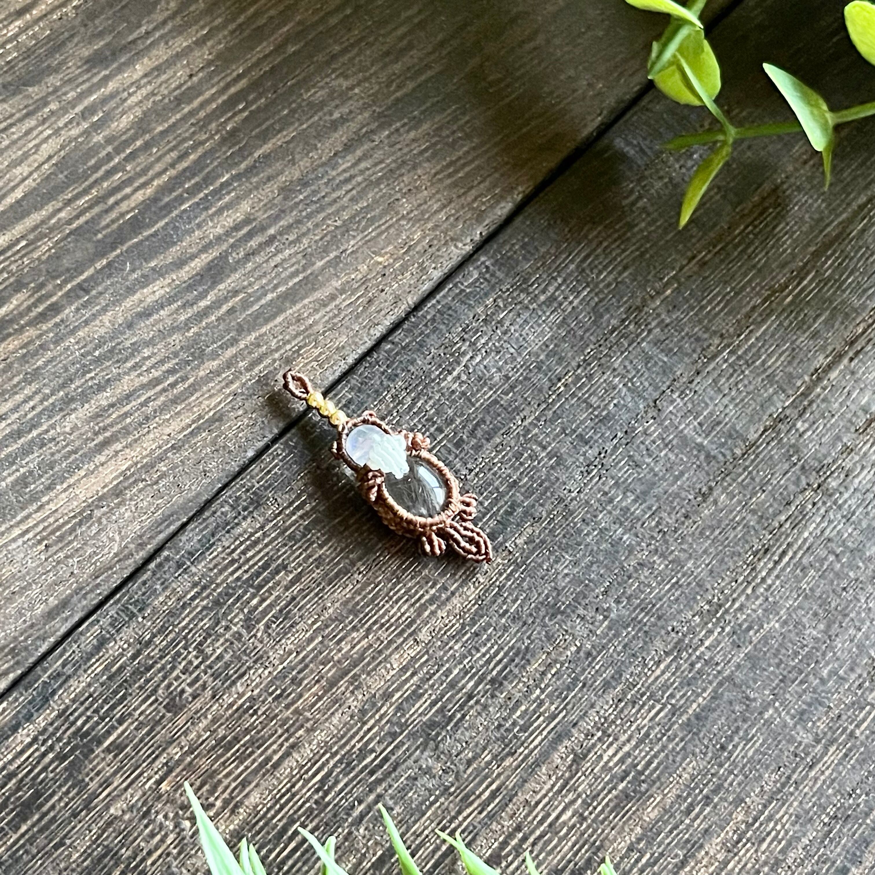 プラチナルチルクォーツ[ラッコ]マクラメアクセサリー〈チャーム、ネックレス、ピアス、イヤリング〉