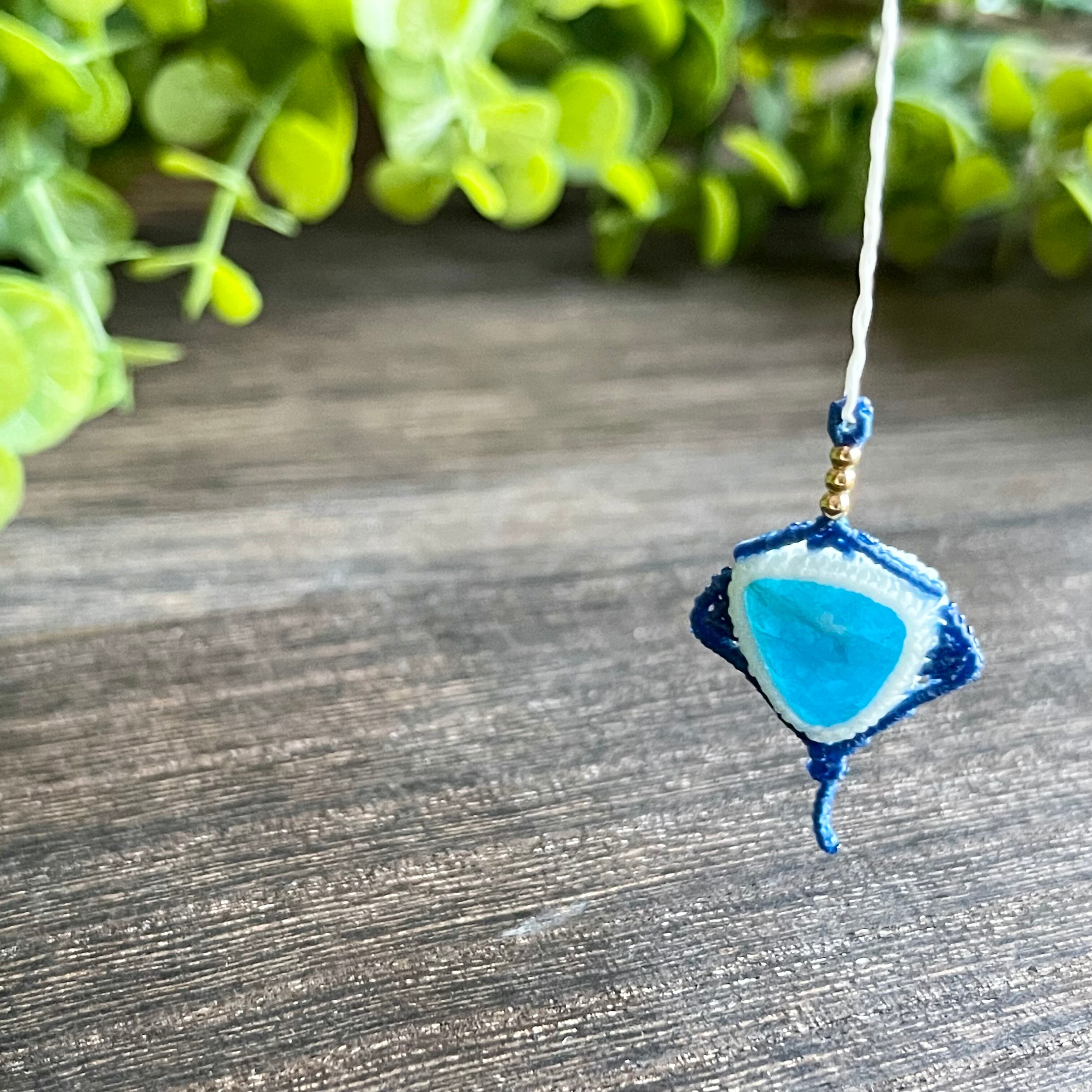 ブルーアパタイト[エイ]マクラメアクセサリー〈チャーム、ネックレス、ピアス、イヤリング〉