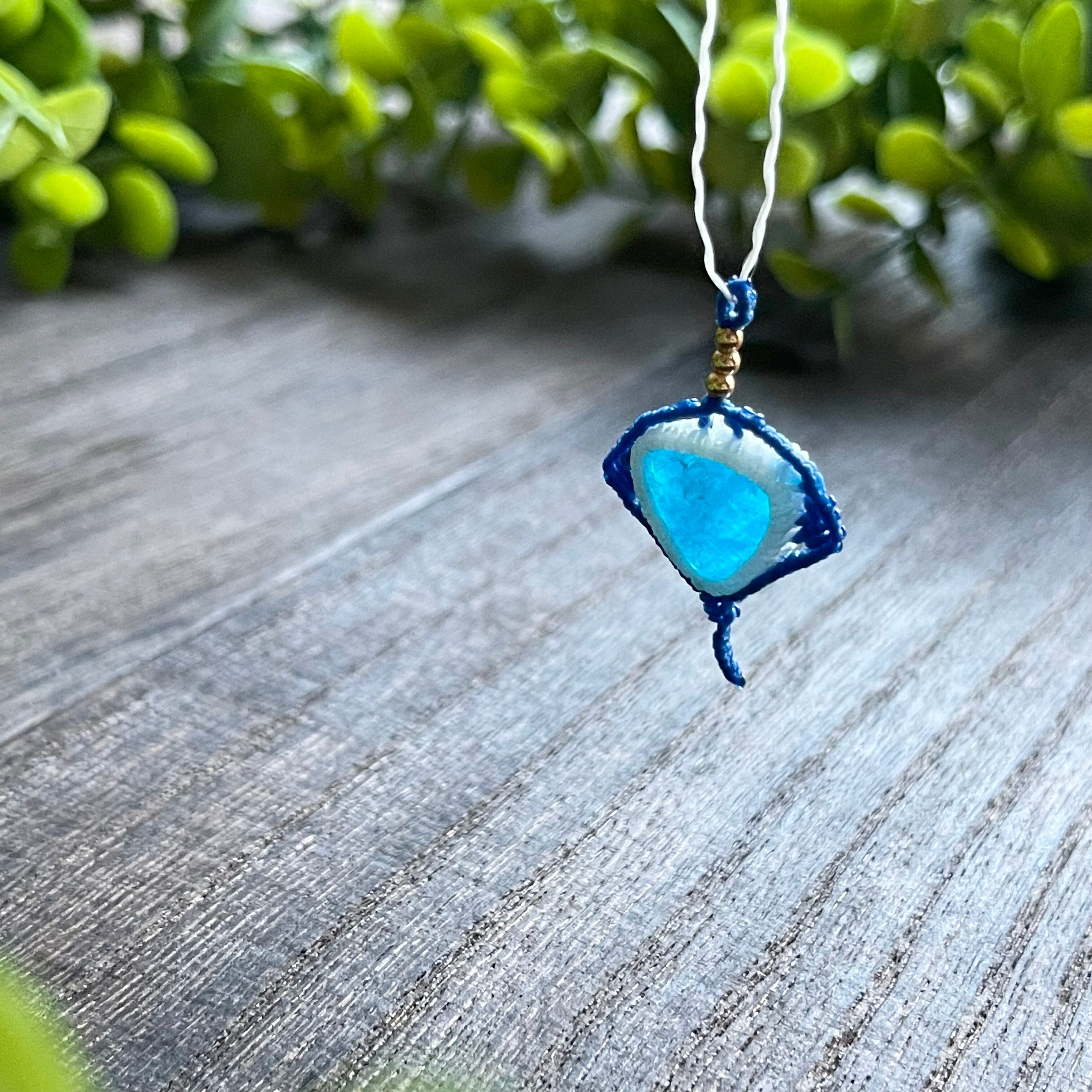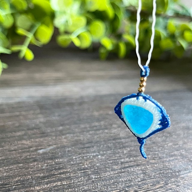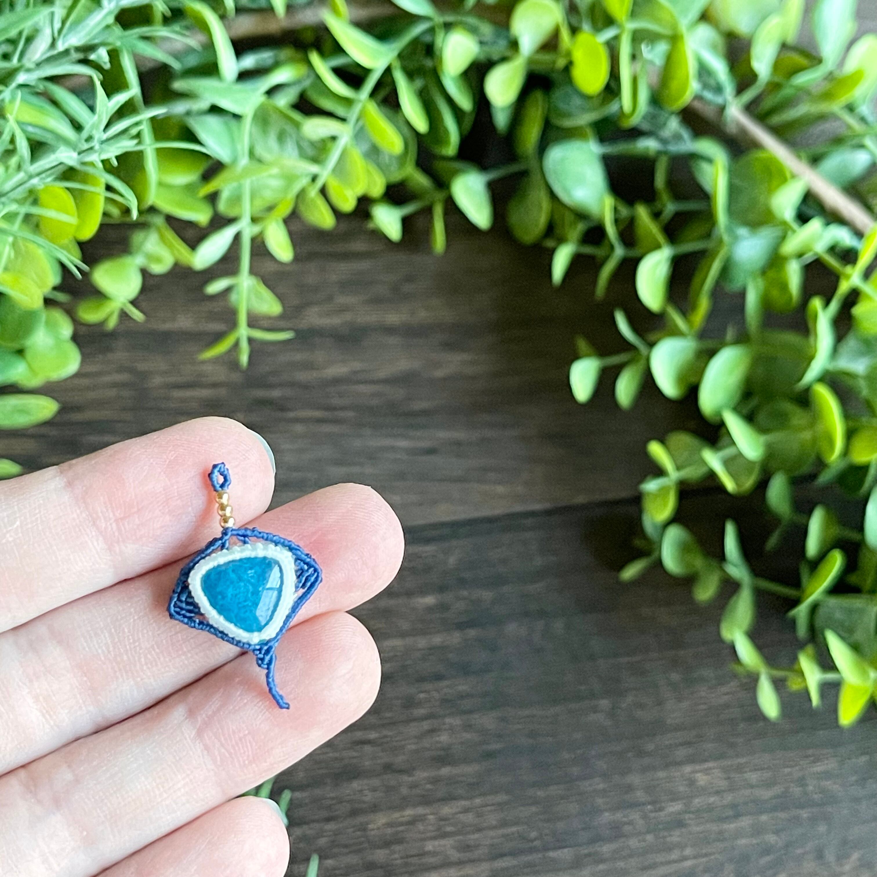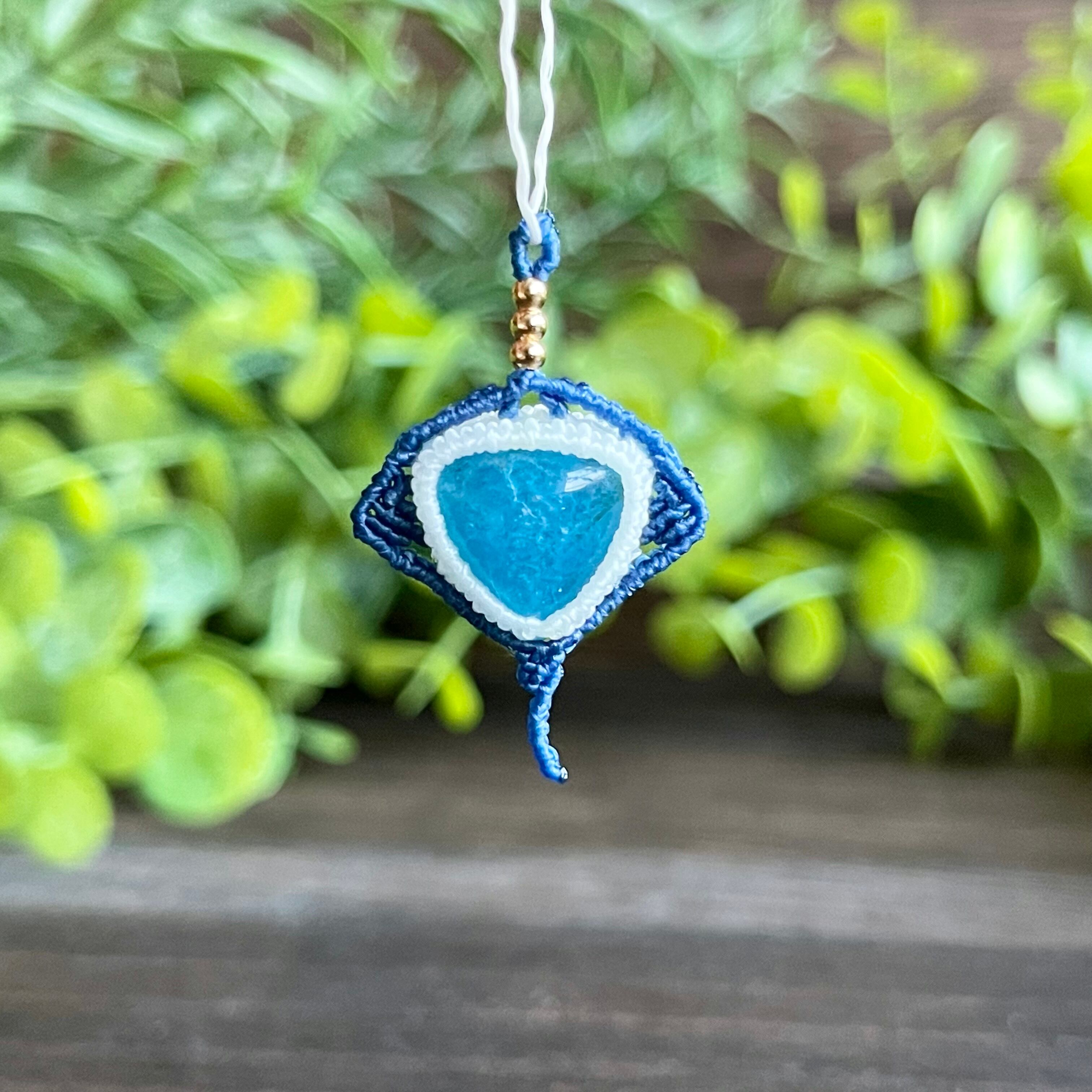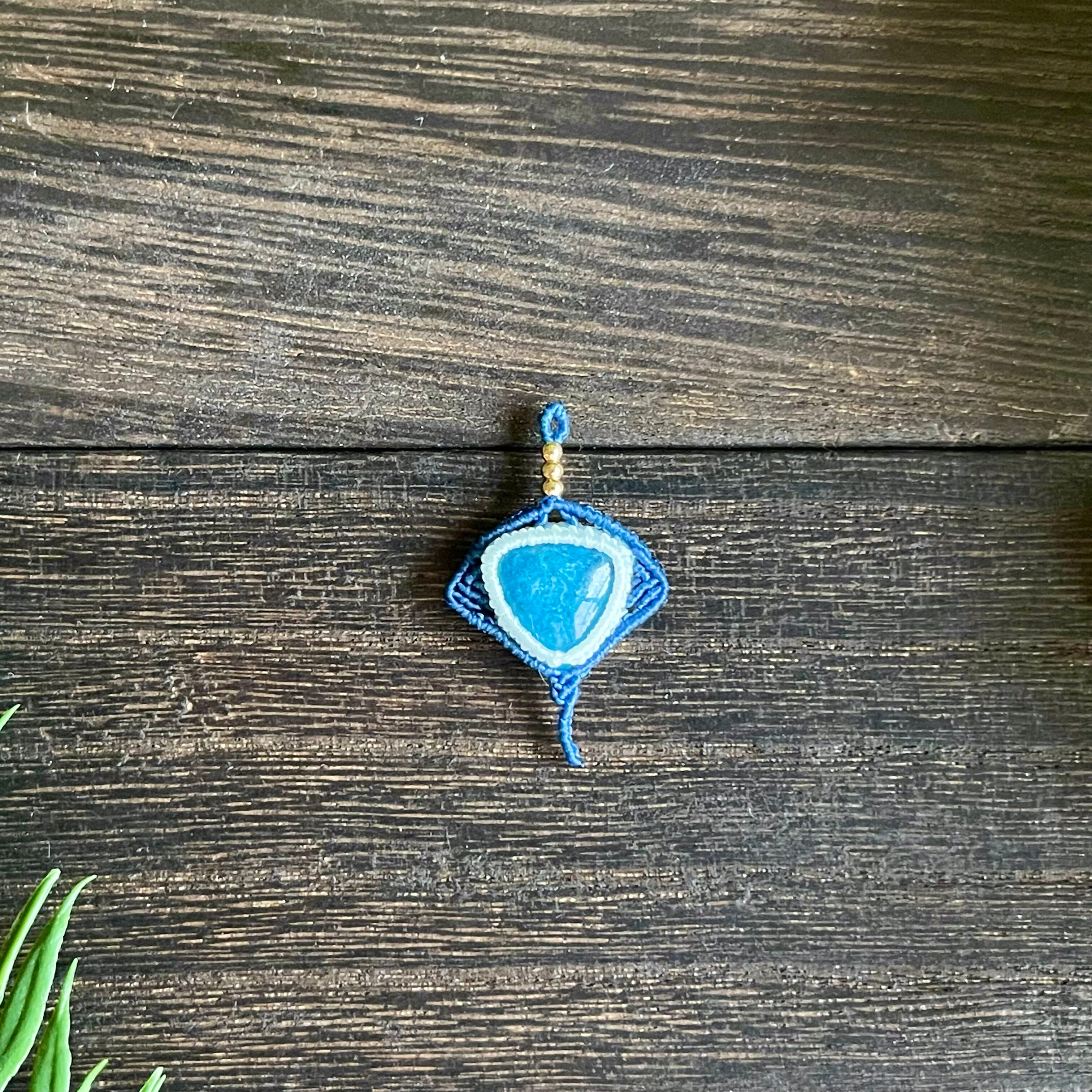 ブルーアパタイト[エイ]マクラメアクセサリー〈チャーム、ネックレス、ピアス、イヤリング〉