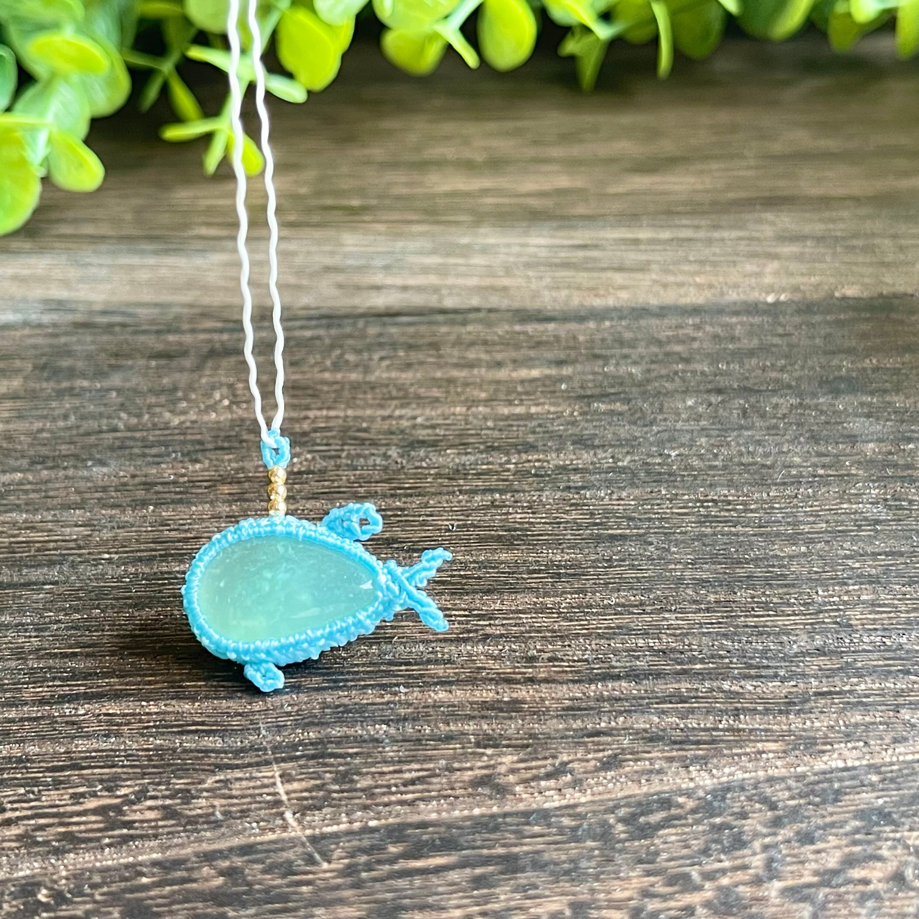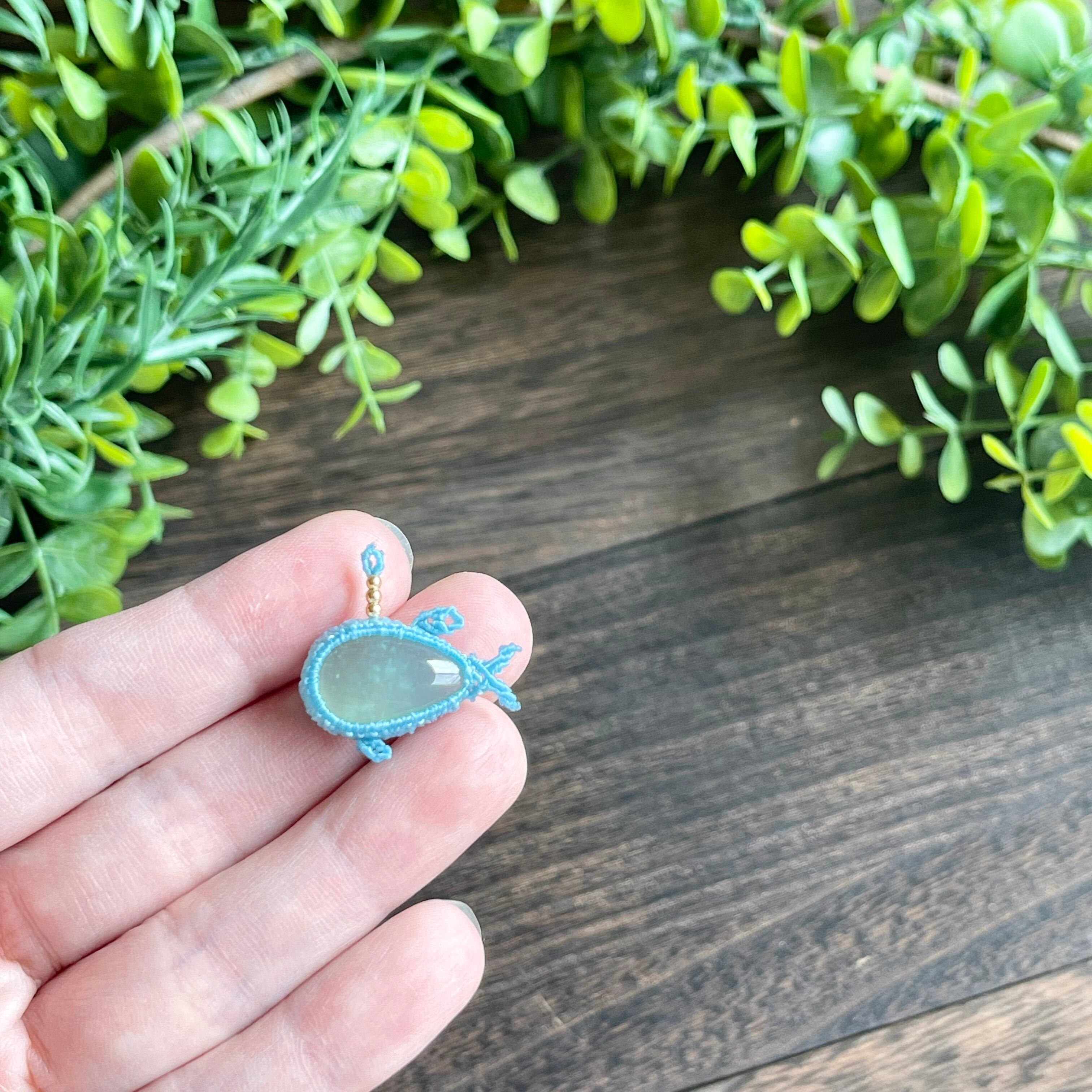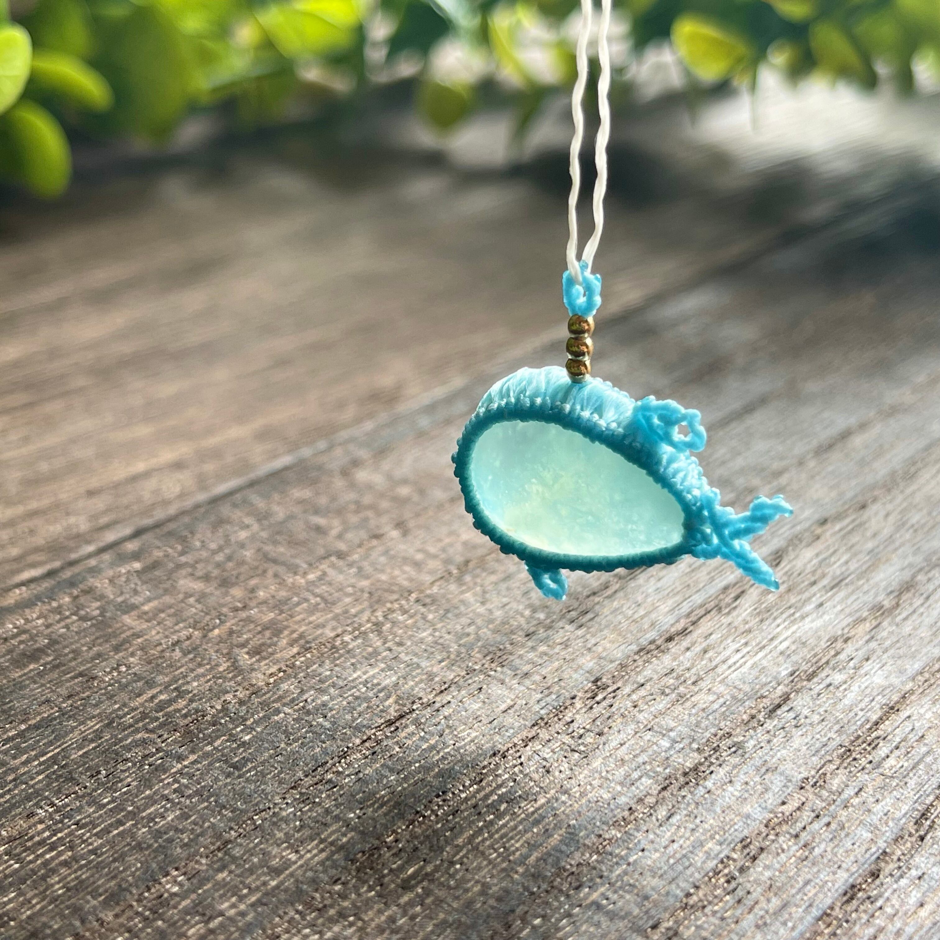 グリーンサーペンティン[イルカ]マクラメアクセサリー〈チャーム、ネックレス、ピアス、イヤリング〉