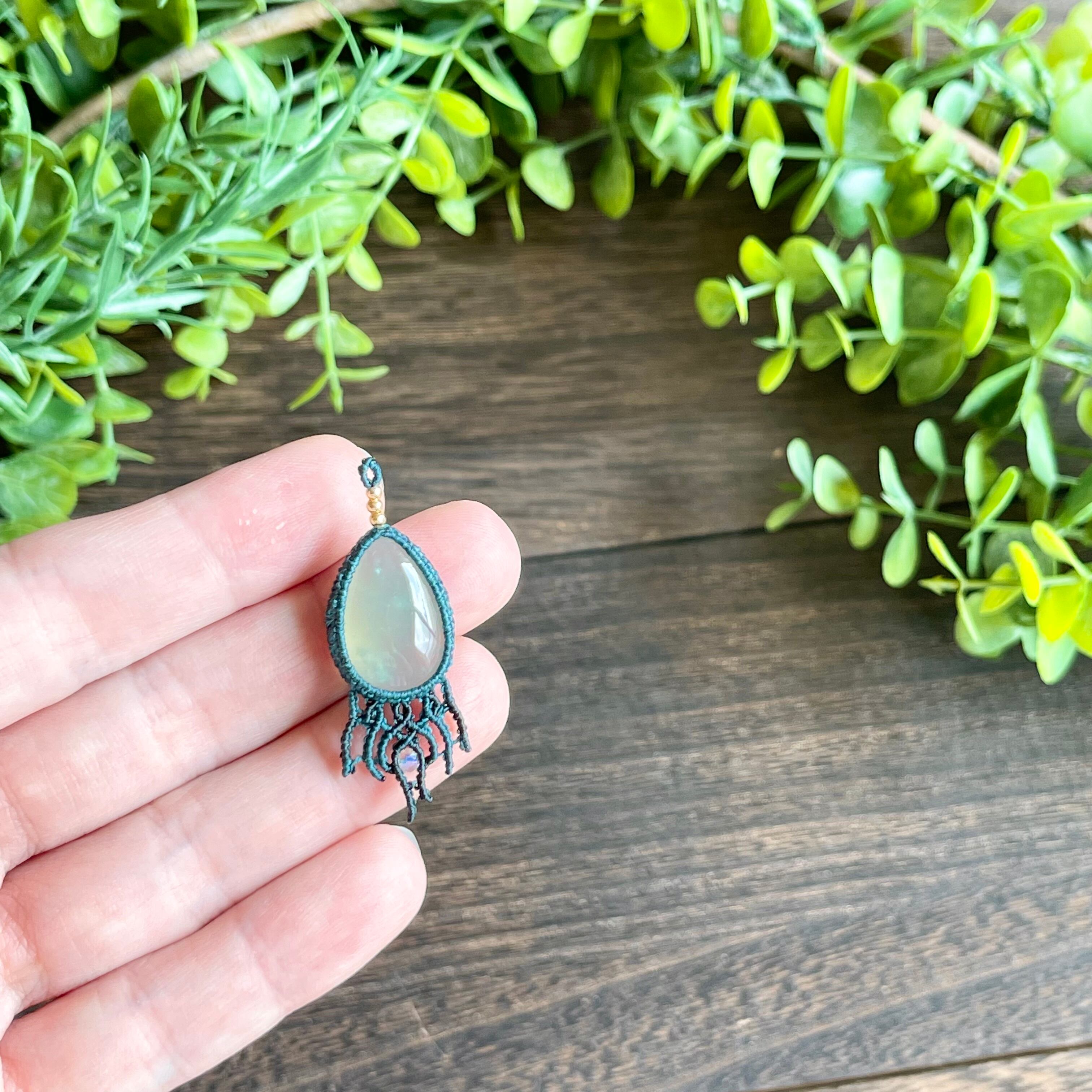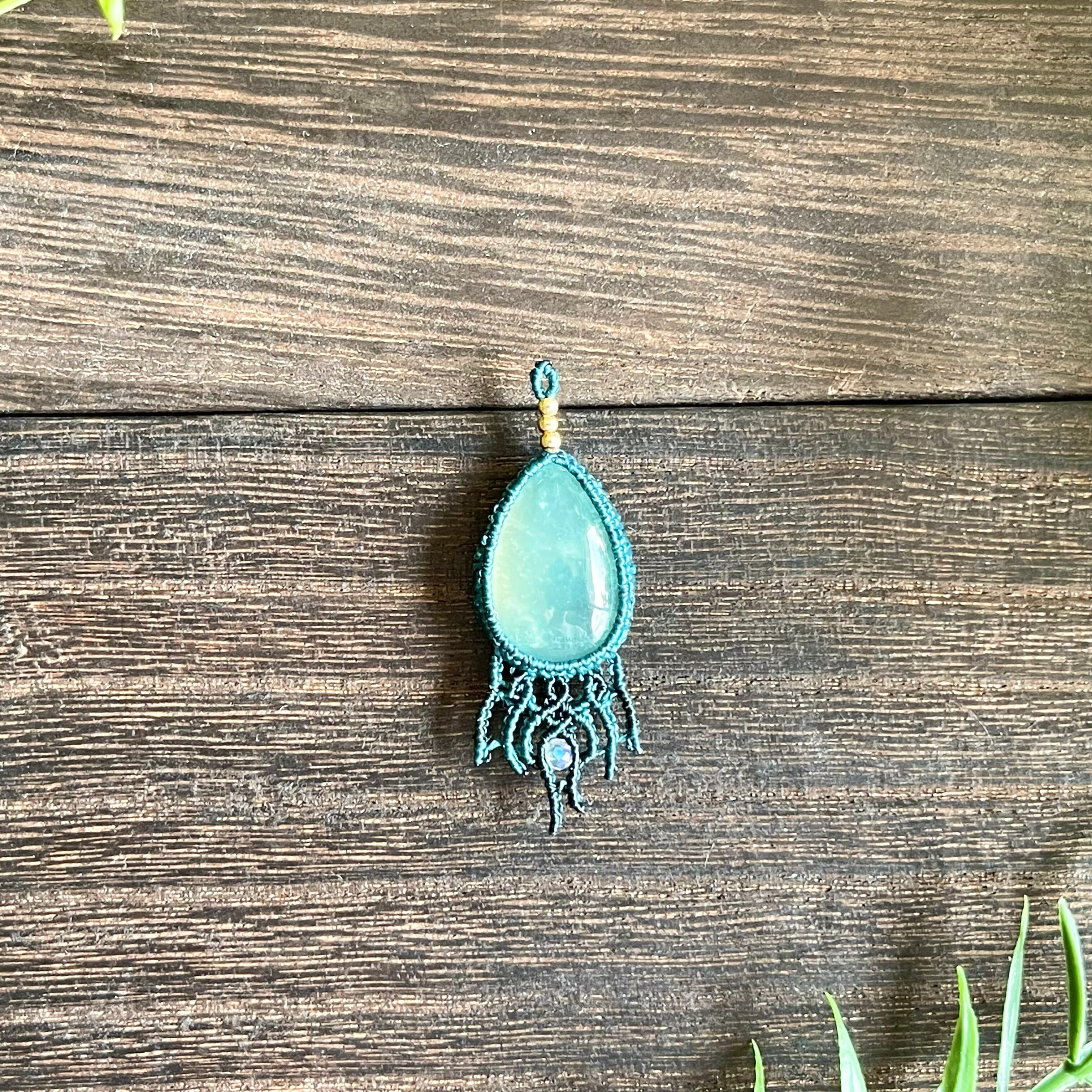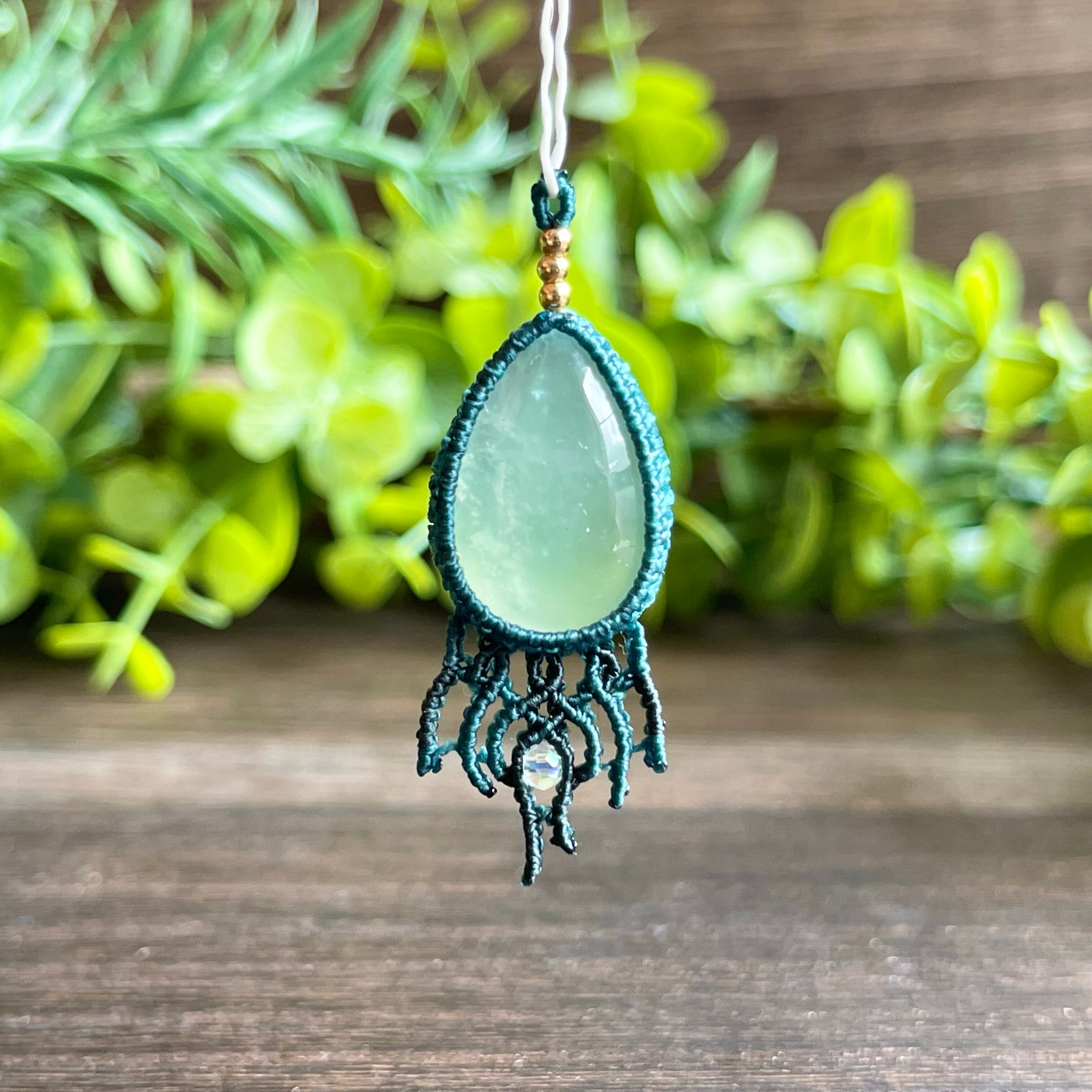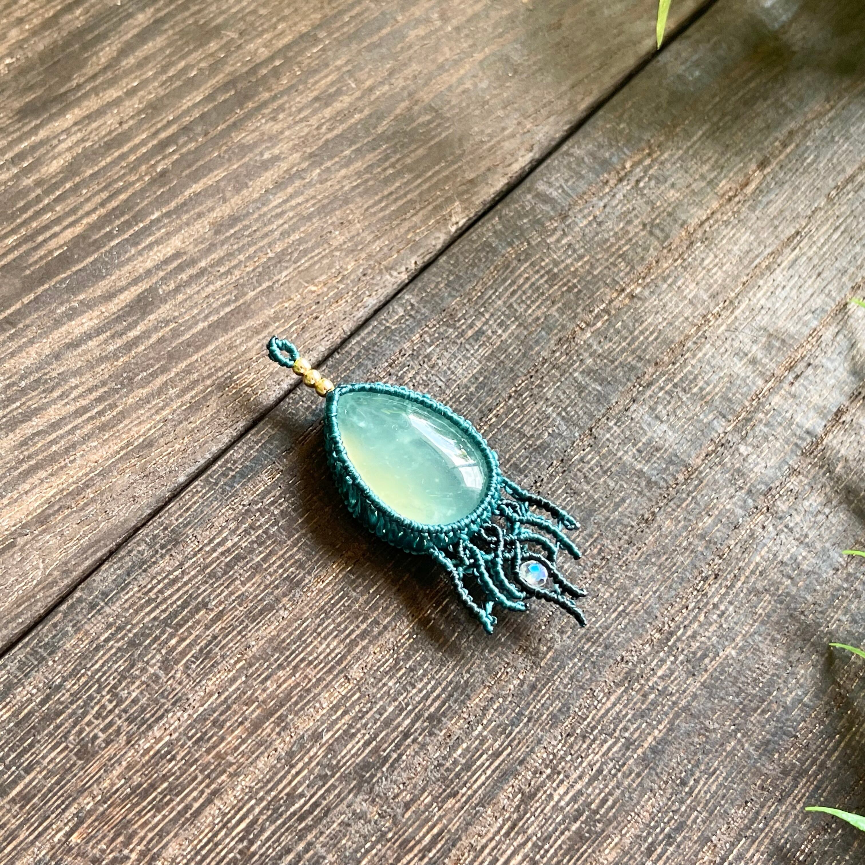 グリーンサーペンティン[クラゲ]マクラメアクセサリー〈チャーム、ネックレス、ピアス、イヤリング〉