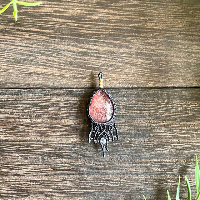 レッドアベンチュリン[クラゲ]マクラメアクセサリー〈チャーム、ネックレス、ピアス、イヤリング〉