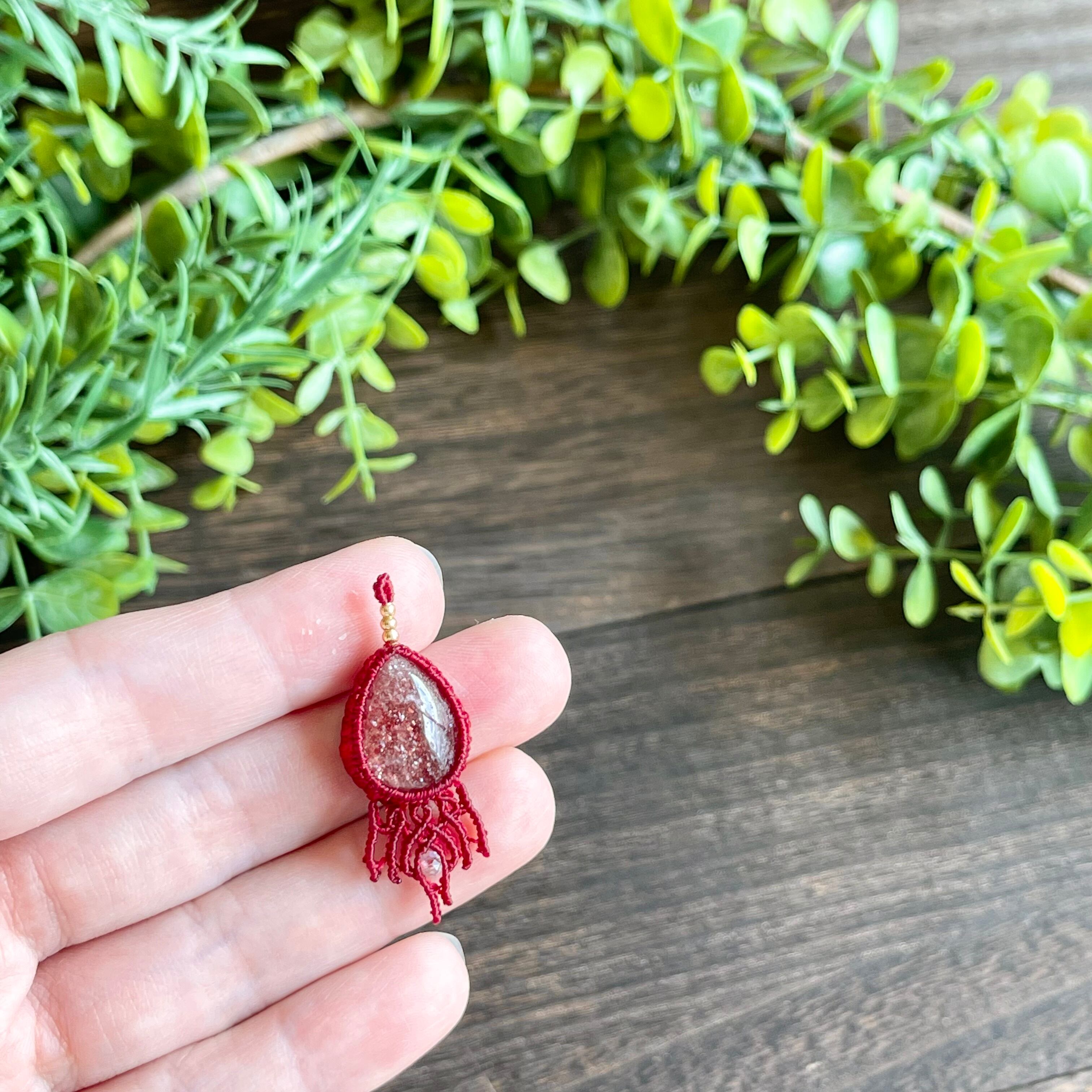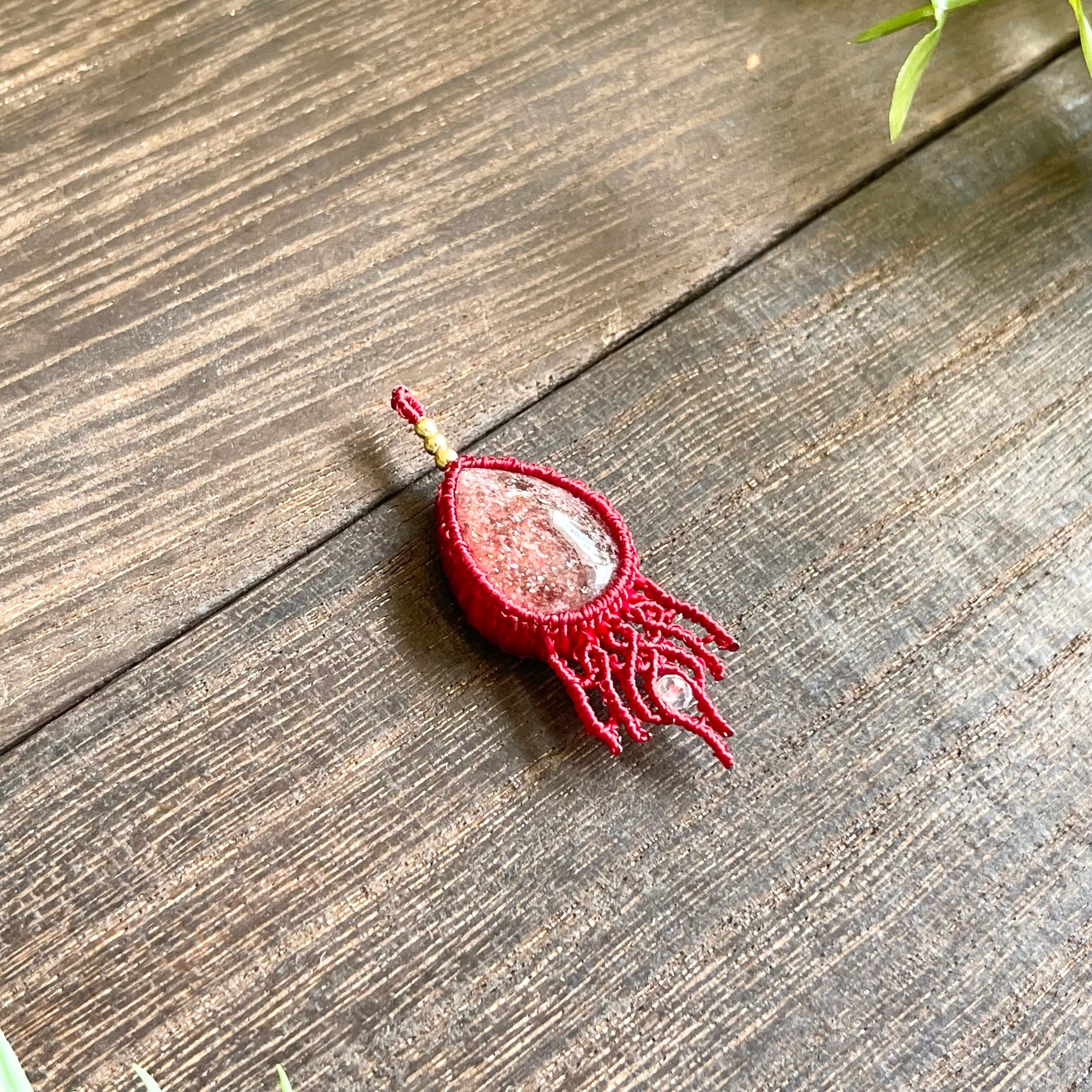 レッドアベンチュリン[クラゲ]マクラメアクセサリー〈チャーム、ネックレス、ピアス、イヤリング〉