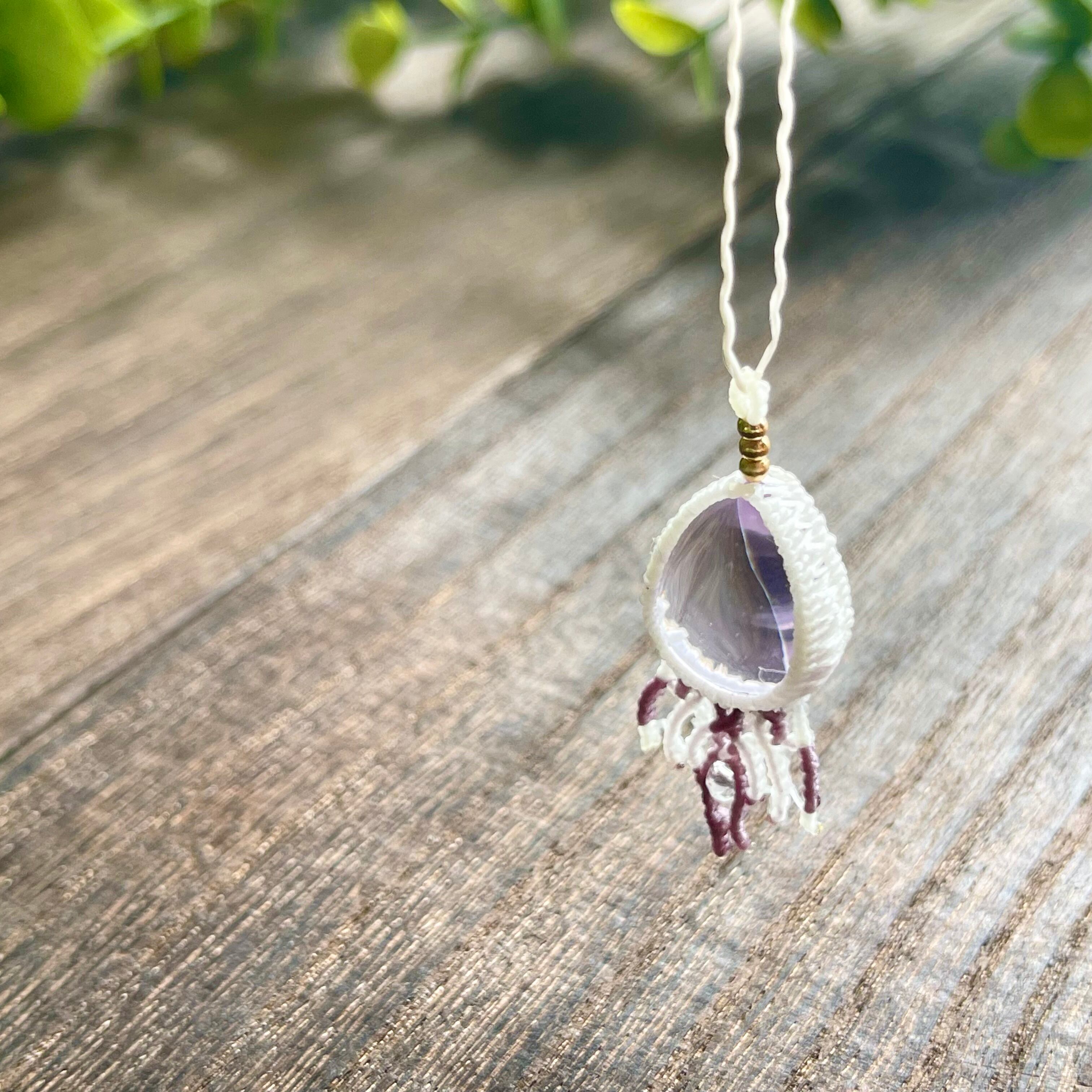 アメジスト[クラゲ]マクラメアクセサリー〈チャーム、ネックレス、ピアス、イヤリング〉