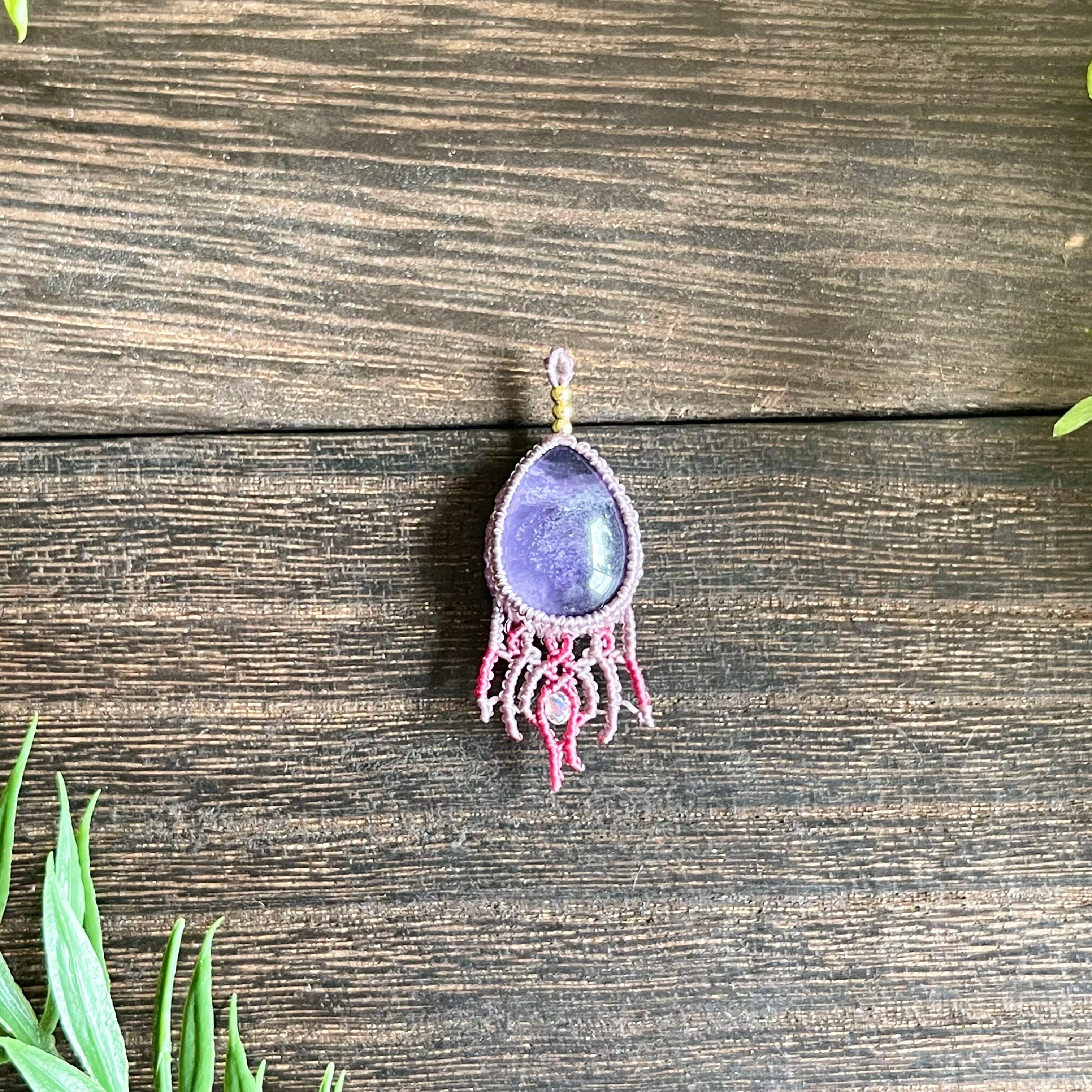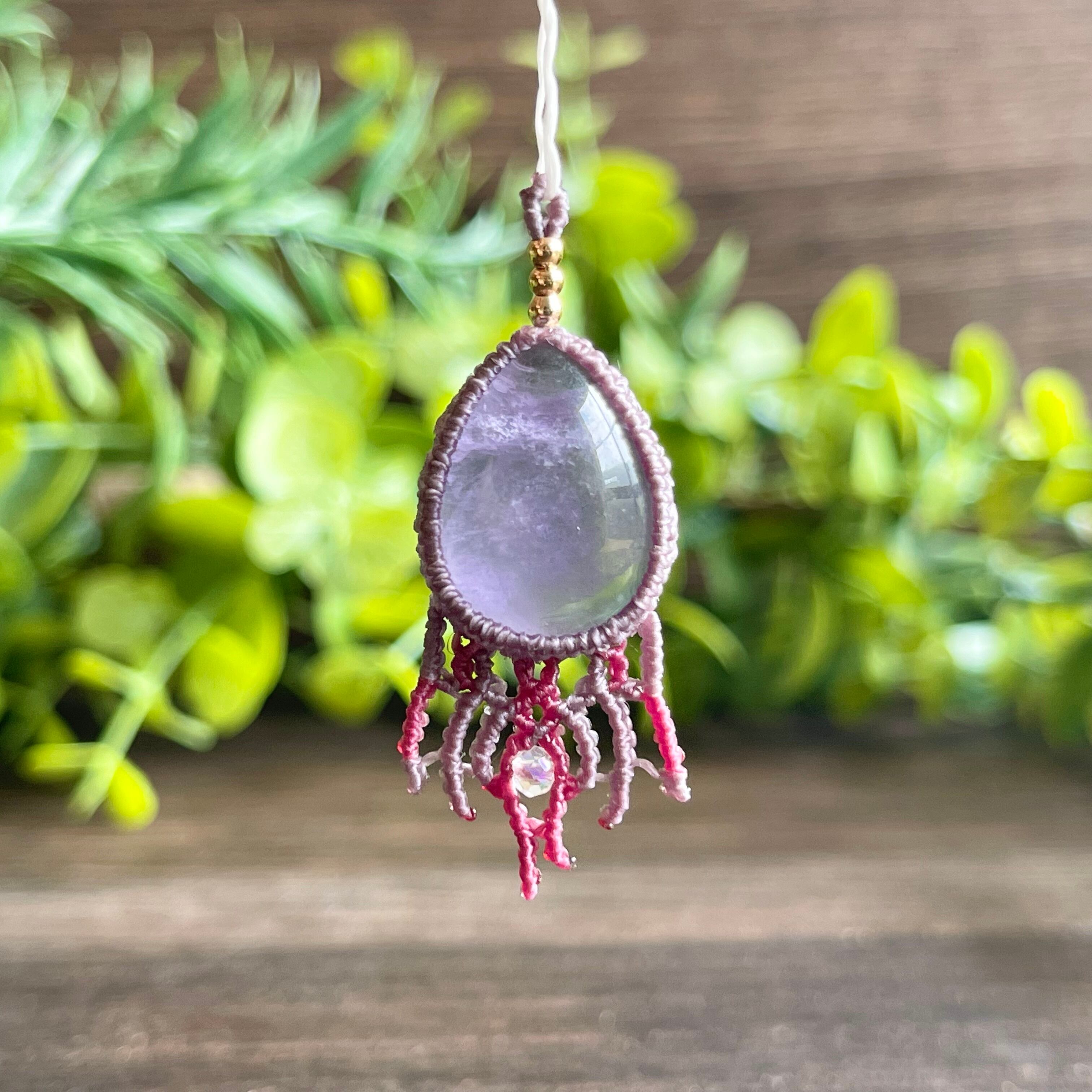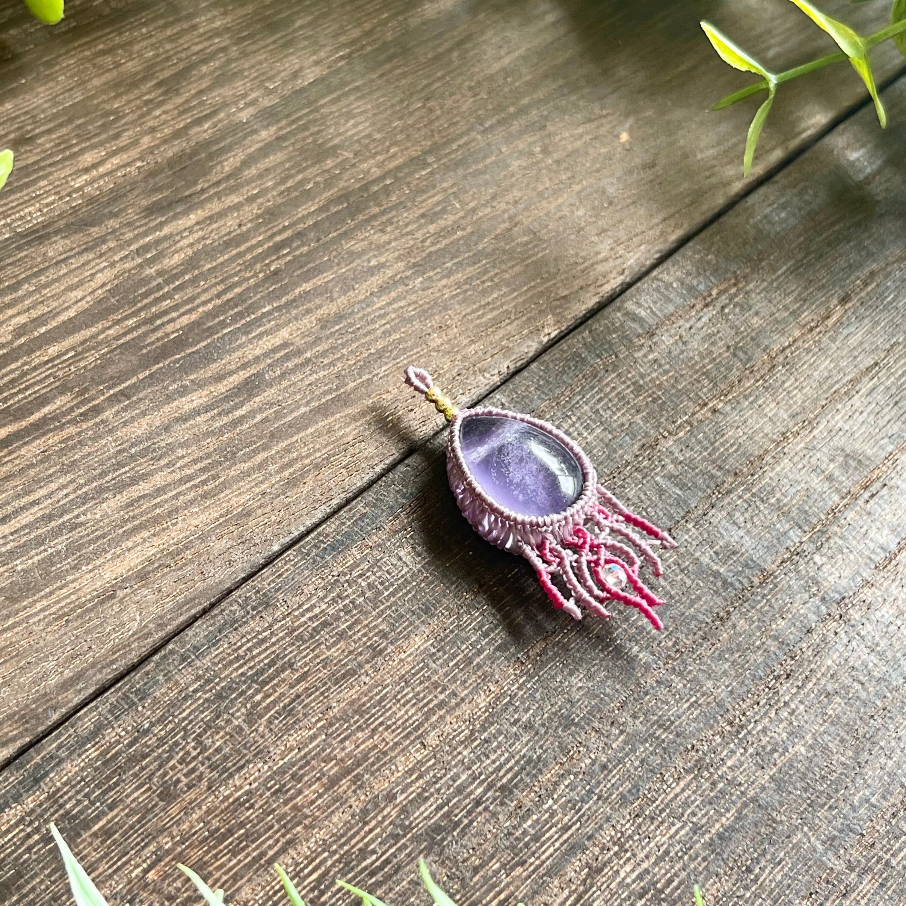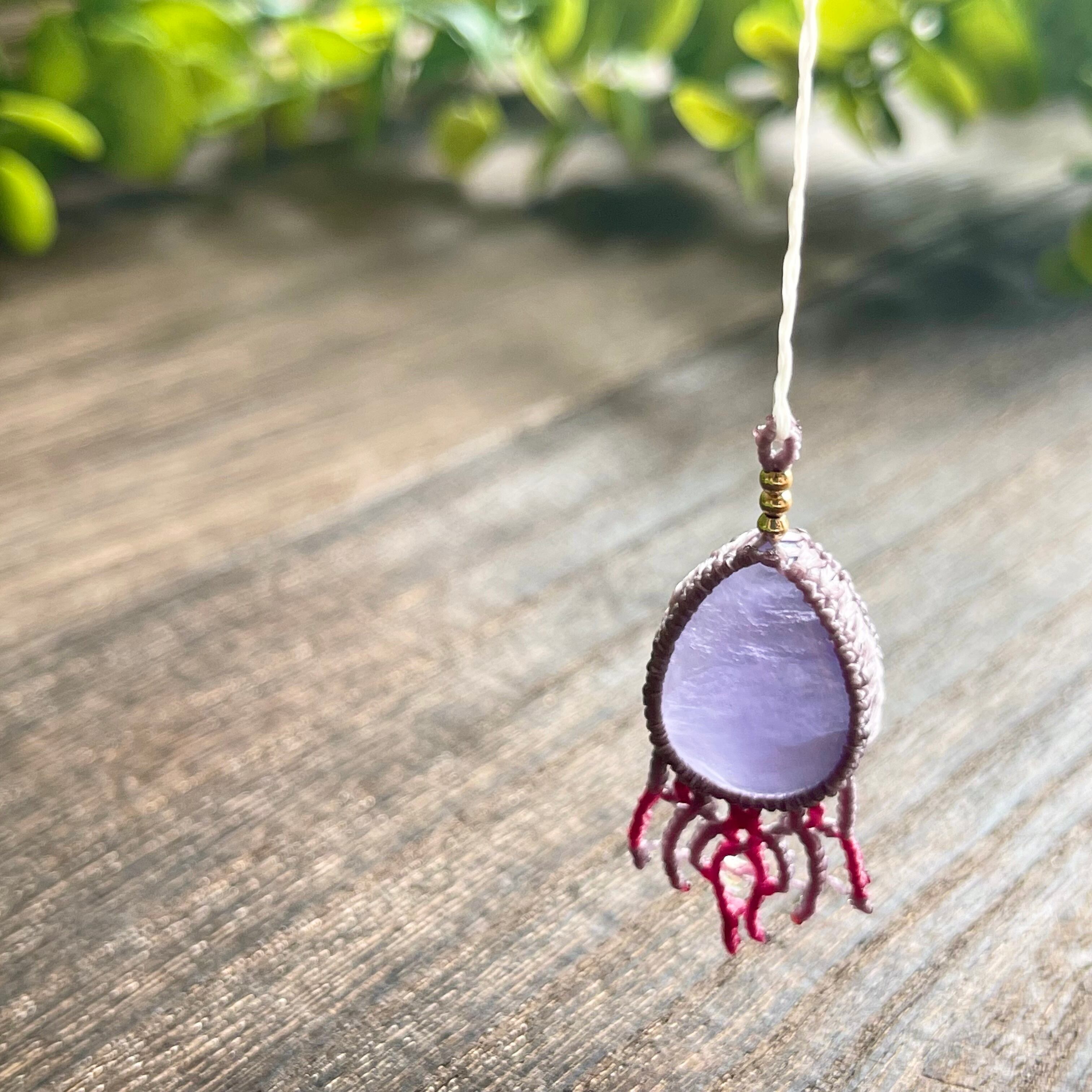 ラベンダーフローライト[クラゲ]マクラメアクセサリー〈チャーム、ネックレス、ピアス、イヤリング〉