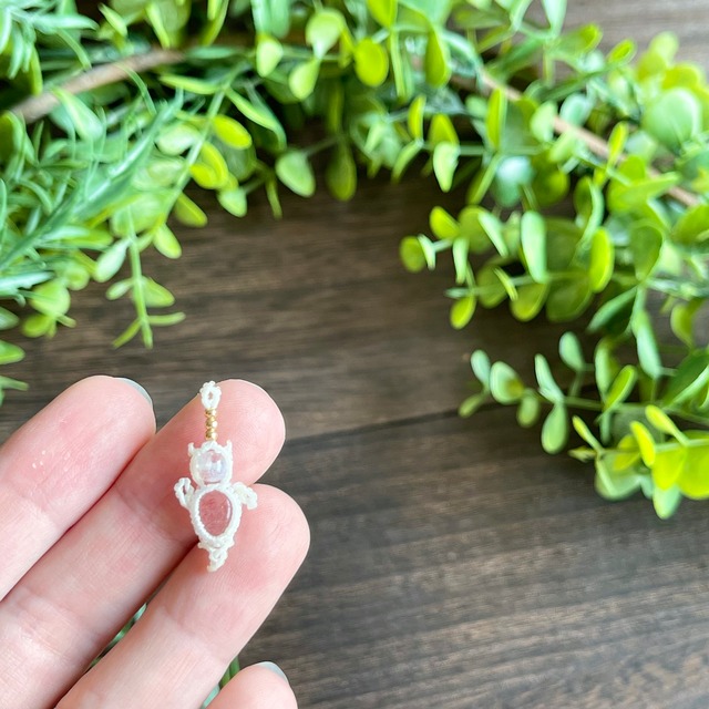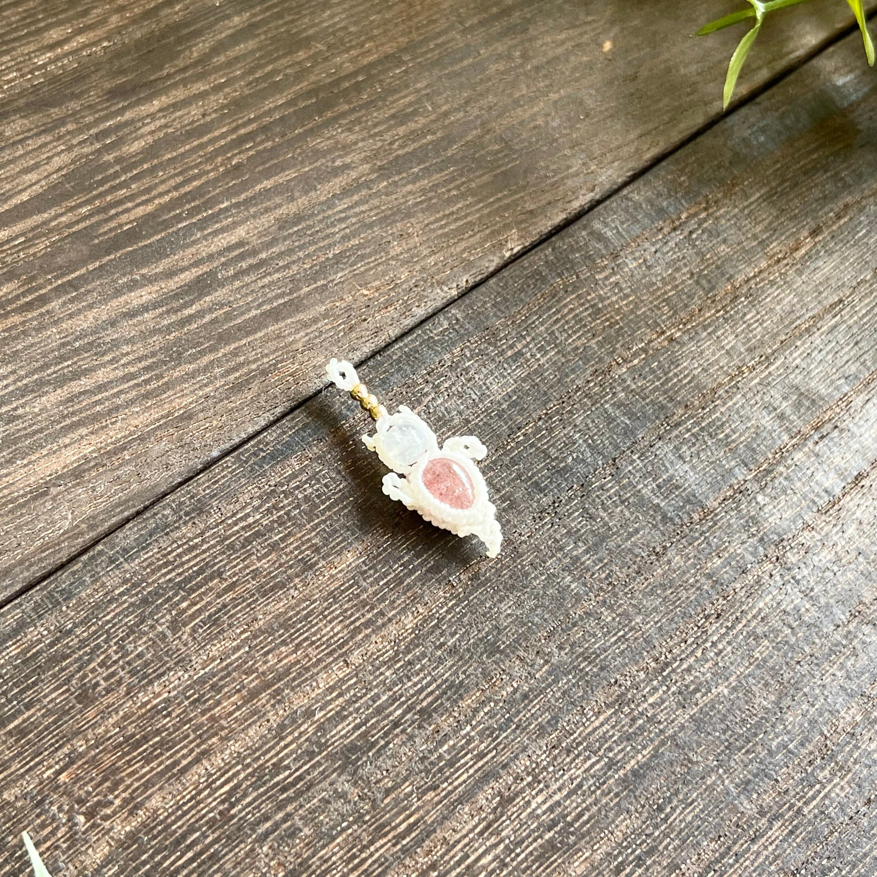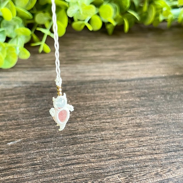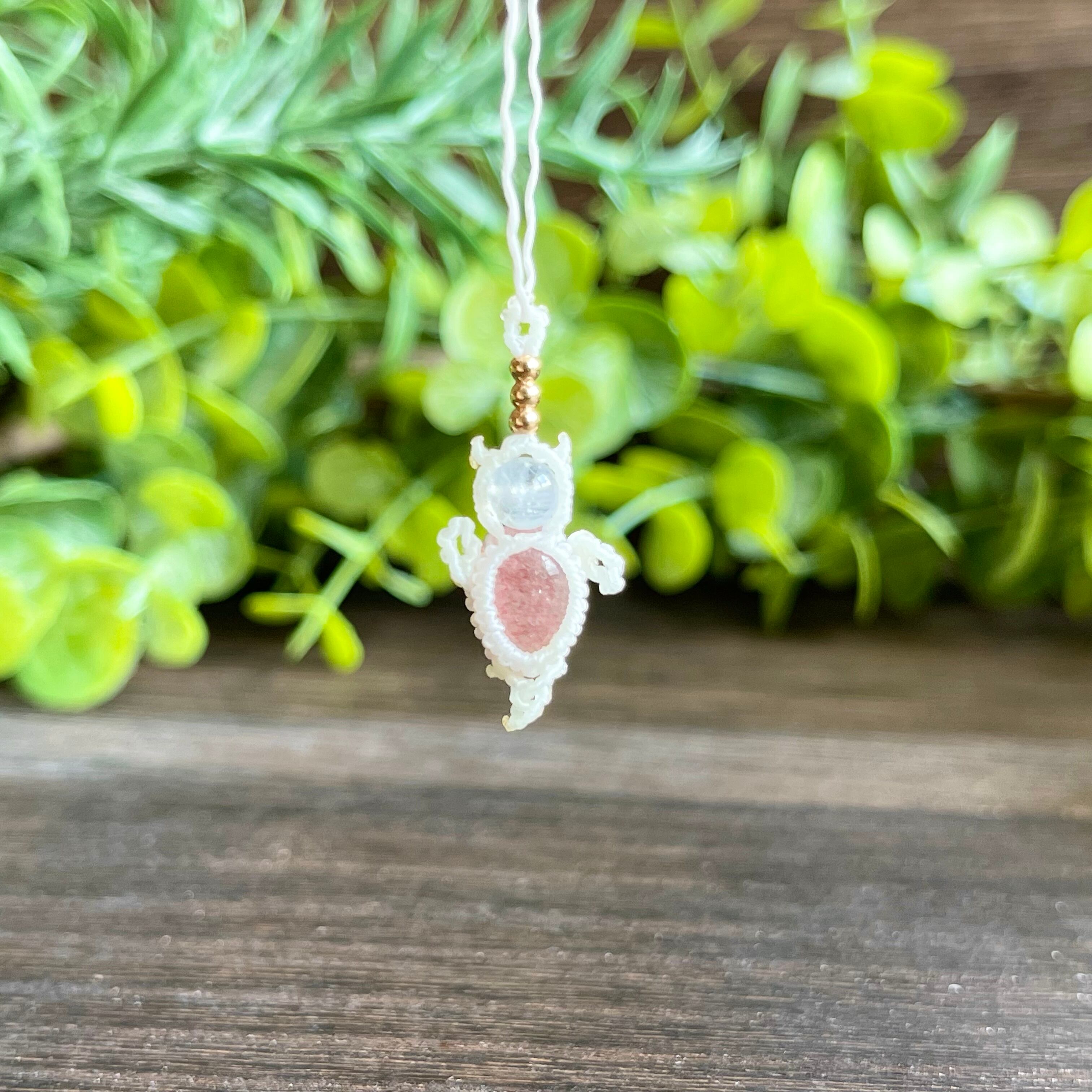 ストロベリークォーツ[クリオネ]マクラメアクセサリー〈チャーム、ネックレス、ピアス、イヤリング〉