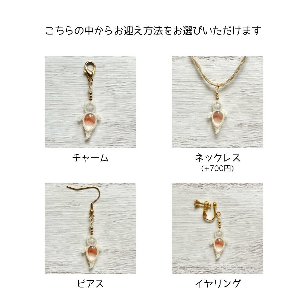 ストロベリークォーツ[クリオネ]マクラメアクセサリー〈チャーム、ネックレス、ピアス、イヤリング〉