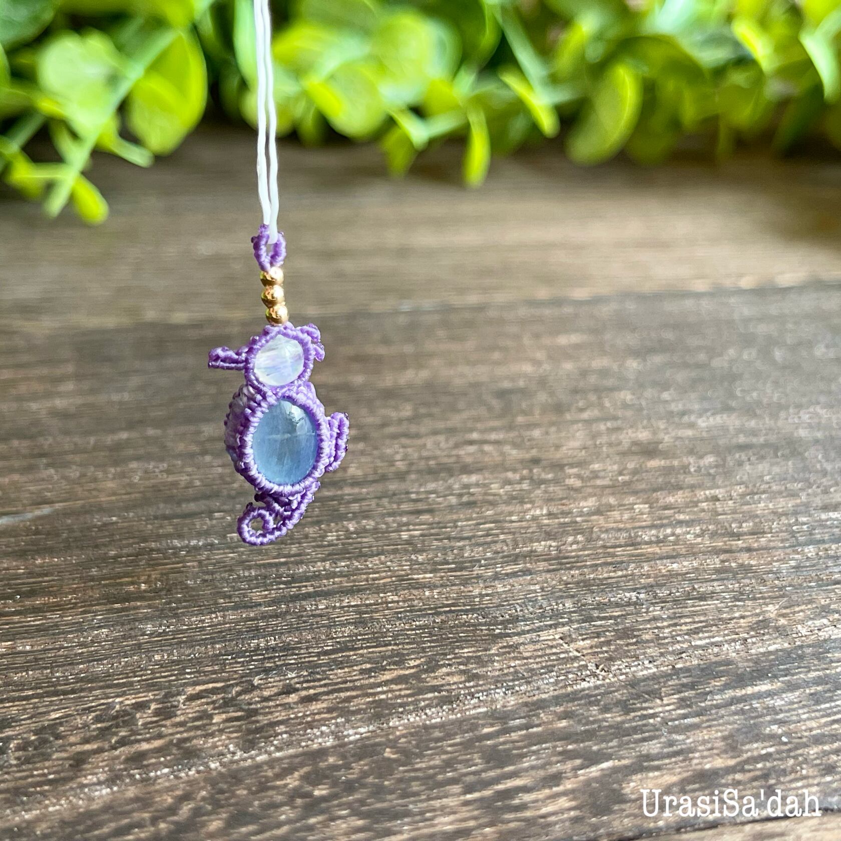 アクアマリン[タツノオトシゴ]マクラメアクセサリー〈チャーム、ネックレス、ピアス、イヤリング〉