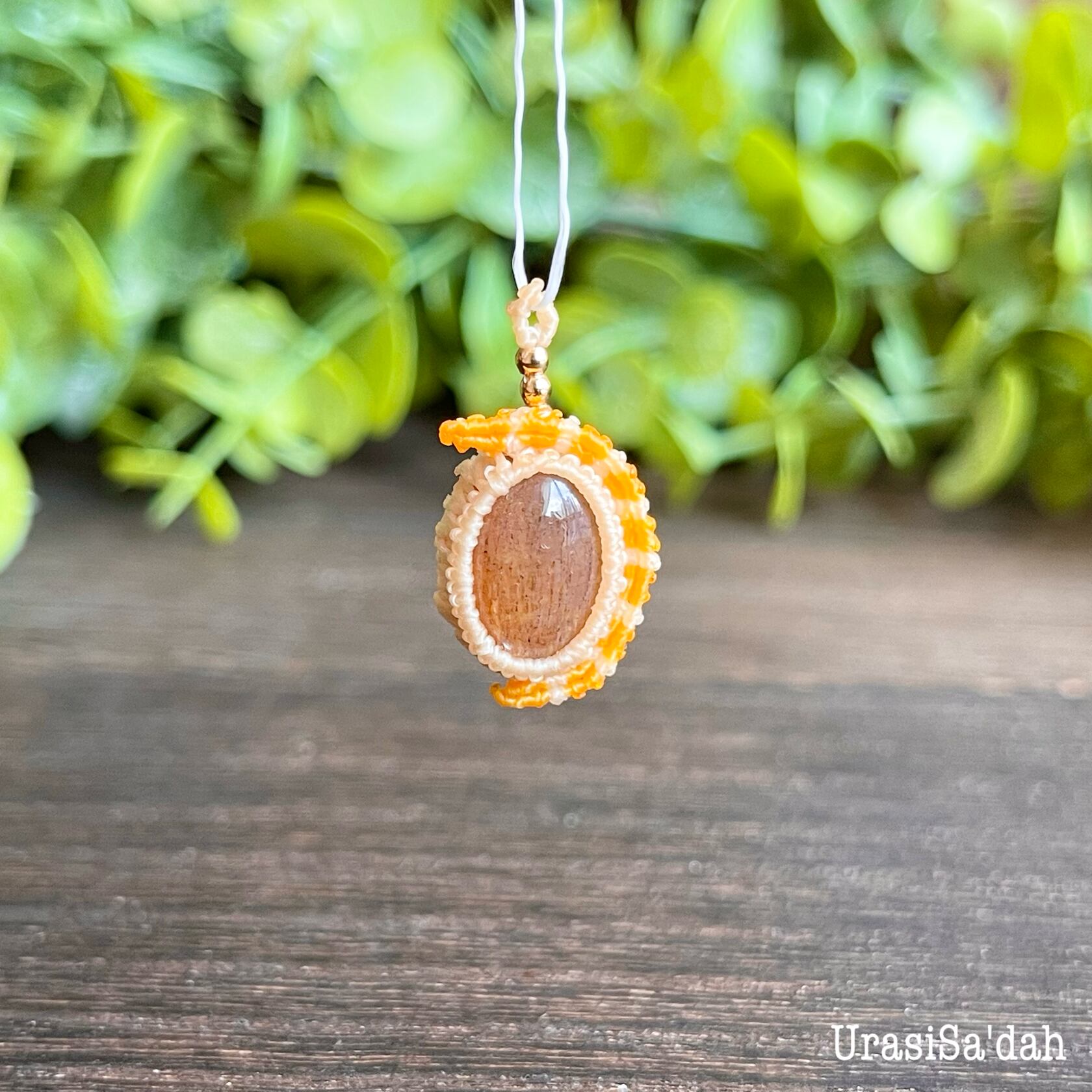 スターサンストーン[ニシキアナゴ]マクラメアクセサリー〈チャーム、ネックレス、ピアス、イヤリング〉