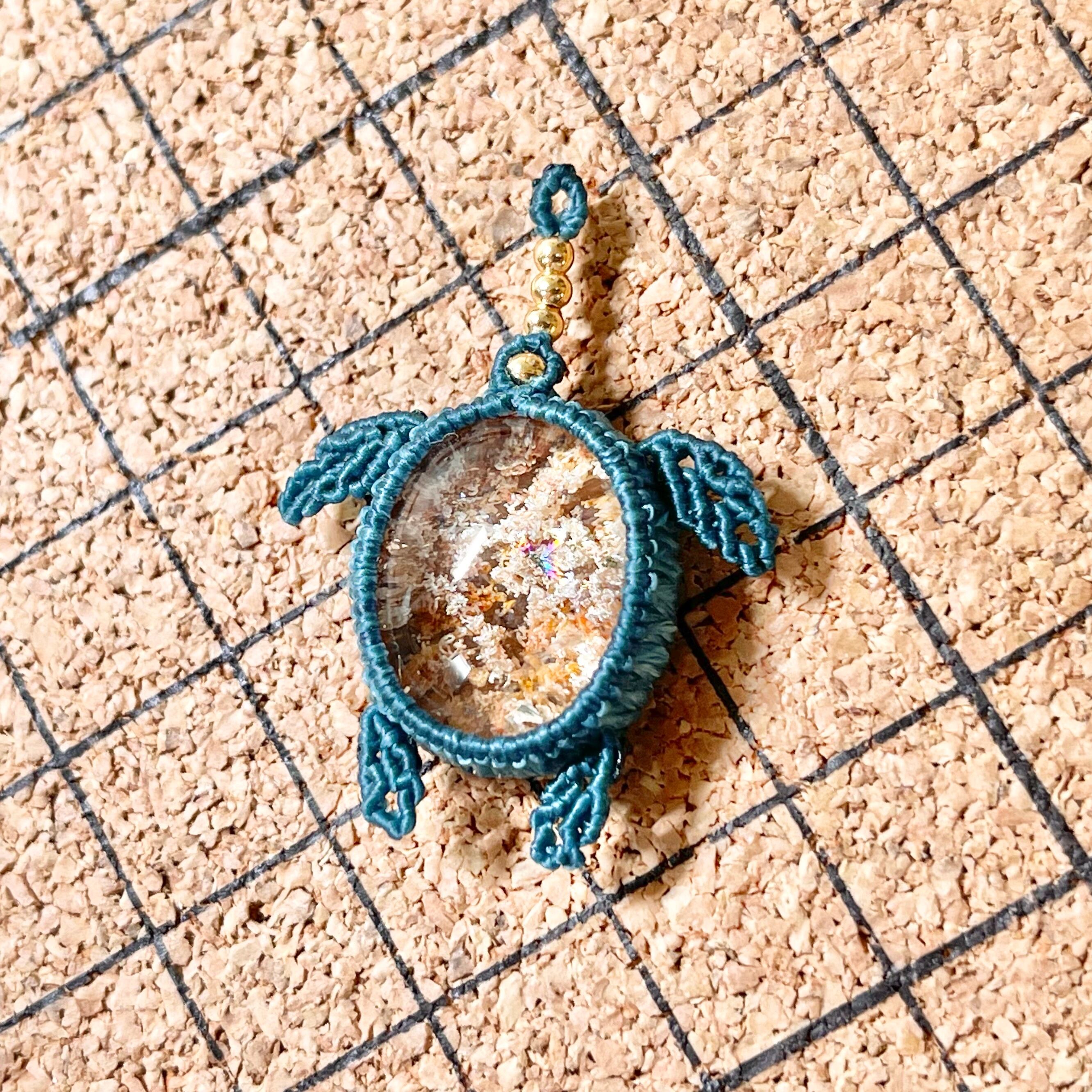 ガーデンクォーツ[カメ]マクラメアクセサリー〈チャーム、ネックレス、ピアス、イヤリング〉