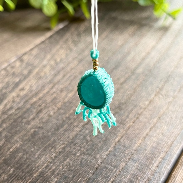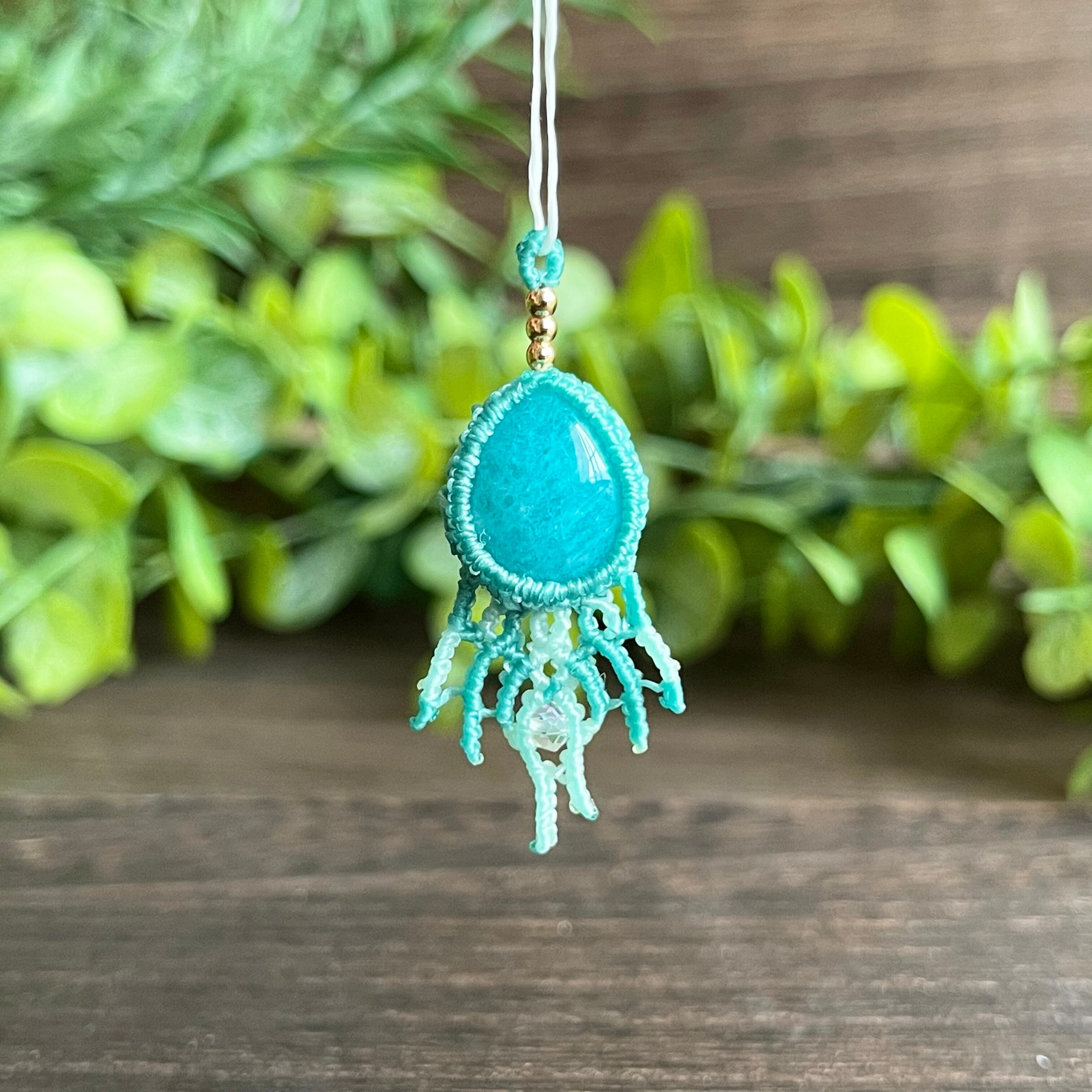 アマゾナイト[クラゲ]マクラメアクセサリー〈チャーム、ネックレス、ピアス、イヤリング〉