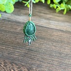グリーンアベンチュリン[クラゲ]マクラメアクセサリー〈チャーム、ネックレス、ピアス、イヤリング〉