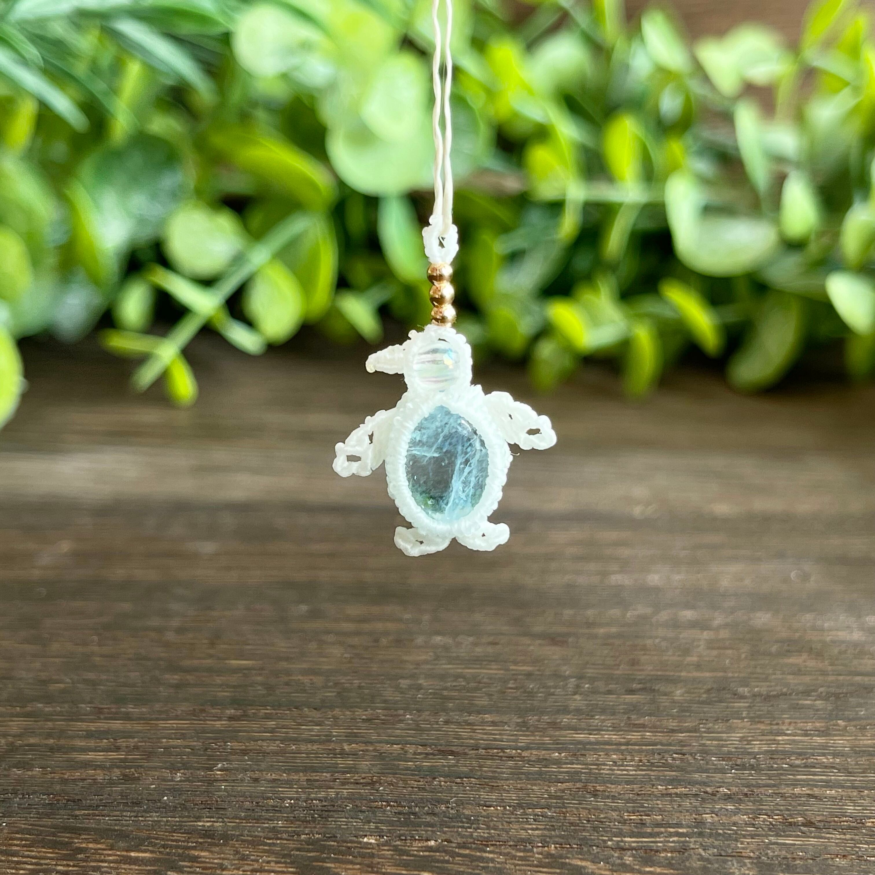 アクアマリン[ペンギン]マクラメアクセサリー〈チャーム、ネックレス、ピアス、イヤリング〉
