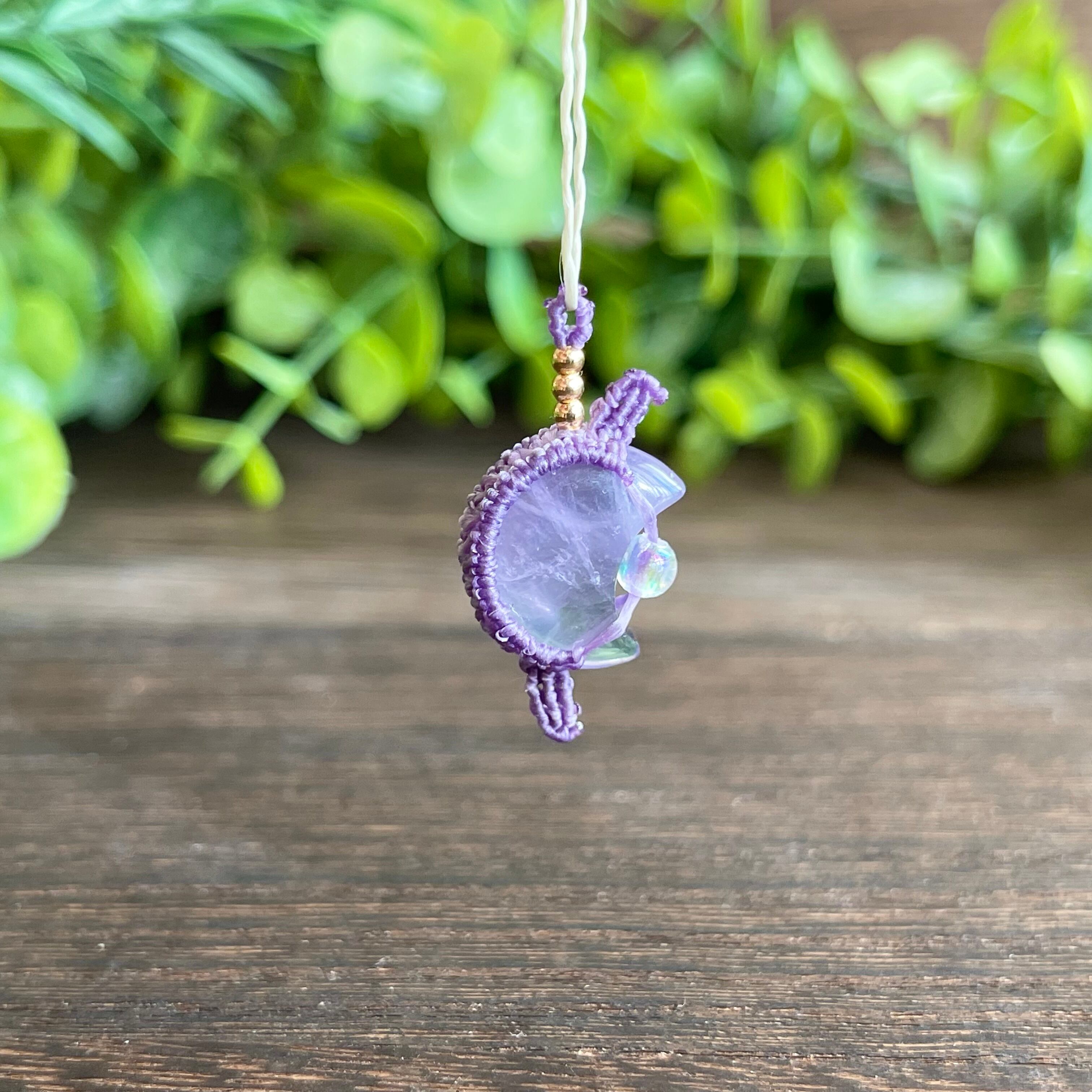 ラベンダーフローライト[マンボウ]マクラメアクセサリー〈チャーム、ネックレス、ピアス、イヤリング〉