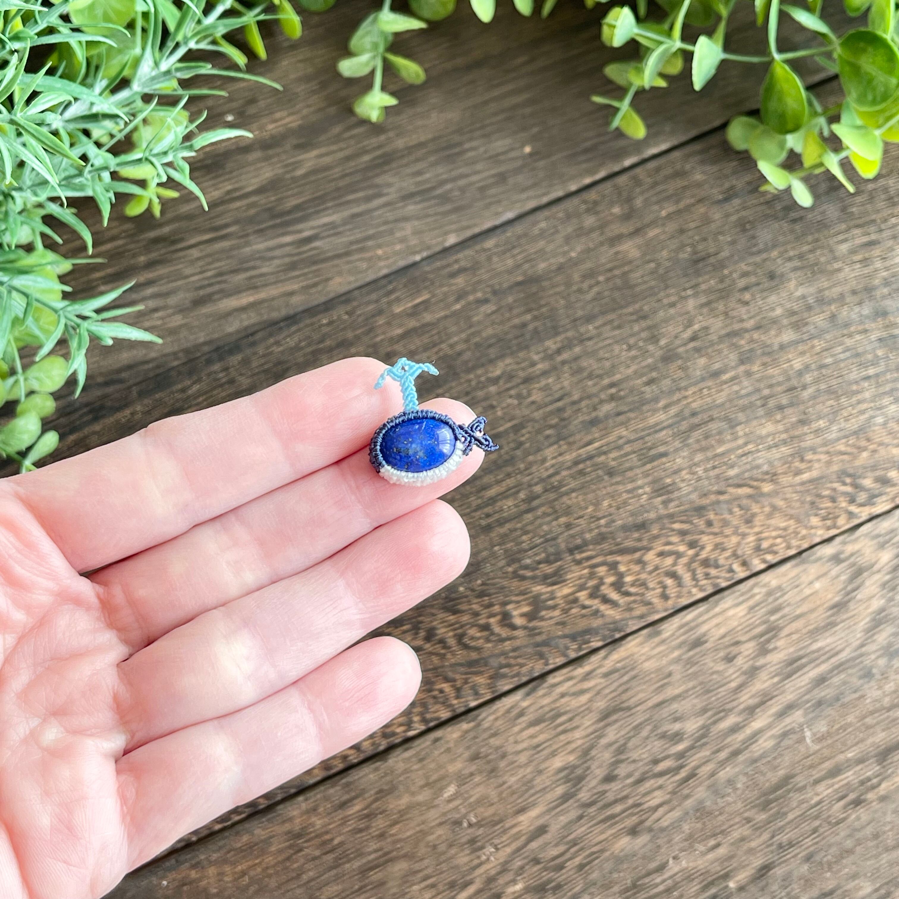 ラピスラズリ[クジラ]マクラメアクセサリー〈チャーム、ネックレス、ピアス、イヤリング〉